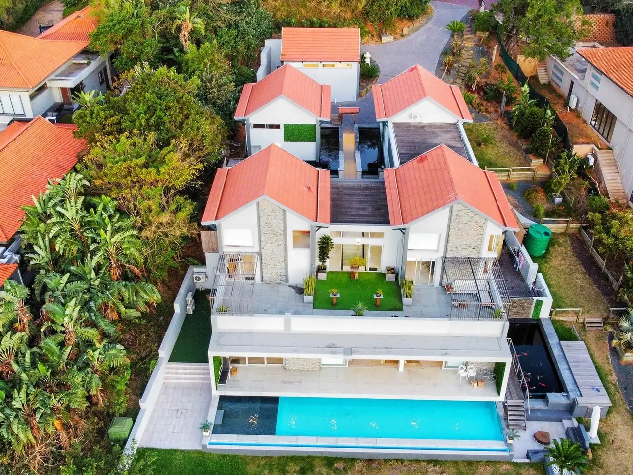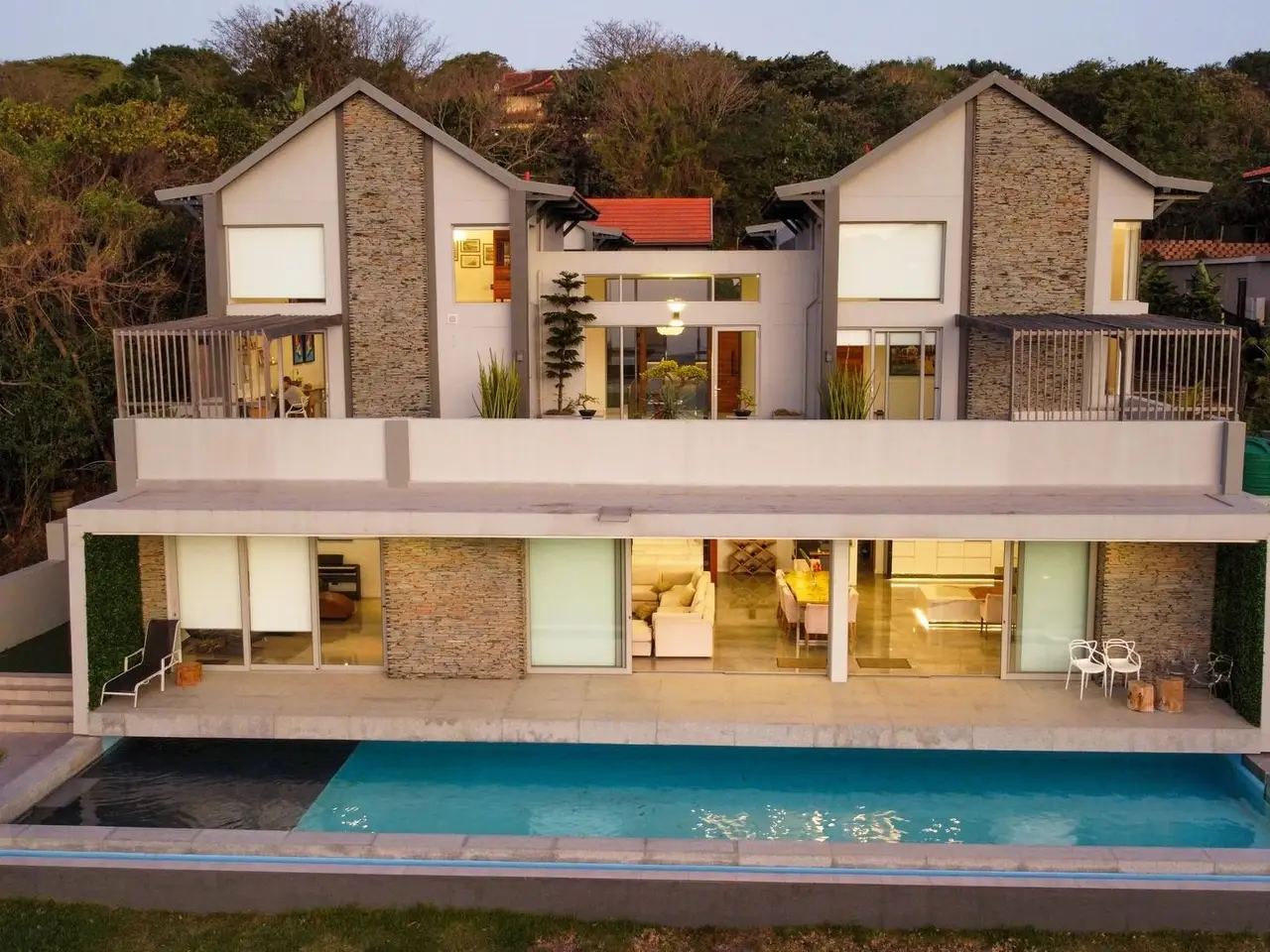 Exquisite Six-Bedroom Villa in Zimbali Estate Architectural Masterpiece Inspired by Japanese Design Discover unparalleled luxury in this Japanese-inspired, ultra-modern villa located within the prestigious Zimbali Estate. This exceptional property boasts unique architectural features that captivate and impress from the moment you arrive. A central walkway between two state-of-the-art koi ponds, home to some of the rarest and most valuable koi in the country, sets the tone for the remarkable experience that awaits. Elegant Interiors and Expansive Living Spaces Upon entering, you are greeted by double-volume foyer and bedroom suites on either side with pristine white porcelain staircase leading to the main living, kitchen, and entertainment areas. The interior is bathed in natural light, highlighting the impressive 25-meter pool and expansive green lawn, creating an inviting space perfect for relaxation and entertainment. The gourmet kitchen, equipped with top-of-the-line Smeg appliances, seamlessly integrates with the living areas, offering a perfect blend of style and functionality. Entertainment and Additional Spaces The villa features an oversized games room, ideal for family gatherings, and numerous additional spaces throughout the property. A self-contained flatlet with a private entrance and parking offers flexibility for guests or extended family, while the large additional space can serve as a sixth suite or a spacious home office, catering to various needs. Innovative Design and Superior Craftsmanship This 600 sqm masterpiece is situated on one of Zimbali's largest residential sites, spanning 2,687 sqm, offering tranquillity and scenic views of the golf course. The villa's design celebrates light and space, featuring large-scale glazing, double-volume interiors, and a tasteful blend of smooth, minimalistic textures, neutral stone cladding, and warm wood elements. Sophisticated Accommodation The villa provides an exceptional array of en-suite accommodations, including a separate self-contained guest suite and a multi-purpose childrenGÇÖs bed/playroom with mezzanine floors for added privacy. Expansive open-plan lounges and dining areas include a luxurious dual-tone gourmet kitchen with integrated Smeg appliances, perfect for the socially interactive family. Wall-to-wall glass sliding doors create a seamless flow to an expansive patio overlooking the full-length pool, landscaped lawns, and an astroturf area, offering a paradise for hobby enthusiasts. Advanced Features and Sustainability This home is a koi lover's dream, featuring state-of-the-art, easy-to-manage pools that can be effortlessly converted to a non-tank environment. No detail has been overlooked, with a large-scale generator, gas-operated showers, automated blinds, a SONOS sound system, and SONOF switches, all operational via the 'we-link' app. The Italian porcelain flooring is of the highest quality, ensuring both beauty and durability. Exclusive Lifestyle and Amenities Zimbali Coastal Resort is renowned for its exclusive lifestyle and state-of-the-art amenities, including: - 18-hole (par 72) Championship Zimbali Golf Course - Six tennis courts - Two squash courts - Three cricket nets - Extensive communal pools and direct access to 3.5 km of pristine beach - Five-star gymnasium and fitness center, free and exclusive to owners and long-term tenants - World-class soccer pitch with astroturf - Nature and walking trails with over 200 species of birds Experience the epitome of luxury living in this unique and sophisticated Zimbali villa, where every detail has been thoughtfully designed to provide an unmatched lifestyle for discerning families. Contact us today for more information and your private viewing