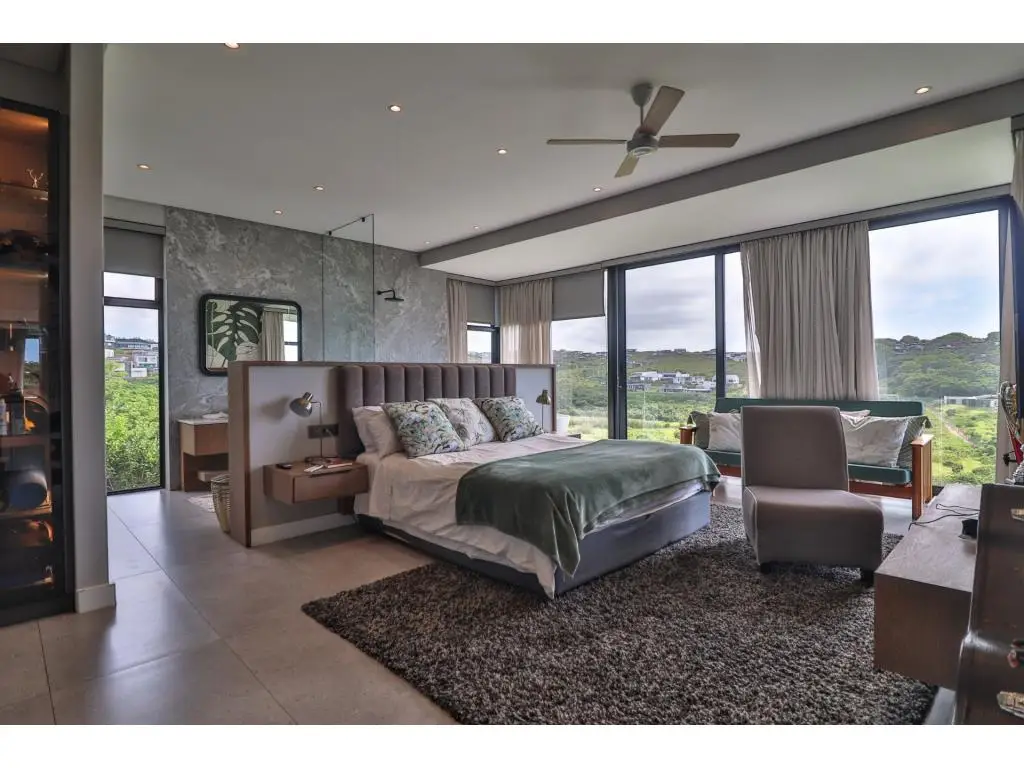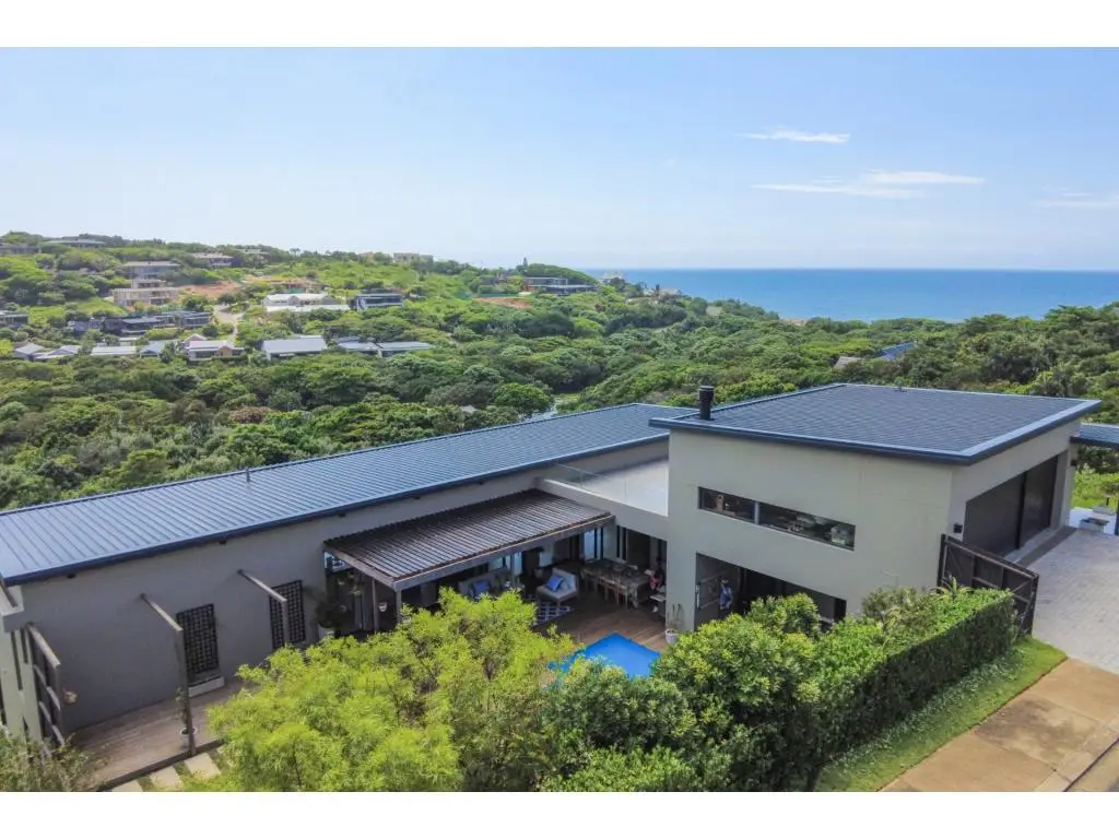 This exquisite 5-bedroom en-suite residence in Zululami Estate offers the pinnacle of modern luxury, with impeccable finishes and breathtaking ocean and wetland views. Floor-to-ceiling windows flood the expansive interiors with natural light, enhancing the seamless flow between the open-plan kitchen, dining area, and multiple entertainment spaces, including a sophisticated lounge, bar, and covered patio. Designed for both relaxation and entertainment, this home features a private garden well sheltered and complete with a swimming pool, creating a serene retreat. Cutting-edge conveniences such as electric roller blinds, and state-of-the-art appliances add to the home's sophistication. The rooftop deck provides a spectacular vantage point to take in the surrounding beauty. Accommodation consists of 2 en-suite bedroom upstairs (one of which is adaptable as a separate cottage), and 3 en-suite bedrooms downstairs opening out onto a north facing garden. The combination of indoor and outdoor spaces ensures a perfect balance of comfort Positioned in one of Zululami Estate's most sought-after locations, the views from this vantage point are spectacular. Enjoy full access to all Zululami and Seaton Estate facilities including, private beach access, beach clubhouse, sports pavilions, kids play areas, kids pools with slides, nature trails, equestrian facilities, making this a lifestyle second to none