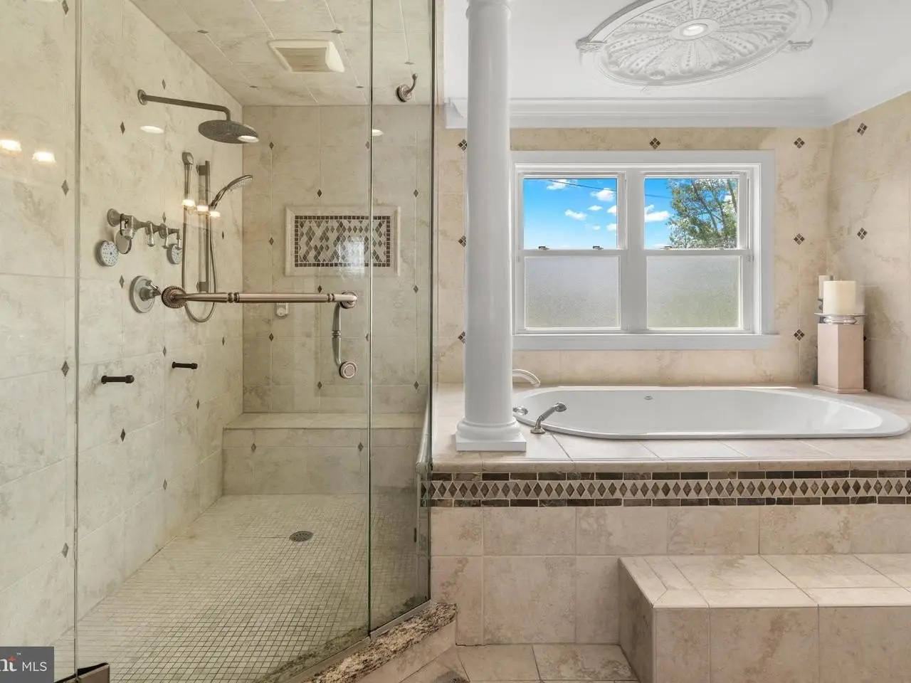 Welcome to this exquisite 6-bedroom, 4.5-bath Colonial, boasting over 6,000 square feet of meticulously crafted living space. Built in 2008 and nestled in a highly desirable Pikesville neighborhood, this property is a true gem offering comfort, sophistication, and space for the entire family. Main Level highlights include- breathtaking entryway with soaring ceilings, elegant curved staircase, custom mosaic floor with a dazzling crystal chandelier, a formal dining room with rich wainscoting, crown molding, medallion ceiling, and its own crystal chandelier, an expansive living room perfect for entertaining or relaxing. A gourmet chef's kitchen featuring stunning granite countertops and custom wood cabinetry, ceramic tile floors and massive center island with an under-the-counter microwave and oven, 2 sinks, 2 dishwashers, state-of-the-art appliances including gas Wolf range, a Sub-Zero paneled refrigerator and a separate Sub-Zero paneled freezer, Butler's pantry with additional cabinetry and sink, 2 large walk-in pantries and breakfast area with access to a maintenance-free deck and patio, Family room with cozy gas fireplace and adjacent powder room, mudroom with side entry and direct access to 2-car garage equipped with Tesla charger, and a guest suite with private full bath. Upper level includes double-door entry to the luxurious primary suite featuring a spacious sitting area, 2 large walk-in closets, Spa-inspired en-suite bathroom with jacuzzi tub, glass walk-in shower, dual vanities, walk-in linen closet, and private toilet with bidet. Upper level also features additional generously sized bedrooms (one currently used as an office), 2 full hall bathrooms and an open hallway with sitting area, a convenient upper-level laundry room with washer and dryer, and staircase access to full-size attic with roughed-in flooring, windows, and balcony access. The Lower level features a full-size, unfinished basement with 10-ft ceilings, plumbing rough-ins, and French doors leading to walk-out stairs to backyard oasis with deck, patio, and a charming children's playhouse. Exterior front includes beautiful landscaping and an oversized driveway for more parking. Additional highlights include high-end Santos Mahogany hardwood floors, custom crown molding, recessed lighting throughout, large windows offering abundant natural light, dual-zone HVAC system (one unit replaced in 2024) and 400-amp electrical service. This custom designed home is a rare find-perfect for families, entertaining, and enjoying luxury at every turn. Impossible to replicate at this price with today's construction costs. Don't miss the opportunity to make this dream home yours!