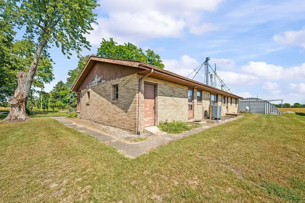 Discover the potential of this outstanding 80 acre property, ideal for farming, investment, or multi-use living. The land features a 4 bedroom ranch style home, ideal for living on-site or generating rental income.The property includes six outbuildings to support a wide range of agricultural or business needs: including a Quonset Hut (47 x 79), Pole Building/Tractor Storage (40.5 x 72), Chemical Storage Building (40 x 37) plus an additional 45 x 64 workshop and an Open Pole Building (50 x 60). Additionally you will find multiple silo buildings. The large insulated and heated pole building includes a 2-ton crane, offering excellent utility for equipment or mechanical work. The land is fully tiled and irrigated, featuring a pond for additional water resources.Currently, the land and outbuildings are leased to a local farmer (equipment not included in the sale).