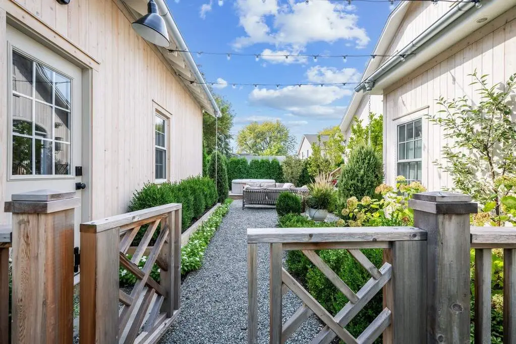 This beautifully refined home, located in the heart of the Village on historic Lake Street, was designed and reimagined by nationally recognized designer Kate Marker. With a thoughtfully executed addition and renovation, this four bedroom, 3.2-bath residence spans 4,500 square feet and includes a new heated two-car garage. From the moment you arrive, the home enchants with its curb appeal and welcoming vestibule, leading to a blend of original and signature design elements-arched windows and doors, vaulted ceilings, intricate millwork, built-ins, custom window treatments, and layered lighting. The main level features a sunlit living room with a wood-burning fireplace, a gourmet kitchen with handcrafted cabinetry, high-end appliances, pantry, and coffee bar, plus a vaulted family room with French doors opening to the gardens. A breathtaking first-floor primary suite, a second ensuite bedroom, and a mudroom with laundry complete the level. Upstairs, two additional bedrooms showcase shiplap and beams, joined by a lounge with dual built-in daybeds and a full bath. The lower level offers a built-in sauna, recreation lounge with bar, office, powder room, second laundry, and ample storage. Exterior highlights include professional landscaping, a herringbone brick walkway, reclaimed wood shutters, painted brick and cedar siding, dormered windows, a Dutch door to a covered porch, and an iron gas lantern. The private backyard, complete with fire pit, hot tub, sprinkler system, and outdoor speakers, provides a perfect retreat. The home is hardwired for Sonos, equipped with a complete security system, and the garage includes attic storage with EV-ready electrical. Just steps from coffee shops, restaurants, shopping, Metra, and award-winning District 220 schools, this Village location is unmatched. This residence is available fully furnished at an additional cost, offering a turn-key option with all of the professionally curated designer elements included.