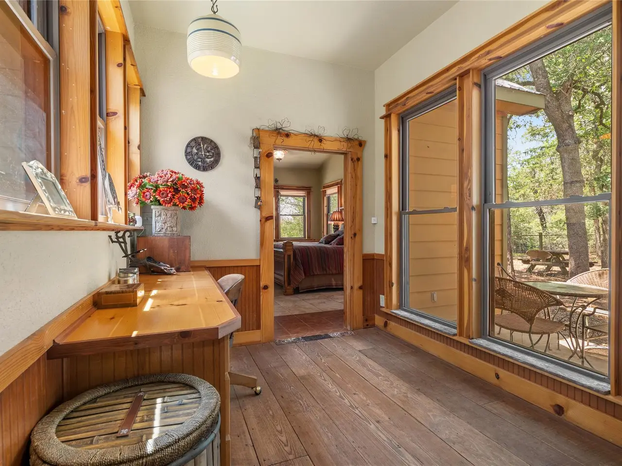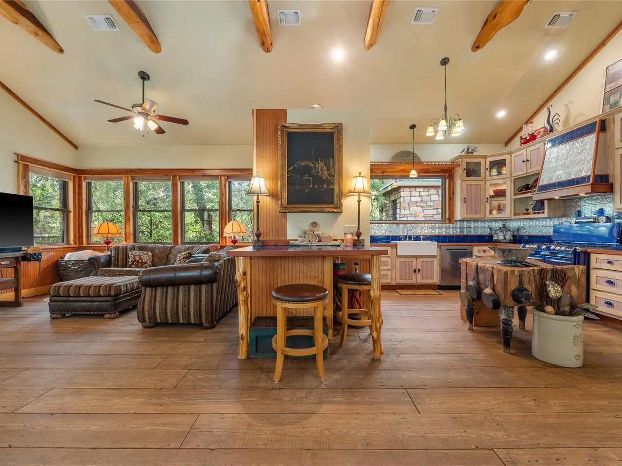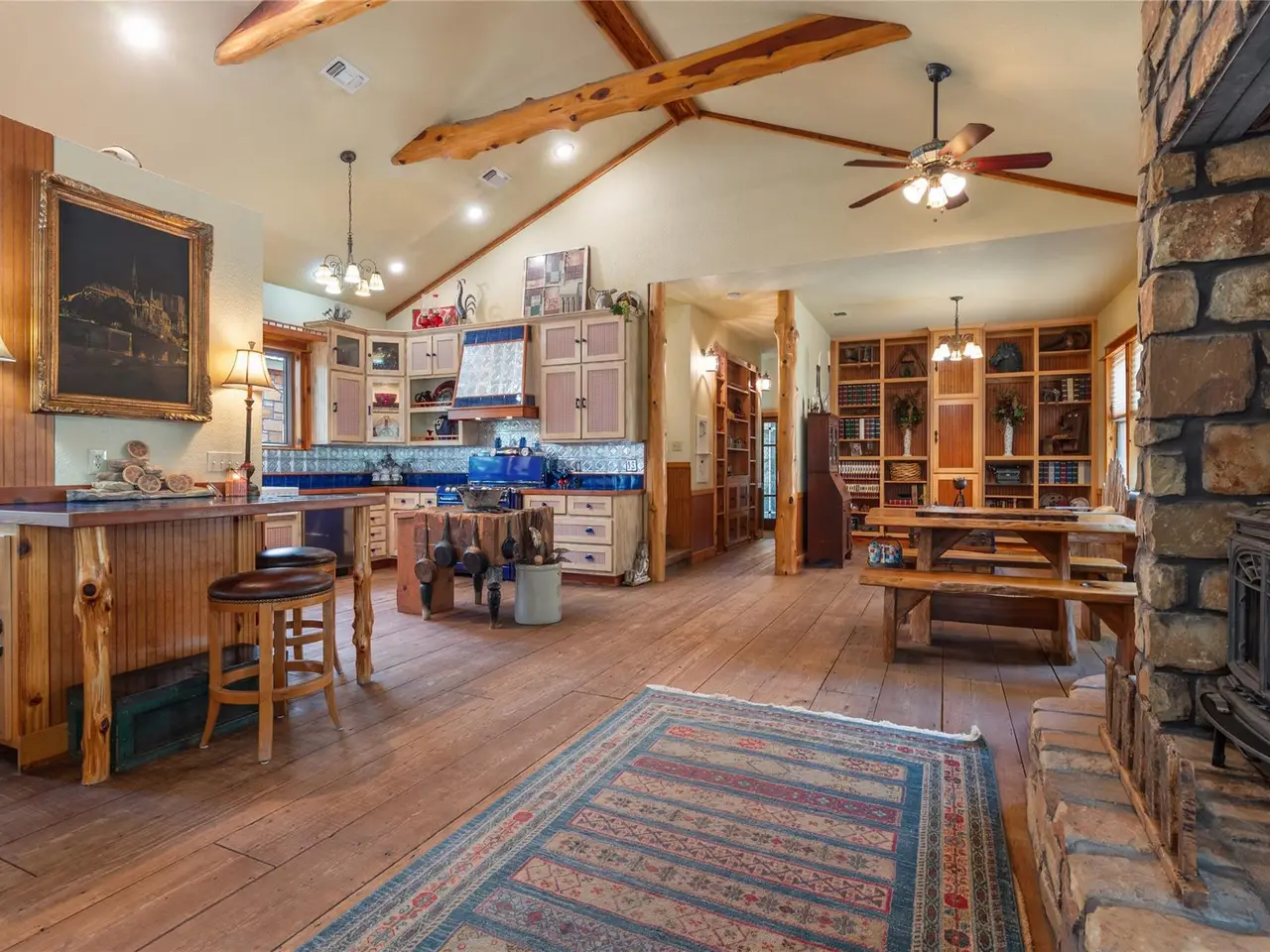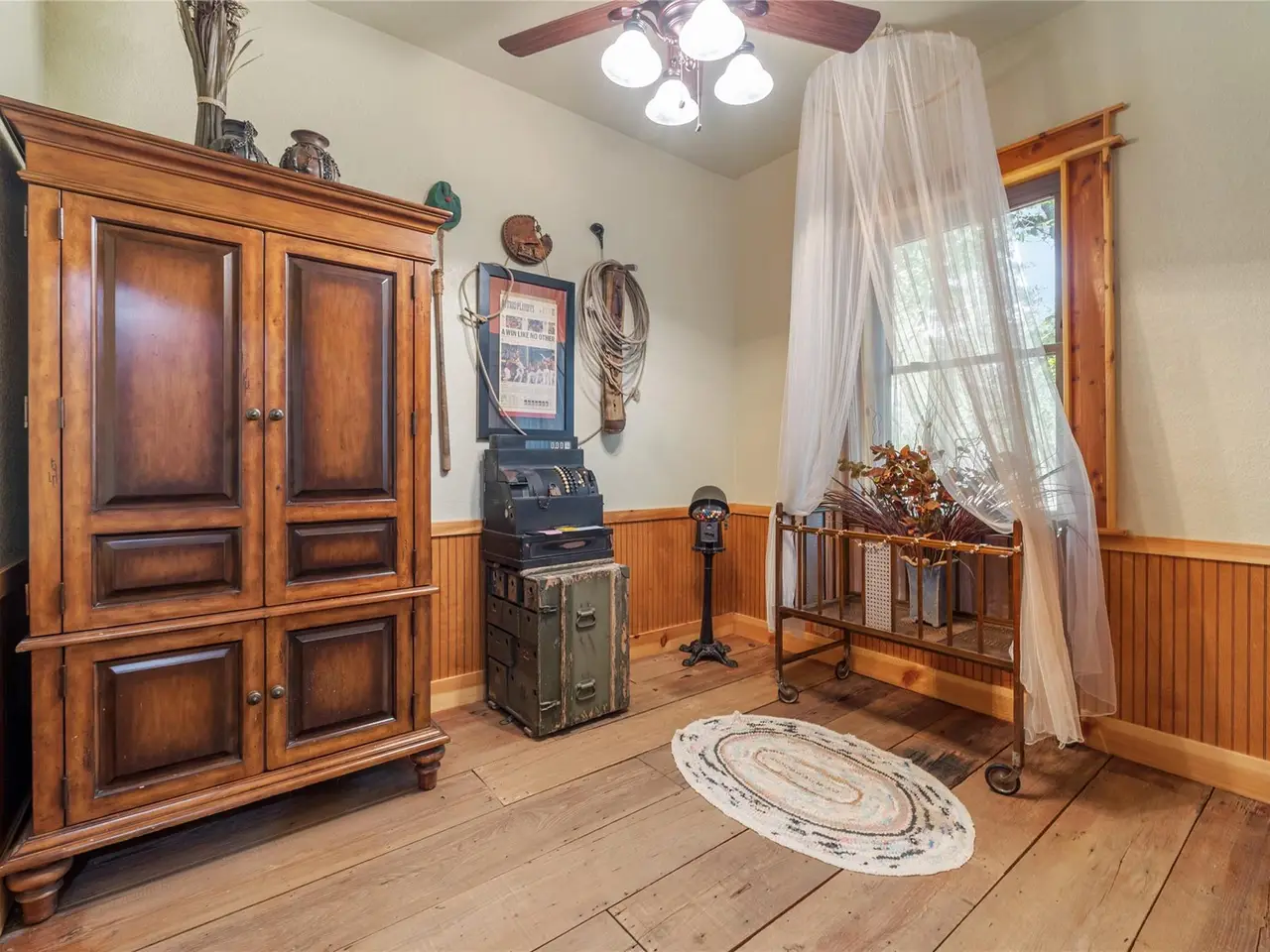 Experience the essence of Texas country living on this serene and secluded 23.45-acre retreat near charming Bastrop. Tucked among a mature tree canopy, this private estate offers a unique blend of heritage and craftsmanship. The custom-built two-story cabin evokes central Texas history with reclaimed wood flooring sourced from a historic Walburg cabin, an original 1950s stove from the Pfluger family homestead, and hand-stripped Bastrop pine columns harvested onsite to support the cathedral ceiling. These authentic details are seamlessly integrated with modern conveniences to create a residence that is both timeless and functional. The cabin is the heart of the property serving as the main dwelling and offering the primary bedroom along with another secondary bedroom and 2.5 baths all on the main level. Additional main level areas include a management center, laundry room, dedicated office/library space, a charming kitchen and large living space with foyer entry. Upstairs is one large open bedroom and bathroom originally intended to serve as a bunkroom that can accommodate multiple sleepers. A separate barndominium provides additional living space ideal for a guest house, rental opportunity, or multigenerational living, complete with an entertainment area. This flexible space offers 2 bedrooms and 2 baths with 2 separate living areas and an open kitchen to living on the main level. With 6 garage bays on property--including a dedicated RV space with hookups--there is ample room for your toys, gear, equipment and adventure essentials. Outdoors, a thoughtfully designed pond supports native wildlife, including bass and ducks, enriching the land's natural beauty. This one-of-a-kind property offers a slow and relaxed lifestyle, yet remains just a few miles from historic Bastrop, the Airport, COTA, Tesla, and the hustle and bustle of downtown Austin. Tractor may convey, see agent for details.