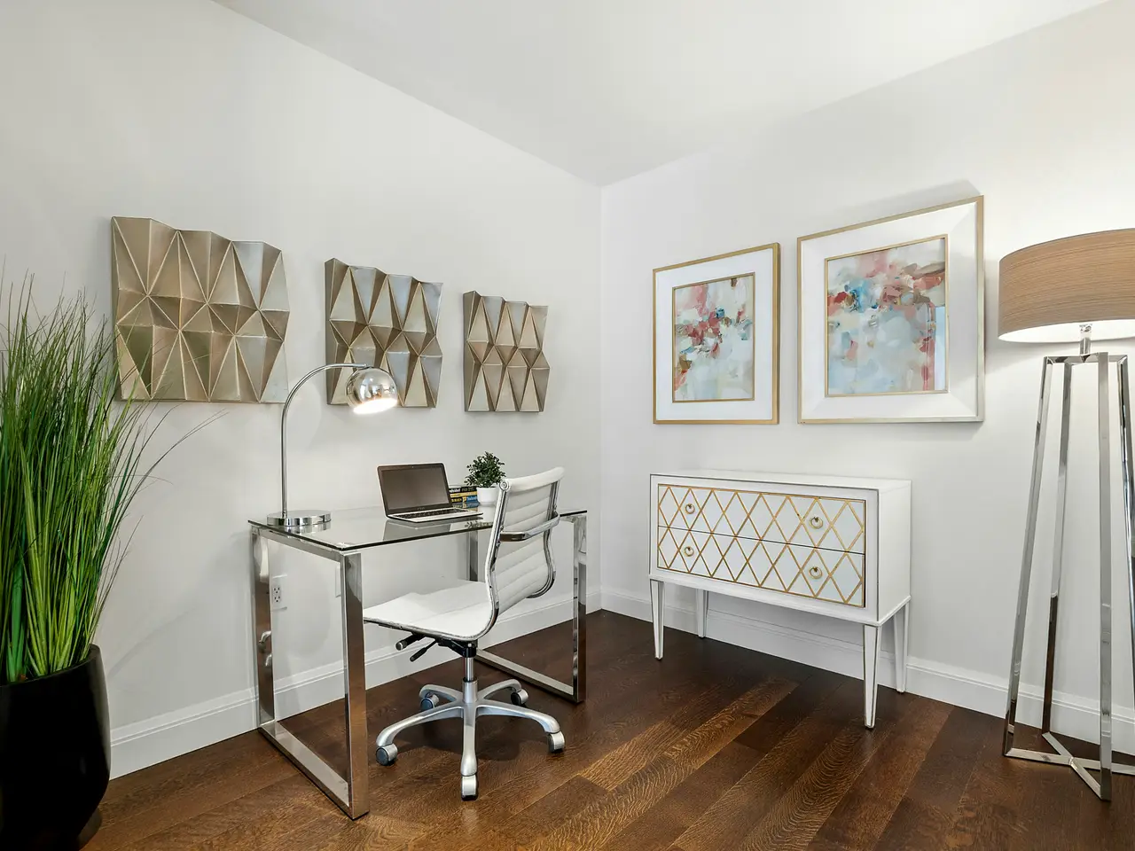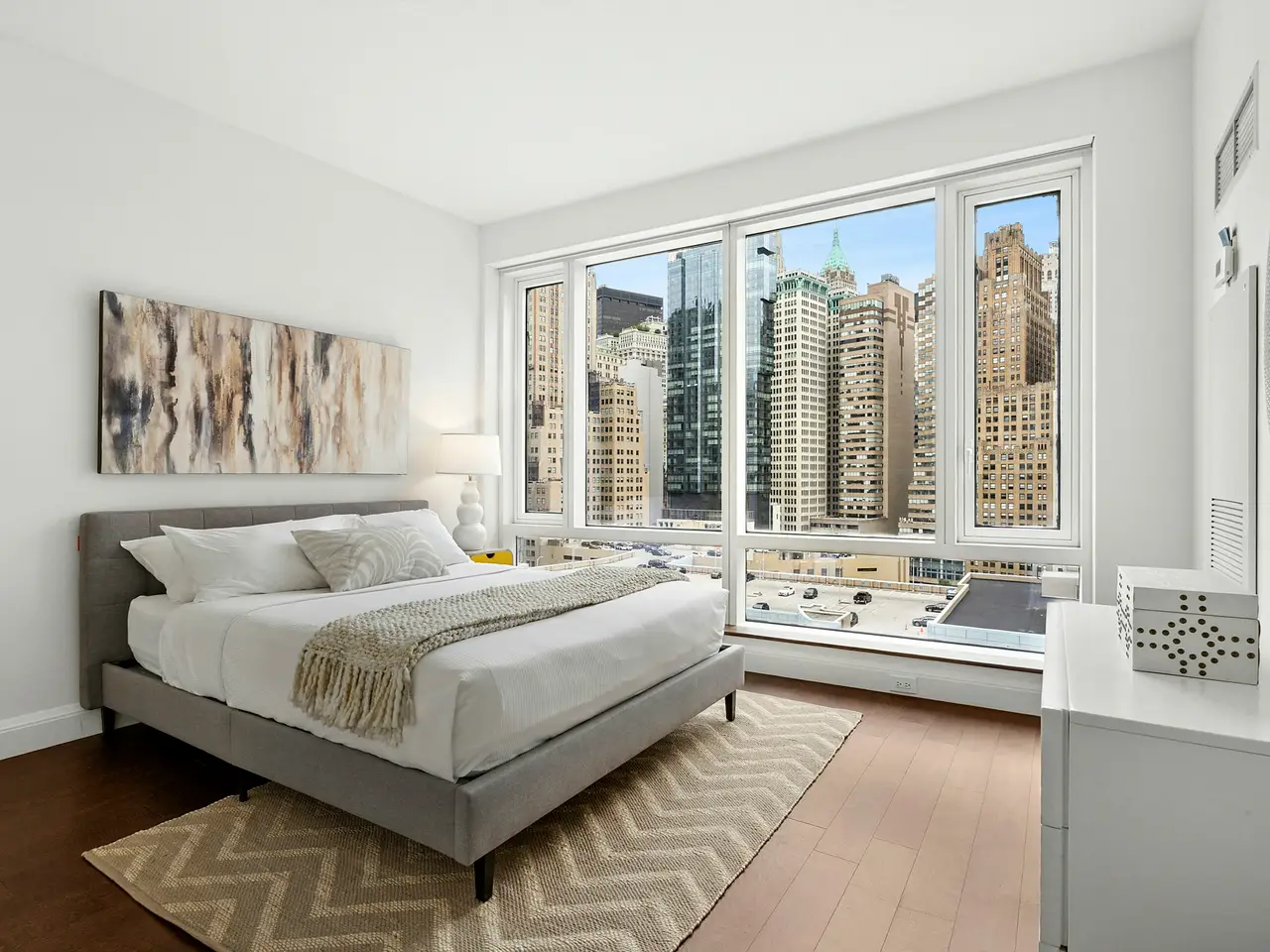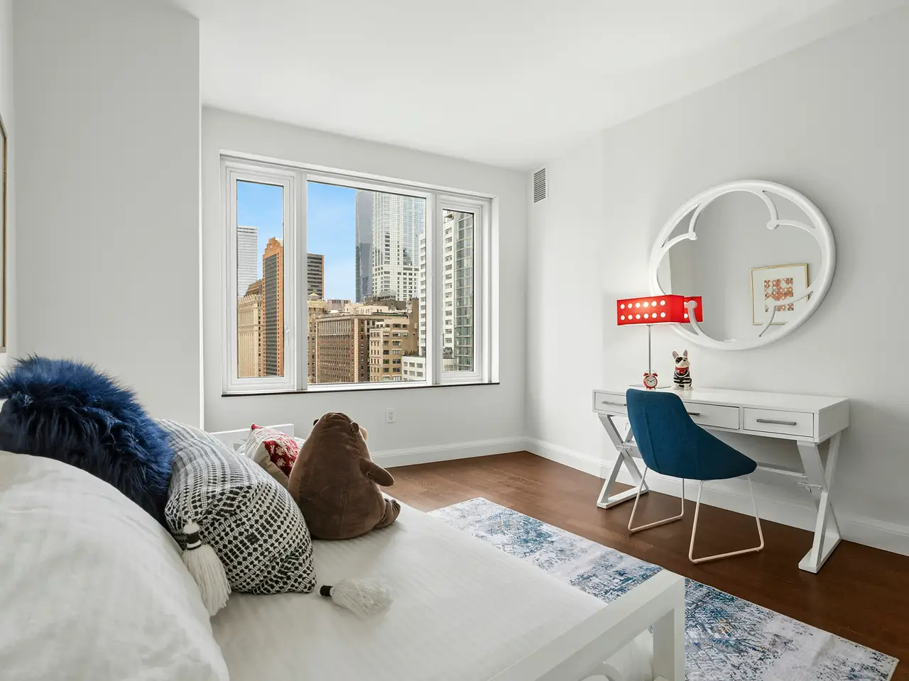 Welcome to this exceptional and unique corner four-bedroom, three-bathroom residence offering sweeping Hudson River sunsets and direct vistas of the iconic Freedom Tower. Perched on a high floor at the Visionaire, Battery Park City's premier LEED Platinum-certified building, the oversized living room is framed by floor-to-ceiling windows with a dedicated dining area and seating area for relaxing and entertaining. At the heart of the home is a chef's kitchen outfitted with a Sub-Zero refrigerator, Wolf gas range, two large pantries and a generous breakfast bar island perfect for casual dining and conversing. Thoughtfully designed for both comfort and function, the private bedroom wing features three generously-sized serene bedrooms with partial southern water views. A fourth bedroom, also with partial water views, offers flexibility as a bedroom, den, guest room or home office. The spacious primary suite includes a luxurious en suite bathroom featuring a deep soaking tub and a separate glass-enclosed shower finished with high-end materials, while a second bathroom impresses with five premium fixtures. There is a substantial, separate home office space that can be customized to your needs as your work from home oasis, den, gym or play area. A large entry foyer, 9 foot ceilings, hardwood floors, in-unit washer/dryer and central air conditioning enhance the sense of scale and sophistication. Living at the Visionaire means access to world-class amenities. The building offers a 24-hour doorman and concierge service, a state-of-the-art wellness center with, sauna, steam and yoga rooms, a stunning indoor swimming pool and hot tub, resident's lounge (featuring large TV with seating area, sound system, full kitchen with dining table and pool table), onsite parking, bike storage and children's playroom. Two landscaped rooftop terraces outfitted with grills and tables provide panoramic views of the Hudson River and the Manhattan skyline, perfect for relaxing or entertaining. The Visionaire was built with sustainability at the forefront, featuring energy-efficient systems, renewable energy sources, and advanced water filtration, offering a healthier living environment and reduced environmental impact. Located in the heart of Battery Park City, experience the best of local green spaces, luxury shopping, dining, and cultural attractions. The neighborhood's peaceful waterfront setting is a rare find in New York City, offering a unique blend of urban convenience and natural beauty. Whole Foods, Brookfield Place and Eataly, among others, are all nearby with convenient public transportation including the 4, 5, R, 1, 2, 3, J, Z, W and ferry lines. Pets, Pied-a-terres and investors welcome. All measurements and square footages are approximate and all information should be confirmed by customer.