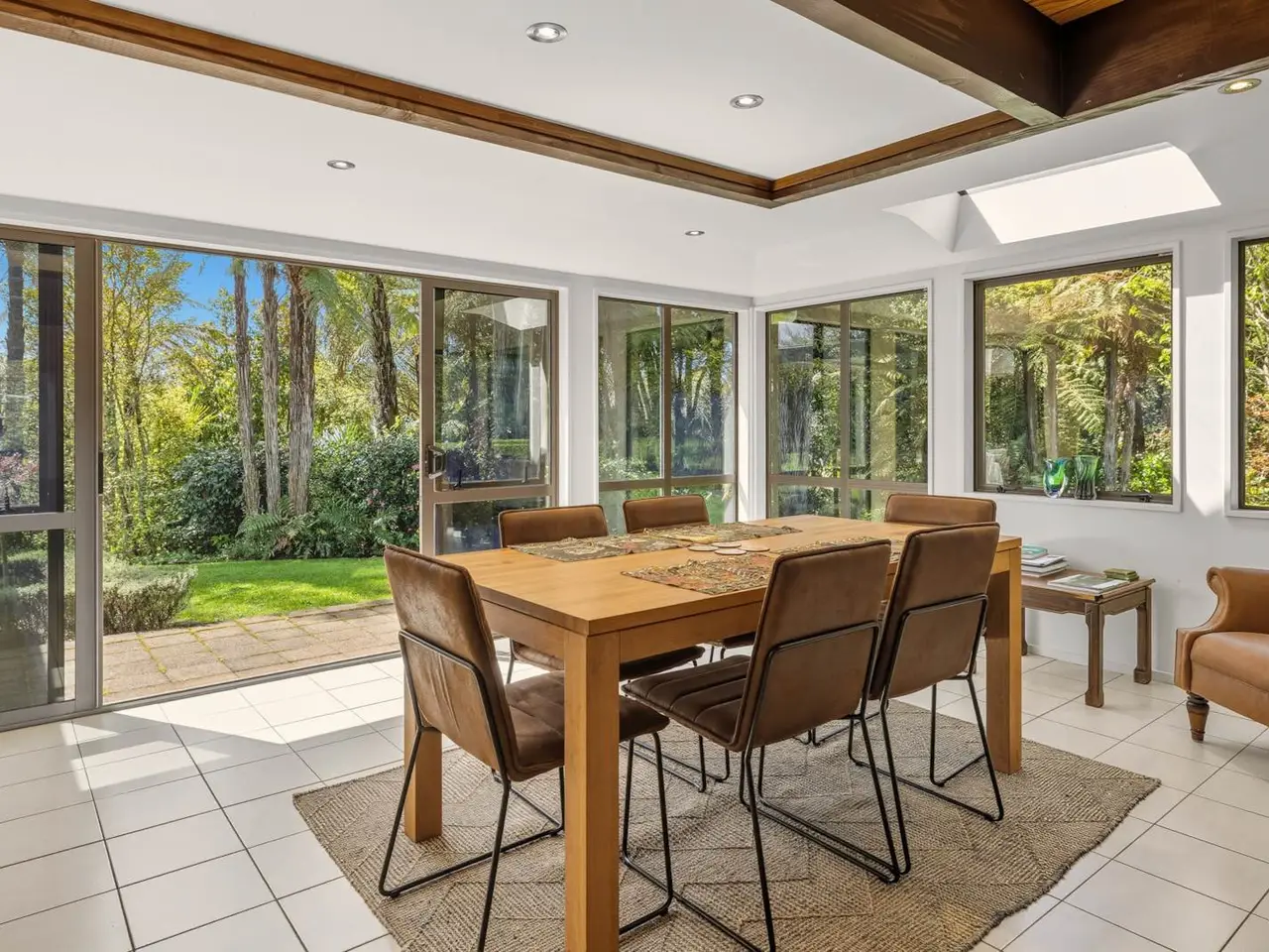 Nestled down a long drive and surrounded by many varieties of shrubs and established trees, this home is a fusion of timeless character, lovely family spaces and natural light. A tarseal driveway passes beneath tall canopies and manicured gardens before arriving at this residence that sits in harmony with its natural surroundings. Inside, sarked timber ceilings and exposed Douglas Fir create a warm and inviting atmosphere. Expansive living areas flow across the main level, each framed by windows and sliders that capture views of the birds-and-bees garden. Unique and cleverly configured, this well-maintained family home has underfloor heating and makes exceptional use of space, with storage thoughtfully integrated throughout. The galley-style kitchen is both functional and well-finished, featuring dual island benches, granite countertops, gas cooking, and tongue-and-groove cabinetry. Sliders open to a patio with an electric louvred cover for all-season alfresco dining. Along with the dining area two lounges connect to the kitchen- one a smaller retreat with a fireplace, perfect for quiet evenings, and the other an expansive room with an additional fireplace all opening to the patio and surrounding pool area. A spacious rumpus/games room with a long bay window that has built-in storage adds flexibility for family living. A downstairs toilet for guests, and a laundry with an adjoining shower completing the ground floor. The staircase, finished with an iron balustrade leads to a landing with a picture window overlooking the property. There are four bedrooms, one is currently in use as a study/office. Two of these are serviced by a family bathroom, while the other two have ensuites. The master suite features a fully tiled ensuite and a walk-in dressing room. A separate mezzanine nook flooded with afternoon sun provides a space to relax. The U-shaped section, complete with an in-ground pool, pathways, boxed hedging, and multiple gardens, provides privacy and outdoor living options year-round with space aplenty for family enjoyment and relaxation. Discreet lighting highlights the trees at night, and seasonal colour changes create an ever-evolving landscape. A freestanding double garage provides further convenience. Positioned on Joyce Road, this property offers complete seclusion yet remains close to local amenities. It is a 10-minute drive to Tauranga Crossing and is within easy reach of Pyes Pa School, ACG and Aquinas College. This is a rare opportunity to enjoy space, practicality, and natural beauty in one exceptional setting. Call today! Deadline sale: Closes on Thursday 6 November 2025 at 4:00PM (unless sold prior)