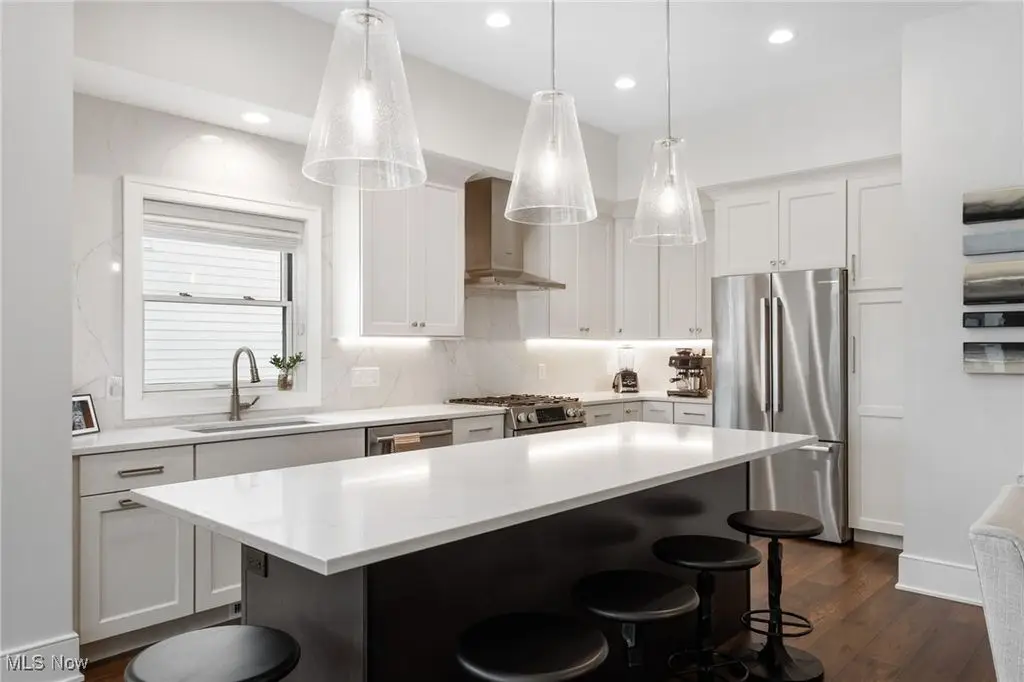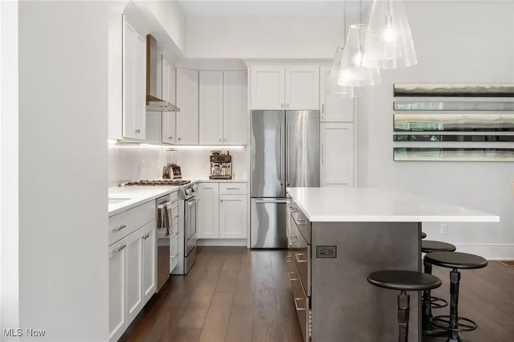 Live the Bay Village vibe with this Oster-built stunner in the coveted Bay Creek enclave. A rare blend of coastal charm and modern swagger, Bay Creek pairs New EnglandC/B?B=inspired architecture with luxe, contemporary designC/B?B=all just steps from shops, dining, parks, the brand-new Bay Village Library, Lake Erie, and Huntington Beach. Inside, refined craftsmanship meets bold style. The entry level's open layout centers around a jaw-dropping chef's kitchenC/B?B=premium finishes, upgraded fixtures, and plenty of room to host in serious style. Kick back in the cozy-yet-polished living area with a sleek fireplace or gather in the chic dining space.Upstairs, you'll find two spacious bedrooms plus a sun-soaked office with floor-to-ceiling windows overlooking the parkC/B?B=perfect as is or easily converted into a third bedroom. The third floor That's your entertainment HQ: custom wet bar with icemaker and dishwasher, another fireplace for cozy vibes, and a massive rooftop-style terrace serving up panoramic park views, a peek of Lake Erie, and the city hall steeple. The full basement is ready for storage or your next design vision. Every inch of this home blends elegance with livabilityC/B?B=perfect for sipping coffee at sunrise, hosting unforgettable nights, or just enjoying the best of Bay Village at your doorstep.