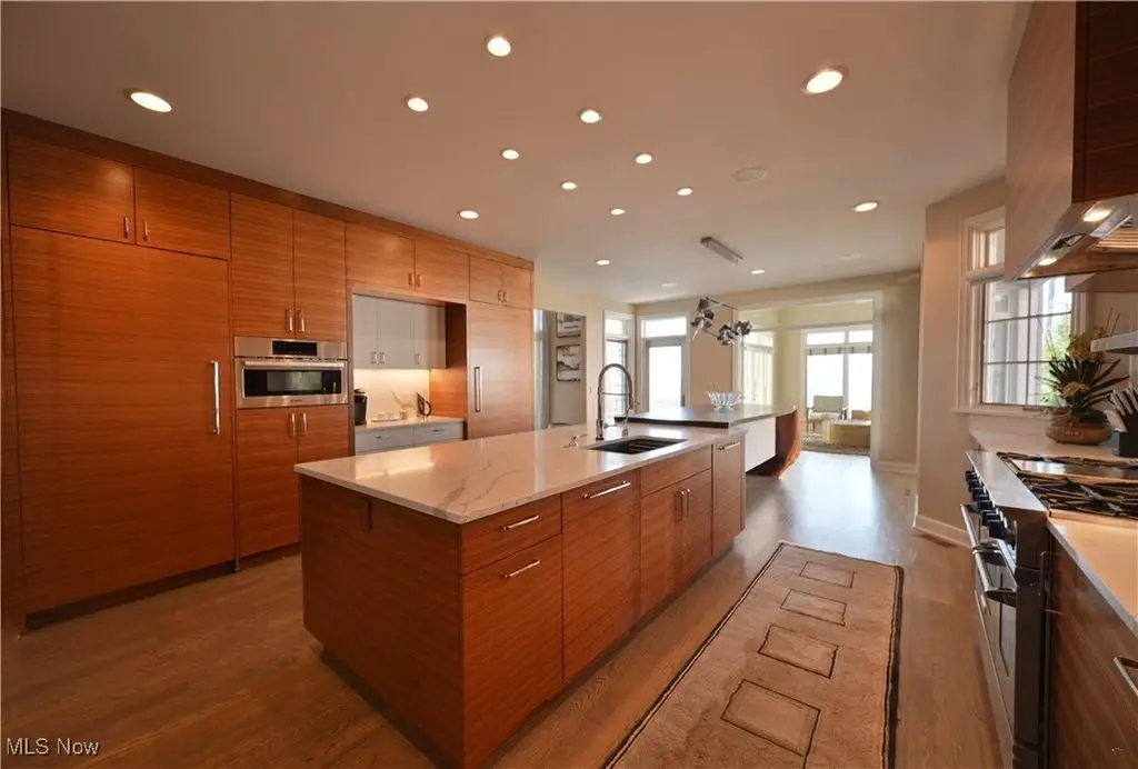 This exquisitely decorated home, designed by Associated Design and internationally acclaimed Trac Papish showcases the meticulous and timeless elegance throughout. A dramatic 2 story marble open foyer welcomes you with a grand winding staircase adorned with Finelli ironworks spindles. Enjoy the wide open floor plan featuring soaring ceilings and expansive windows that flood the home with natural light! Gourmet kitchen is a chefs dream! Seamless access to the 4 season sun room and hearth/family room. First floor primary suite offers a spa like retreat complete with a luxury bath heated floors and whirlpool tubs. 2 story great room and a distinguished library with a 12 foot coffered ceiling. Additional highlights include a lower level bedroom and full bath with access from the outside! ideal for guest or in-laws. Step outside to the beautifully landscaped yard with an inground heated pool. The yard is 542 feet in depth. This home is offered fully furnished and all new flat screen TVs included. All furnishings are 1 year old!!