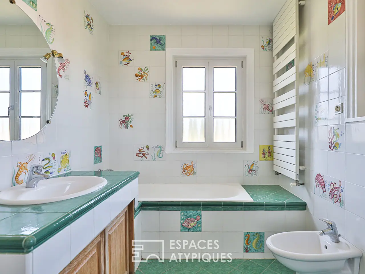 Located in the sought-after Arenes district of Bayonne, this 1950s villa with 150 sqm of living space is inspired by Italian architecture, with its elegant arcaded facade. Built on a 466 sqm plot, it benefits from a sought-after location, close to schools, shops, and transport, thus offering a pleasant living environment, ideal for a primary or secondary residence. Upon arrival, a vast hall opens onto an original elm staircase, enhanced by a beautiful high ceiling, and leads to a bright interior with preserved character. The 35 sqm living room, bathed in light, is centered around a wood-burning stove, creating a warm atmosphere. The wooden parquet flooring, present in the living areas and bedrooms, adds a touch of authenticity. A separate fitted kitchen, five bedrooms, a bathroom, and a shower room complete the generous volumes of this family home. The ground floor includes a garage, a laundry room, and a cellar. This level, as well as the attic, can be transformed according to your wishes. The exterior is a real asset, with a garden ideal for outdoor meals, moments of relaxation, and the pleasure of enjoying the beautiful days. Overall, the house offers great potential, giving free rein to your development and space optimization projects. Witness to an era imbued with elegance, you will be seduced by its noble materials, its airy volumes, and its rare location in Bayonne. A unique opportunity to acquire a property with timeless charm, in a sought-after neighborhood. ENERGY CLASS: D / CLIMATE CLASS: D Estimated annual energy costs (2021): between EUR2,674 and EUR3,618. Priscillia GARCIA 07 64 40 01 91 REF. 10711EAB Additional information * 8 rooms * 5 bedrooms * 1 bathroom * 1 bathroom * 1 floor in the building * Outdoor space : 466 SQM * Parking : 3 parking spaces * Property tax : 2 638 € Energy Performance Certificate Primary energy consumption d : 249 kWh/m2.year High performance housing