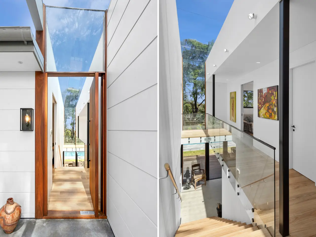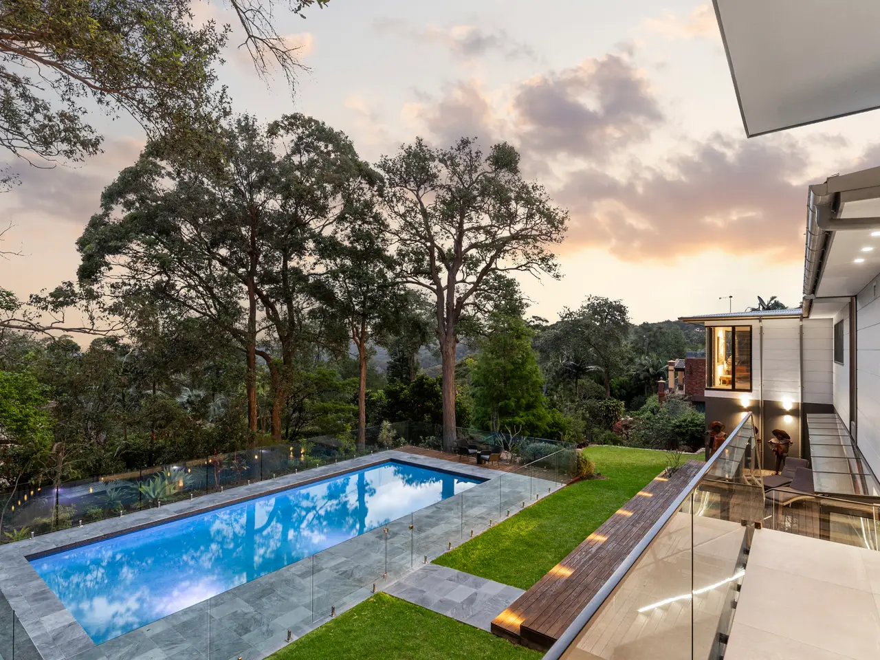 Spanning estate-like grounds on Bayview's premier street address, there are only two words for this architect designed residence: absolutely spectacular. Awarded top prize in 2022 from the Master Builders Association, the home merges striking forms with the artful play of light and dimension to create an environment of carefree sophistication and casual elegance. The design fully capitalises on the extraordinary landscape and ocean vistas, with three wings – one for children, another for parents and a third for guests, along with three distinct living zones. Extensive glazing creates a sun-trap from the north, while the luminous, free-flowing layout and skylit interiors add to the effortless livability of this phenomenal residence. The property covers a full level acre, blanketed with lush green lawns and dotted with soaring gum trees; the exquisite gardens are finished with reclaimed timber and sandstone, creating an extraordinarily private backdrop for the 12m saltwater pool and views that seem to stretch for miles on end. - Architect designed; awarded top prize by Master Builders Assoc. - Set on a level acre amid gardens, lush green lawns + towering gums - Premium quality design + build; three living zones across two levels - Stunning entertaining terrace on the main floor delivers ocean views - Fully self-contained guest suite at pool level + servery to the deck - Purpose-built home office plus separate study or fifth bedroom - Expansive alfresco deck, 12m resort-style pool, fabulous firepit area - Top-of-the-line kitchen, Siemens appliances, hidden butler's pantry - Master wing boasts superb views, luxe ensuite, walk-in robes + lounge - Elegant bedrooms; all bathrooms include heated floors + towel racks - Temp controlled wine cellar at pool level; holds up to 1,500 bottles - Ducted/zoned climate control, 13.2kW solar, main gas connection - Established garden and fruit trees edged with vintage sandstone borders - Four-car garage w/internal access; room for boats or campervans - Fully fenced property; electronically gated, 18,000ltr water tanks Disclaimer: Whilst all care has been taken to ensure accuracy in the preparation of the particulars herein, no warranty can be given, and interested parties must rely on their own enquiries.