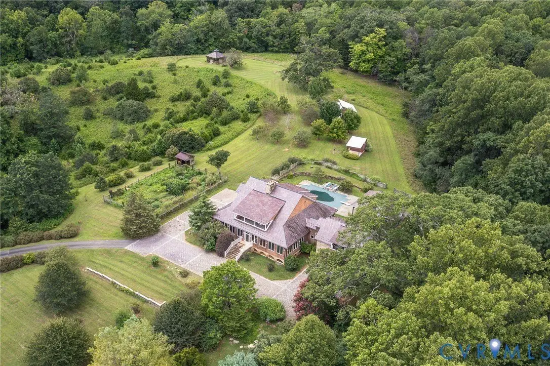 Rare opportunity to own an idyllic 394-acre country estate at the foothills of the Blue Ridge Mountains, centrally located between Roanoke and Lynchburg. Live and work on a prominent rural treat with a diverse landscape filled with forests, fields, springs, streams, and a tranquil pond--creating a sanctuary for abundant wildlife and plant habitats. A main residence with an attached apartment and fully equipped guest house totaling nearly 9,000 finished square feet provides the opportunity to operate a B&B, recreational retreat, or multi-generational space for all. Featuring a pool, spa, sauna, gardens, gazebo, greenhouse and "chicken mansion," you can spend your days immersed in the beauty of historic central Virginia. Two oversized barns provide ample space for horses, equipment, and storage, making this an equestrian's dream. The main home is the heart of the property with its full, enclosed wrap-around porch, stone wood-burning fireplace, and custom kitchen accented by brand new maple floors. Additional luxuries include an interior lap pool, sauna, finished garage, and two primary suites, offering every comfort for the lifestyle you've always dreamed of. Cherished by the same owner for 30 years, this property is now ready for its next chapter. Bring your vision and make this one-of-a-kind property your own!
