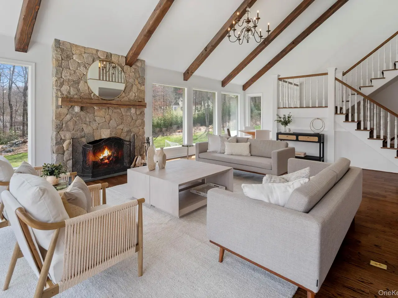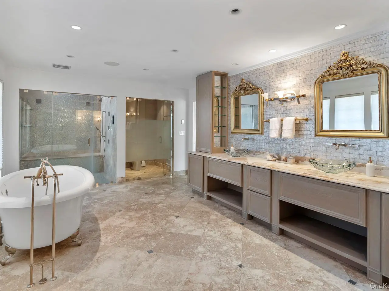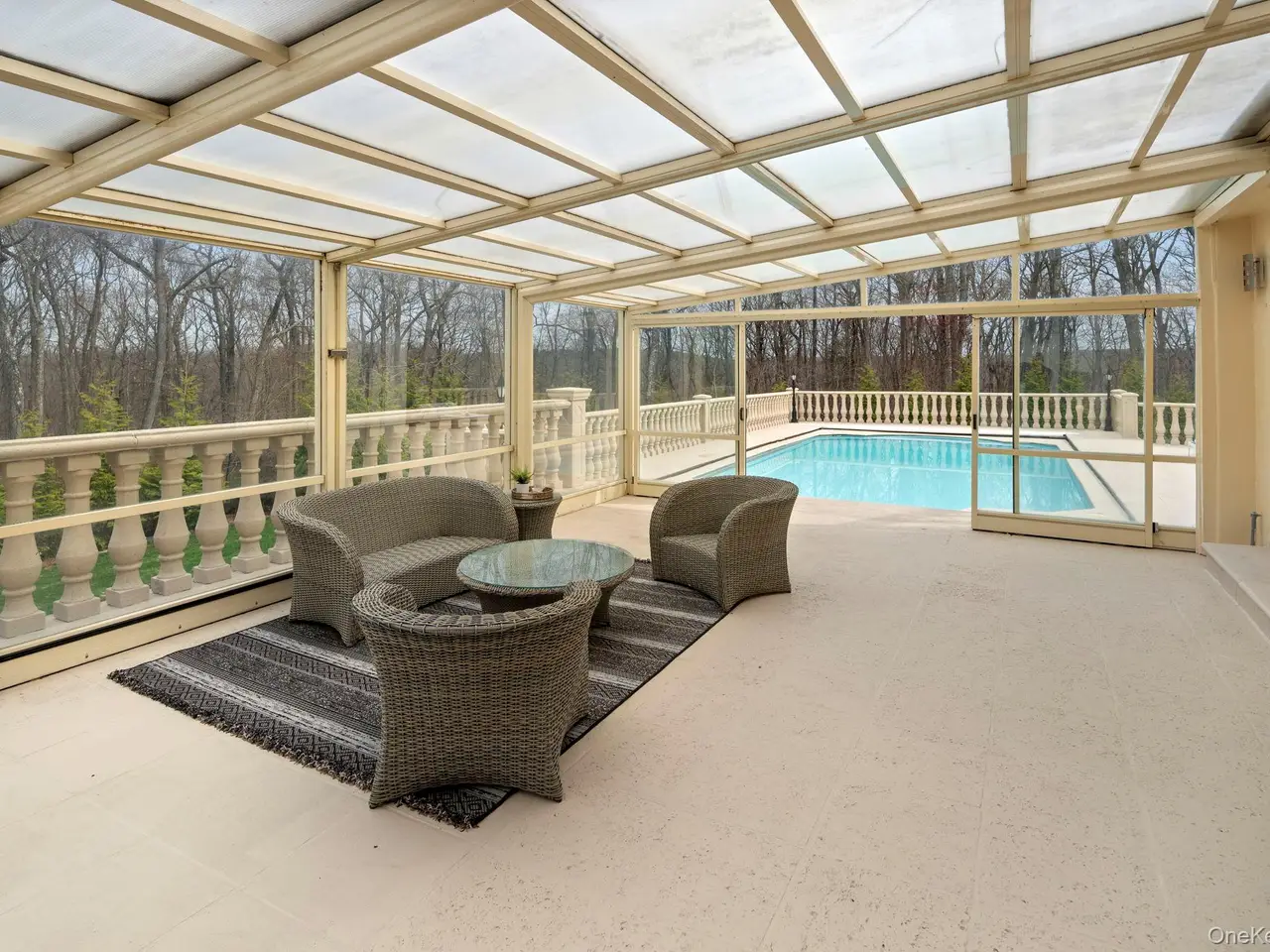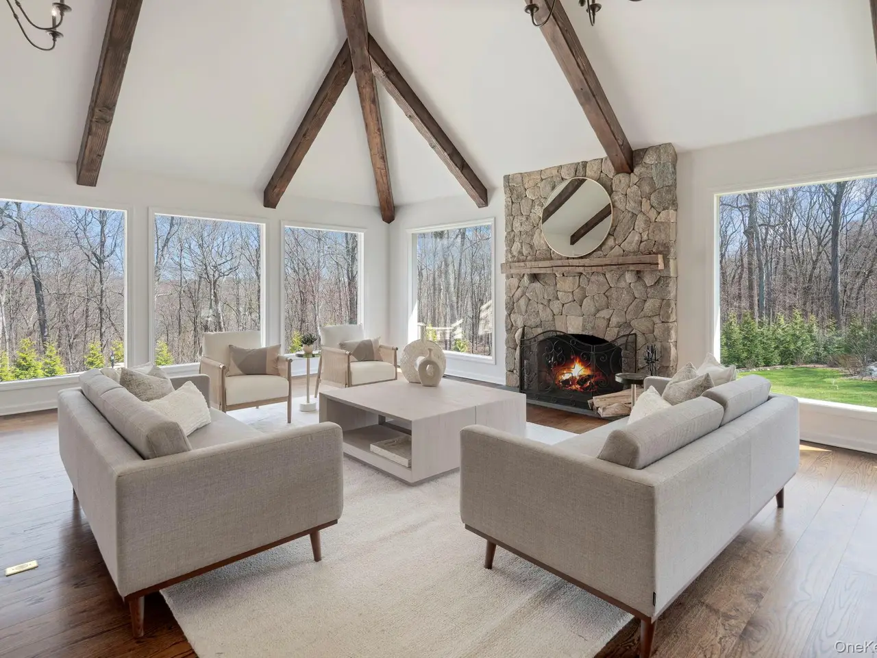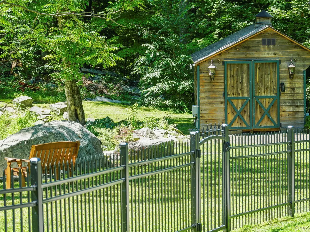 An incredible retreat for living, working and relaxing in complete privacy. Lives like a 5 bedroom home. Transitional style mini estate set on 4.7 serene acres with a pool and magnificent botanical gardens. Flexible floor plan great for hosting guests. Highlights include a new high-end chef's kitchen, marble rotunda entry, dramatic living room, limestone and marble baths, French doors, stone terraces, and Belgian block courtyard. Luxurious first level suite w/library, fireplace, spa bath and dressing room closet. The second level bedroom suite has a sitting room and bath. All bedrooms and bonus room are en-suite and open to a hall lounge. There are two laundry areas. Lower level provides abundant space for enjoying the game room with fireplace, kitchenette, fitness center, bath and sauna. Beautiful terrace patios surround a 20'x40' pool and overlook the private yard and spectacular gardens. Close to village, schools, trains, shops, restaurants, nature preserves and major highways.