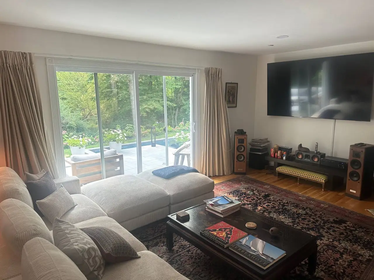 Lovingly restored mint-condition Modern 1964 ranch in Belle Terre with a new pool and gorgeous landscaped grounds with weather-smart irrigation on a full acre. The circular pea-gravel driveway leads to the connected two-car garage or to the front door, your choice. The large front yard gently slopes up to the house. The very private backyard has an expansive lawn, mature hydrangeas and roses, a fabulous propane-heated saltwater pool with a fence around the entire backyard (mostly not visible through the forest), a luxurious outdoor hot shower, and a large bluestone terrace off the living room, perfect for sunbathing. Gracious double front doors lead to a large foyer. Nailed down oak strip flooring throughout the home. New casement windows, double hung, and picture windows. The white 4-sided chef's kitchen has soft white stone counters, a breakfast bar, and a windowed eat-in area. All new top-of-the-line appliances: Blue Star gas range, matching Blue Star refrigerator/freezer, Miele dishwasher, and a double basin stainless steel modern Kohler farmers-sink. White large format subway tile backsplash with floating shelving on one side and plenty of cabinetry on the other sides. The dining room opens to the kitchen and overlooks the pool and backyard. The living room has a wonderful fireplace and glass sliding doors to the terrace. The primary bedroom is spacious and has 4 large California Closets and an ensuite bathroom with gray mosaic floor tile, a large marble vanity, and a shower/tub combo with Jacuzzi. The guest spa bath is modern and sleek with a wonderful walk-in shower. There are two guest bedrooms upstairs. Downstairs, there is a legal bedroom and full bath plus a huge renovated rec room, utility room, gym area, and wood shop. 3200 sq feet of living space overall and 4841 total interior. Best of all, you get Belle Terre amenities, including two private beaches with free kayak/small boat storage, one on the Sound, and one on the Harbor. Rare opportunity to acquire a mid-century, tastefully renovated home with excellent landscaping, a new roof, central air and heat, in sought-after Belle Terre. Move right in! Listing ID 924700