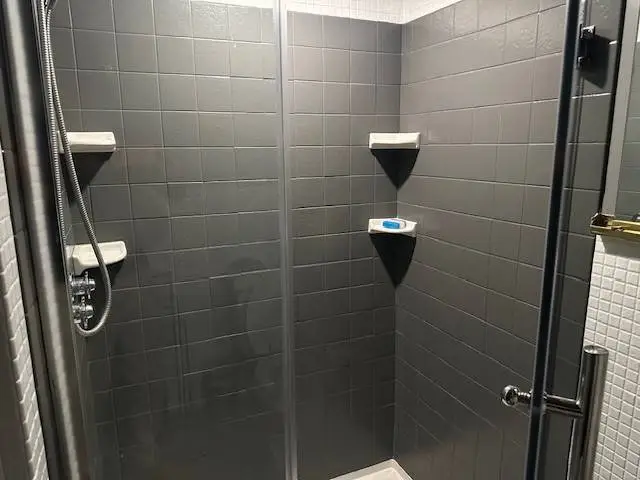 New propane-heated saltwater pool with luxurious outdoor hot shower