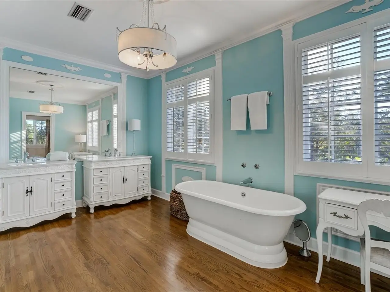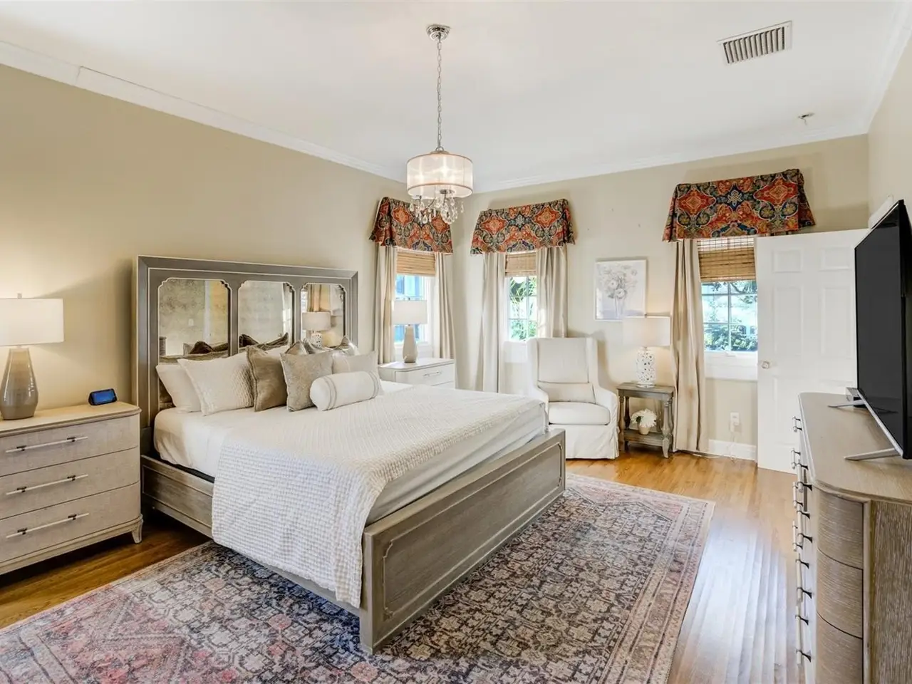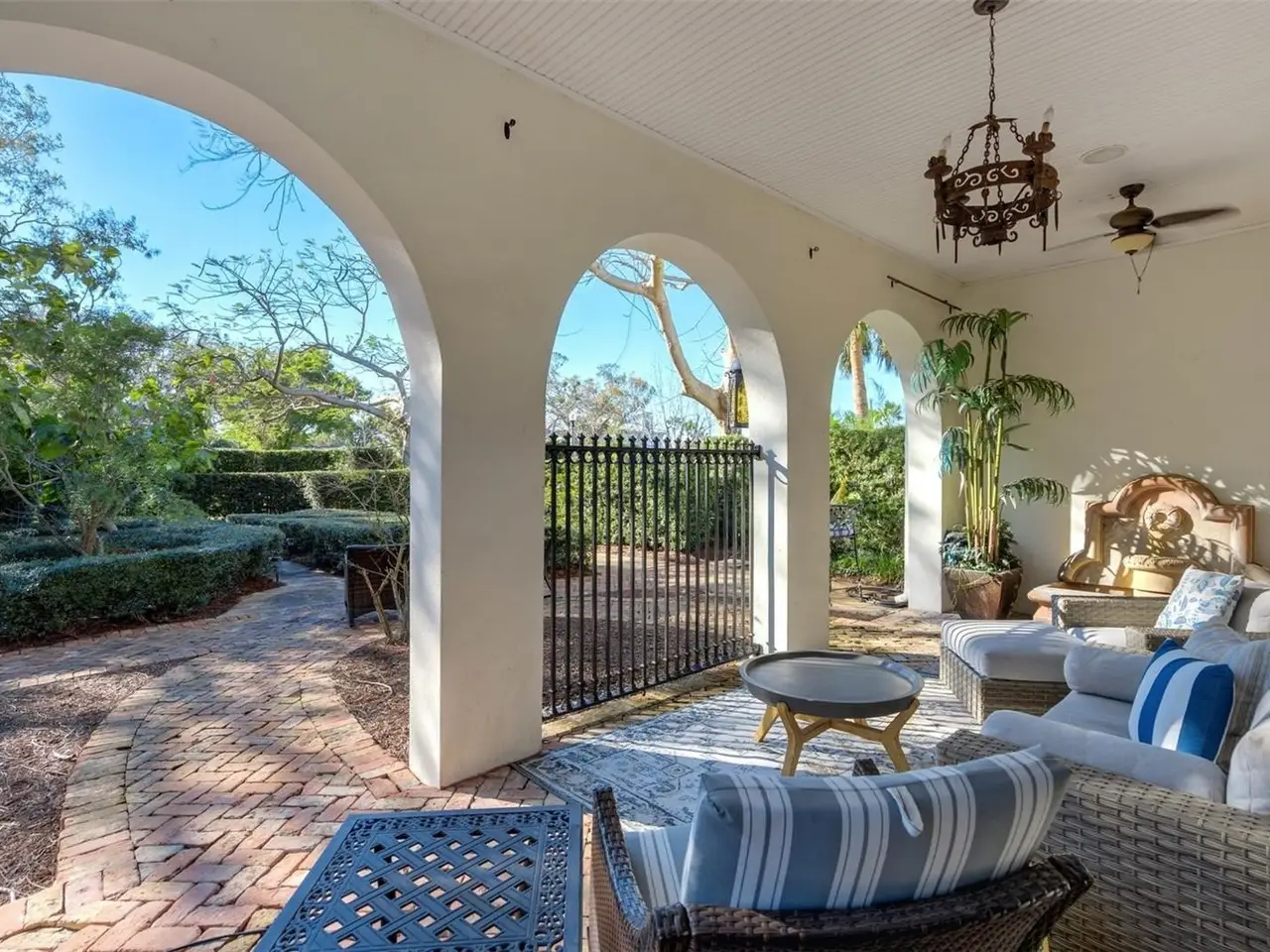 This sprawling estate in Belleair is an extraordinary Mediterranean villa steeped in history and elegance. Located across the street from the Belleair Country Club Golf Course. The property spans nearly an acre and has been restored to preserve the charm and grandeur of its 1920s origins while incorporating modern updates that ensure comfort and luxury. It was once the home of Lucius Ruder, a key figure in Belleair’s history and the flamboyant mayor during the Depression era. His contributions to the area include donating the beach south of the Clearwater Pier to the city, and his influence is reflected in the estate’s design and the lush gardens he cultivated. The home’s grand 7,193-square-foot layout exudes old-world charm with rich hardwood floors, hand-painted coved ceilings, terracotta tile floors, and stunning light fixtures. A majestic foyer welcomes guests with custom stained-glass doors, while the expansive living areas—such as the grand room with a stone fireplace and beamed ceiling—are ideal for both large gatherings and intimate moments. The artistic Cuban tile flooring in the recreation room and the extensive Italian-style loggia outside elevate the home’s beauty. The kitchen is a masterpiece in itself, with a $250,000 redesign featuring top-of-the-line appliances like Wolf ranges and Sub-Zero refrigeration, custom cabinetry, and dual prep areas—ideal for any culinary enthusiast. The home is equipped for both relaxation and entertainment, with multiple courtyards, a gazebo, lush gardens, and a poolside kitchen perfect for year-round gatherings. The master suite serves as a peaceful retreat with a private lounging area, a spa-like bath with a soaking tub and separate shower, and a walk-in closet with a dressing room. Guests are offered privacy in the guest wing above the garage, which includes two ensuite bedrooms and a rooftop terrace. The estate is fortified with hurricane-impact windows and doors, ensuring safety and longevity, while the gated motor court and roof replacement in 2019 add to its modern functionality. Situated in an exclusive neighborhood and across the street from Belleair Country Club, while minutes from Clearwater Harbor, and Morton Plant Hospital, the Ruder Estate combines history, luxury, and functionality in one remarkable package.