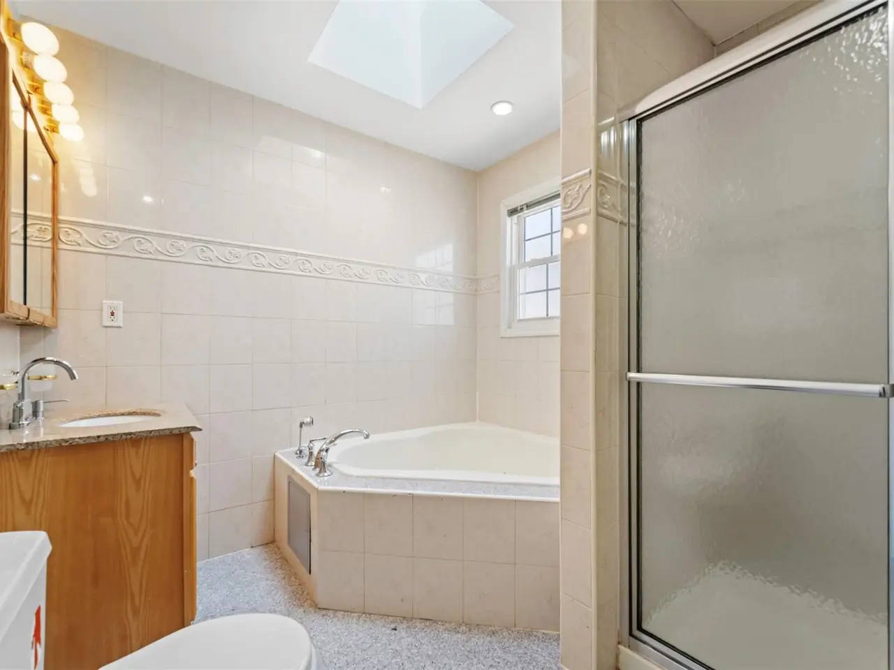 Stunning, newly renovated large Colonial in the heart of Bellerose! This home features four bedrooms, three full baths, one half bath, a full finished basement, a full finished attic and a detached one-car garage. There is a welcoming front porch, and a rear deck. Interior finishes include a skylight, walk-in closet, hardwood floors throughout, and gorgeous eat-in kitchen with granite and a kitchen island. There is central air, and video cameras for security. Close to ground transportation, major highways, easy shopping and excellent restaurants. In School District #26.