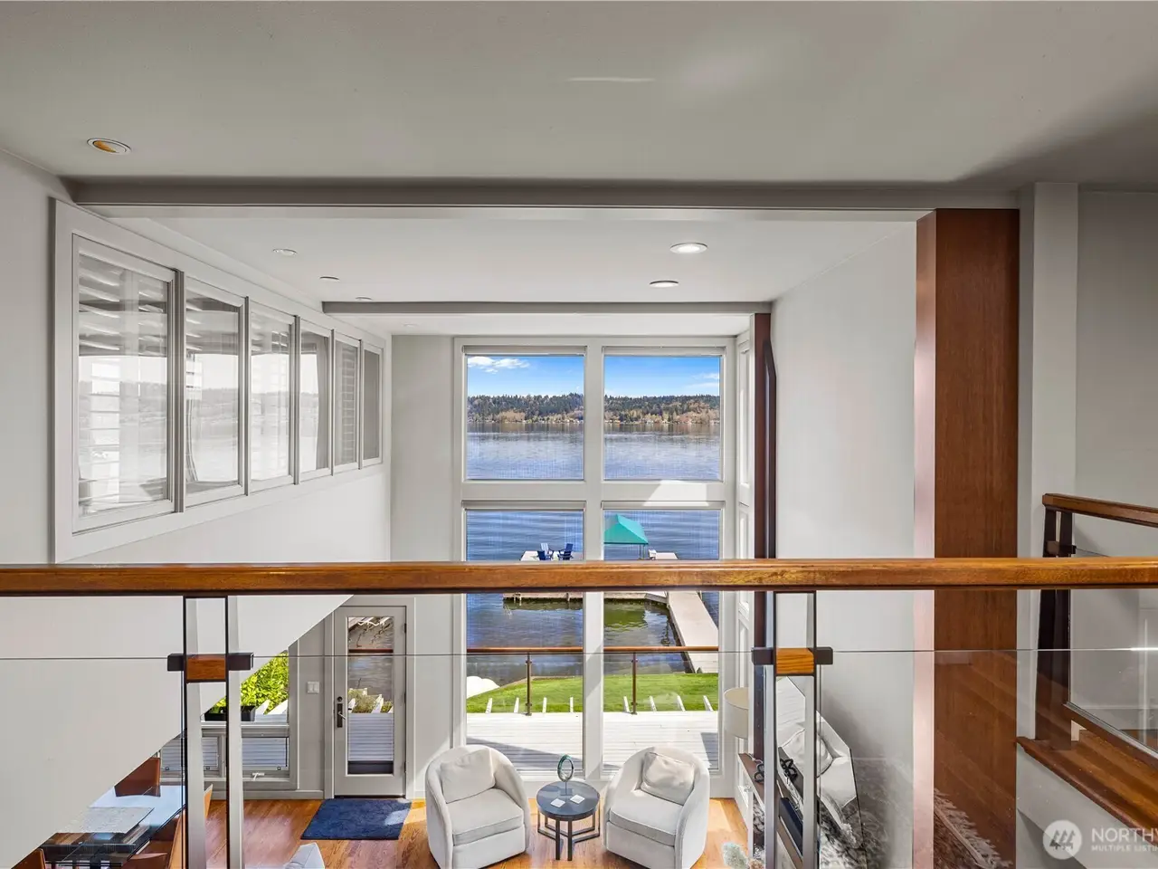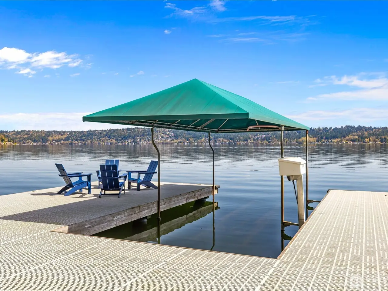 Tucked on a quiet lakeside lane with 90 feet of private Lake Sammamish shoreline, this NW contemporary retreat is a study in light, style, and serenity. Two-story windows and skylights fill the home with natural light, from the great room to the airy sunroom where lake breezes drift through the open NanaWall. Swim off the expansive dock, cast a line in the cove, or retreat to the cozy theater with wet bar. Evenings invite sunset dinners on the full-width deck, followed by a soak in the secluded hot tub tucked amidst lush landscaping. Upstairs, the serene primary suite offers storm-watching solitude and sweeping views. Extensively updated and thoughtfully designed - with rare 8-car parking - this is active waterfront living, beautifully refined.