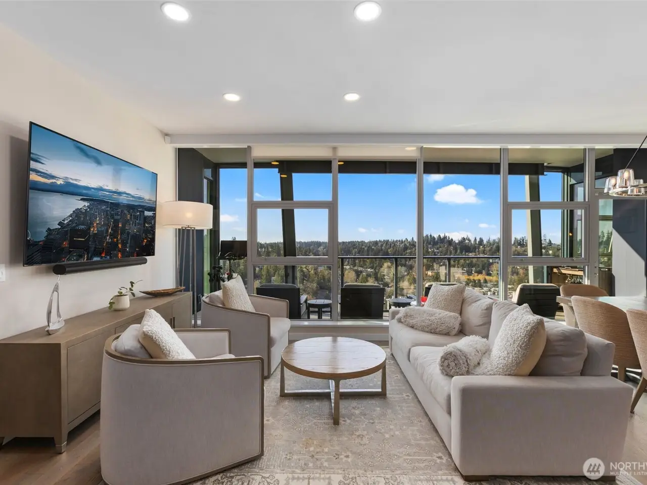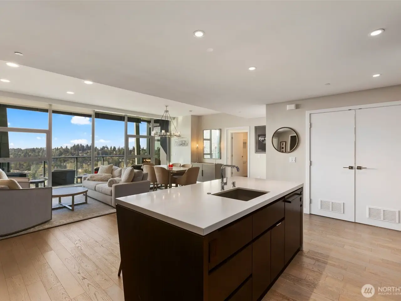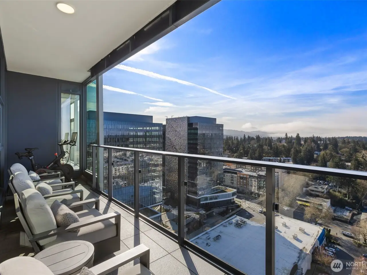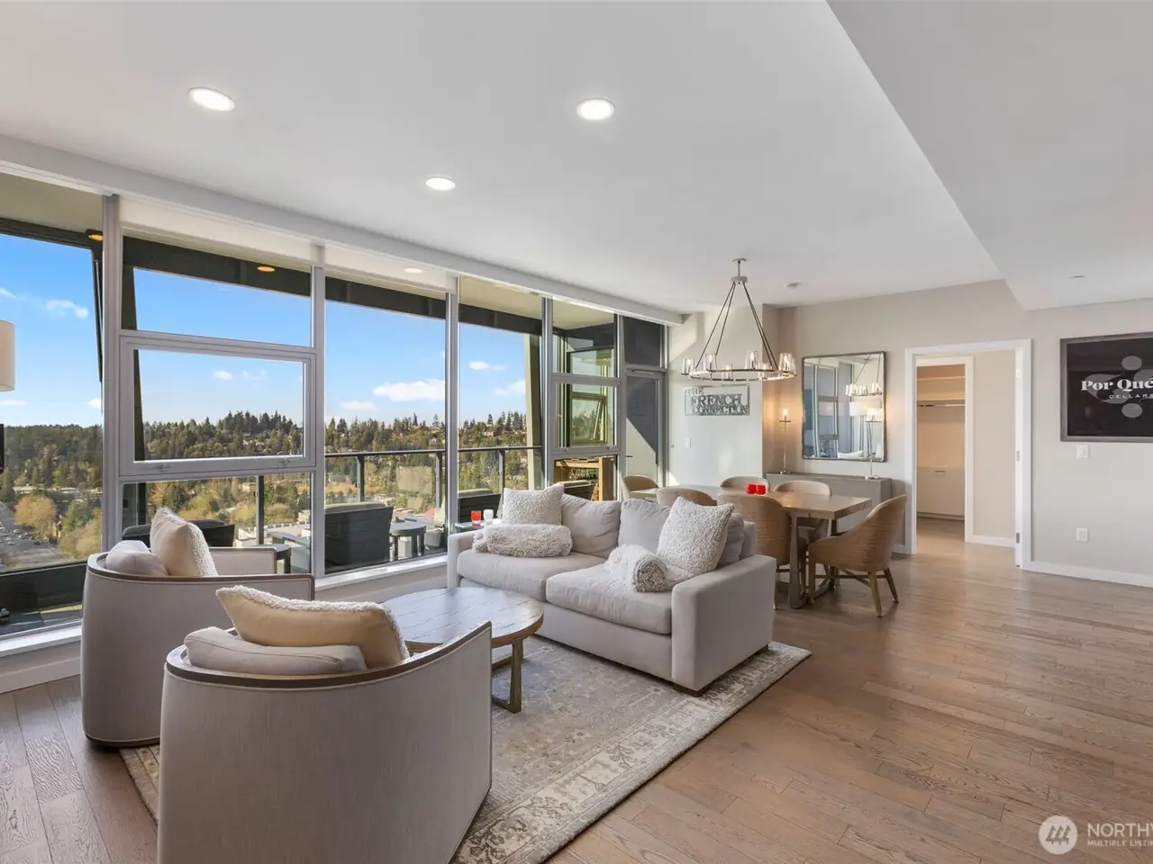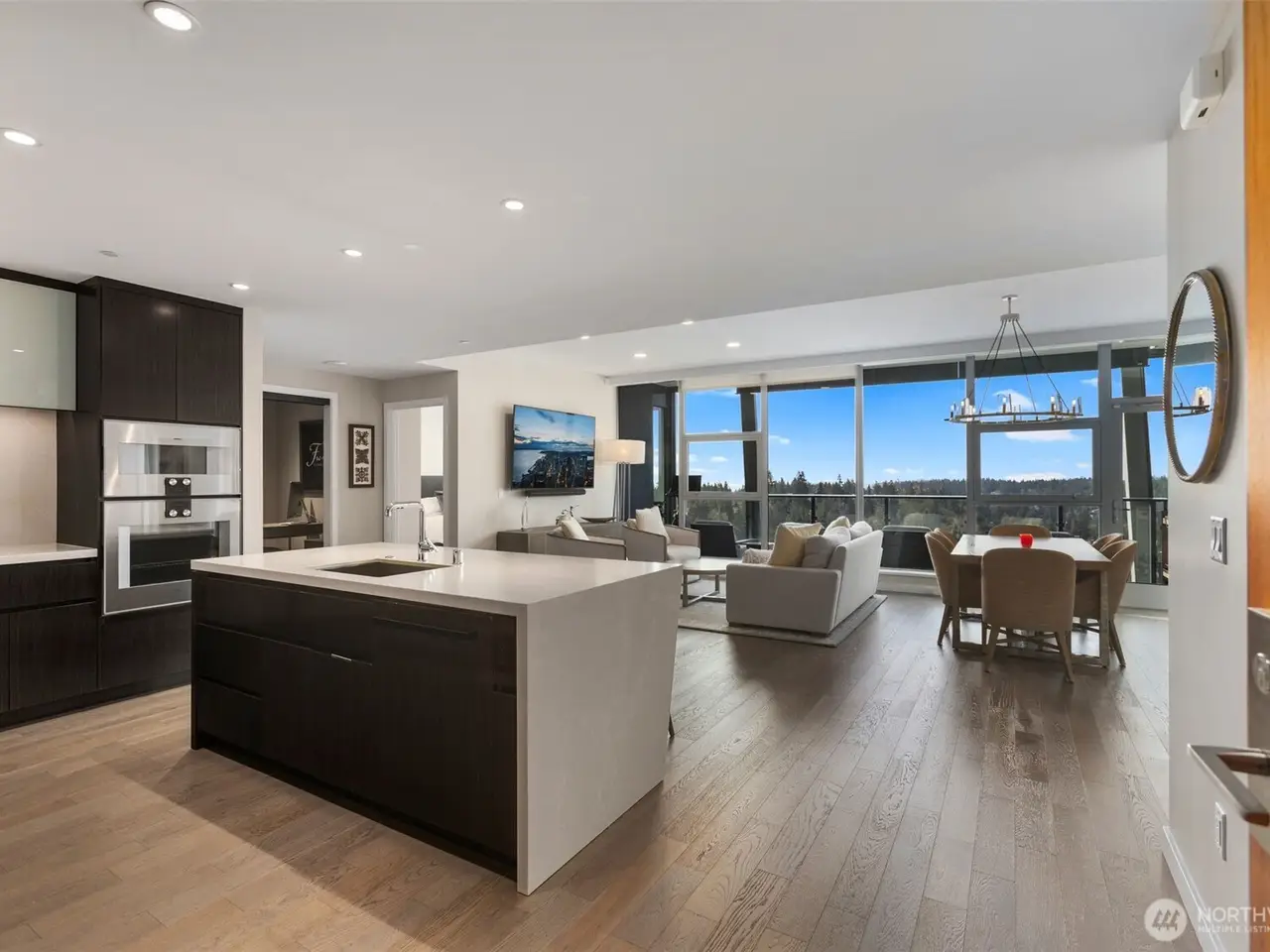 Experience refined luxury in this south-facing residence at One88 by Bosa. Framed by stunning views of Mt. Rainier, Lake Washington, and Bellevue's skyline, this 2-bed/2-bath + den home exudes sophistication with 9-ft ceilings, floor-to-ceiling windows, and wide-plank hardwoods. The gourmet kitchen showcases sleek European cabinetry, Caesarstone quartz counters, and premium Gaggenau appliances. Enjoy a covered balcony, two secure parking spaces, and private storage near the garage. Resort-style amenities include a concierge, indoor pool, sauna, steam room, fitness center, golf simulator, and more--all in the heart of downtown Bellevue's premier shopping, dining, and entertainment. No rental cap!