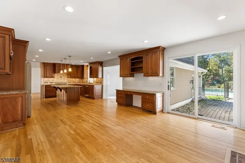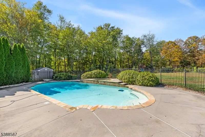 Welcome to this beautifully maintained custom Cape Cod home, featuring 4 spacious bedrooms, 3 full bathrooms, and a 3-car garage. The main level offers a bright and inviting living room, a formal dining room, and a gourmet kitchen complete with a center island and a charming wood burning fireplace. A sun-drenched family room overlooks the heated saltwater in-ground pool. A first-floor bedroom with a full bath, along with a mudroom and laundry closet, adds comfort and convenience. Upstairs, you'll find 2 generously sized bedrooms with a shared hallway full bathroom with double vanity, as well as a luxurious primary suite boasting a walk-in closet, a spa-like bathroom, and a bonus sitting room/ office (which could be a 5th bedroom). Attic access is also available for additional storage. The finished basement provides extra recreational space and ample storage. Outside, enjoy a serene, fenced-in backyard complete with a pool, fire pit, playground, mature fruit trees, blueberry and raspberry bushes, and full garden. Located in an established neighborhood with top-rated schools and easy access to major highways, this home truly has it all.