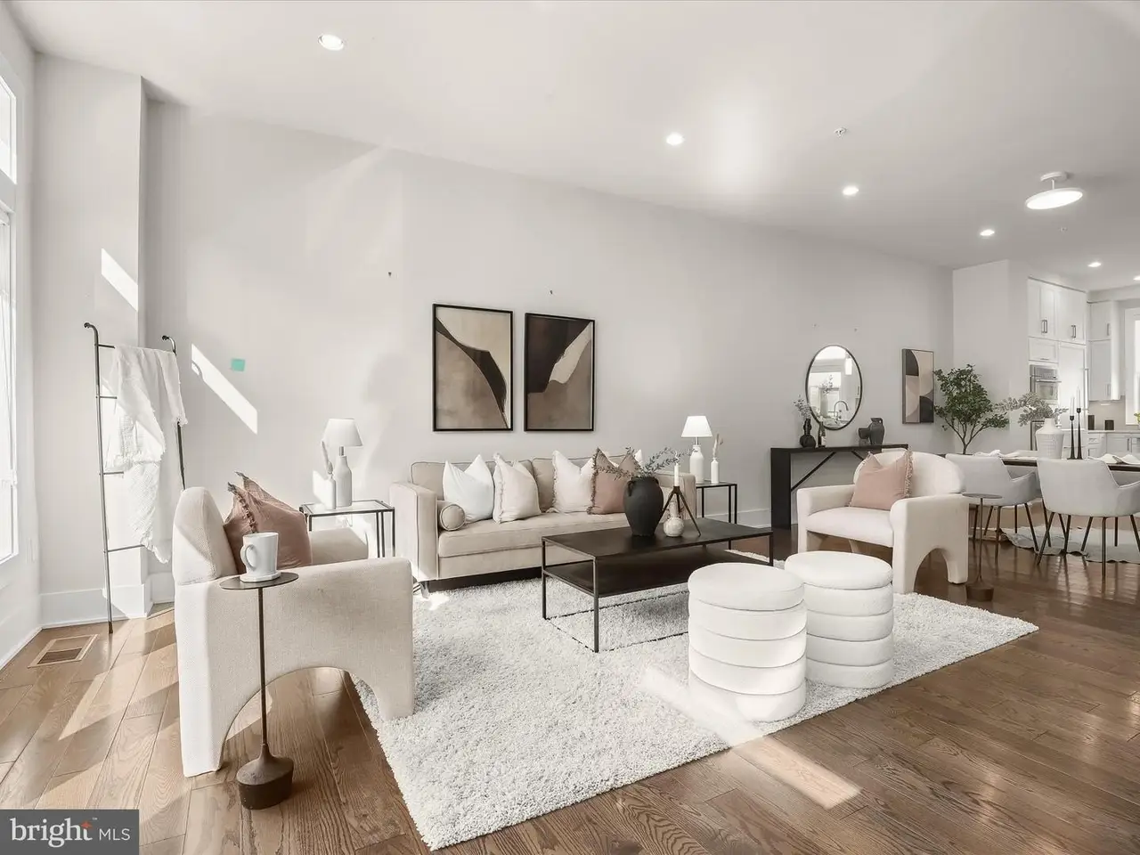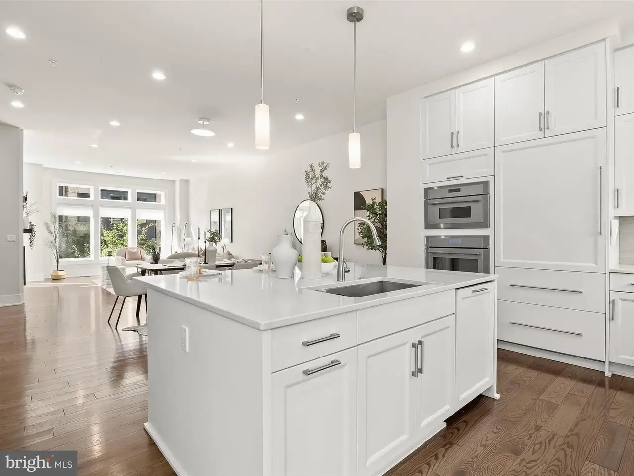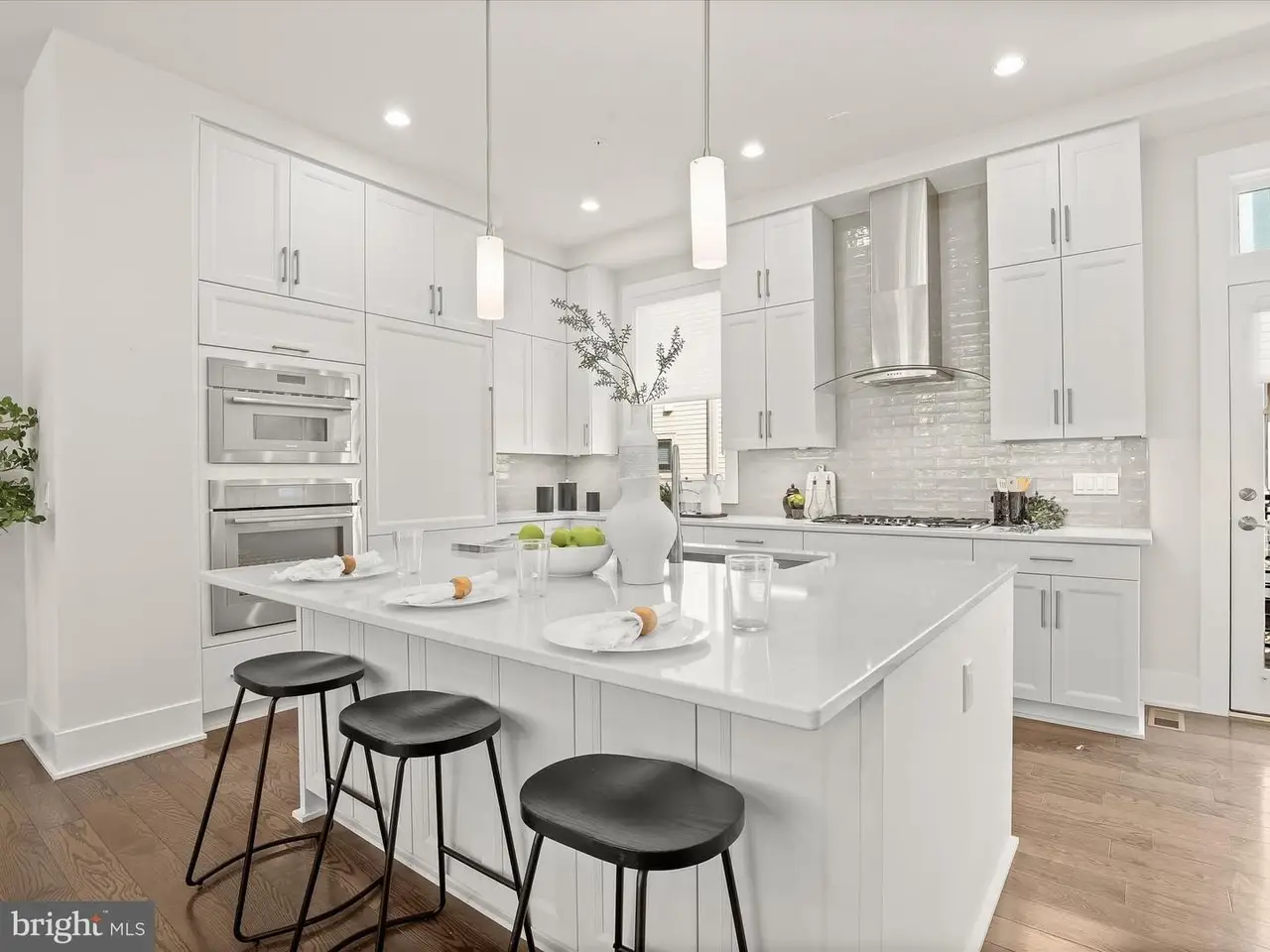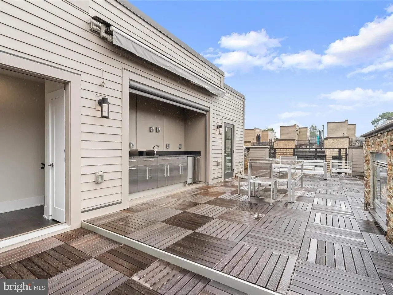 Introducing this exceptional four-level, elevator townhome in the sought-after Grosvenor Heights community in Bethesda, offering four bedrooms, three and a half bathrooms, and remarkable details at every turn. Built in 2019 by award-winning builder EYA, this home provides ultimate convenience with an elevator serving each level, including the rooftop terrace. Step inside the foyer where beautiful hardwood floors and a neutral color theme set the tone that continues throughout the home. The entry level includes a bedroom with a private ensuite bathroom featuring a walk-in shower, ideal for guests, those seeking a quiet retreat, or a home office. This level also provides access to the rear two-car garage. Upstairs, the open concept main level boasts tall ceilings and abundant natural light from oversized windows. The gourmet kitchen is a chef's dream, appointed with high-end appliances including a five-burner gas cooktop, range hood, built-in microwave and wall oven, as well as a hidden refrigerator and dishwasher. Quartz countertops, a tile backsplash, soft-close cabinetry with under-cabinet lighting and pull-out storage, and a center island with seating complete the space. Step onto the balcony off the kitchen for morning coffee or casual dining. The adjoining dining area is ideal for hosting gatherings, while the living room features a cozy gas fireplace and a discreet wet bar for coffee or cocktails. A half bathroom on this level adds convenience. Up one more flight, the bedroom level showcases the primary suite with two walk-in closets and sliding glass doors with custom motorized curtains. The luxurious ensuite bathroom offers a dual-sink vanity and oversized frameless shower with bench seating. Two additional bedrooms, a hall bathroom, and a laundry closet complete this level. The top level is entirely dedicated to the rooftop terrace, designed for both relaxation and entertaining. Highlights include a motorized retractable awning, wet bar tucked behind a garage-style door, gas fireplace, built-in grill, and views of the surroundings. Every detail reflects thoughtful craftsmanship, from custom closet built-ins to modern lighting and finishes throughout. Enjoy this convenient location minutes from the Grosvenor-Strathmore Metro Station, I-495, I-270 and other commuting roadways. Explore the local surroundings, with walking and biking trails, nearby Fleming Park, Wildwood Shopping Center, The Music Center at Strathmore, downtown Bethesda and more. Tucked among lush greenery, this serene setting offers an unparalleled lifestyle close to everything you need. Seller would consider a rent or rent-to-own option.