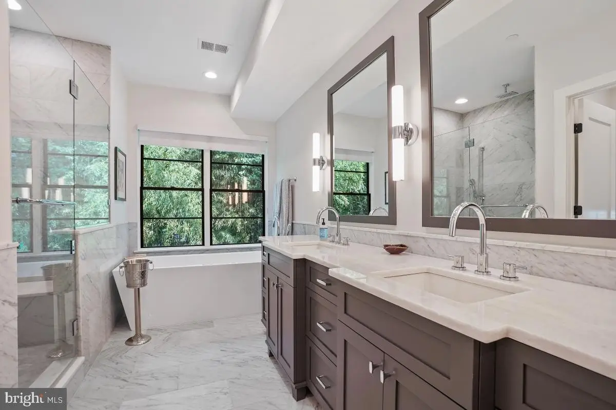 Amazing almost new home built by award-winning Douglas Construction Group (Best Green Builder-Bethesda Magazine and Maryland Building Industry Association Montgomery County Custom Builder Winner). 5 bedrooms, 5.5 baths, covered porch, separate dining room, gourmet chefs kitchen, , family room with fireplace and mud room with built-ins. Upper level I contains the owner's suite with a large walk-in closet, and a gorgeous spa en-suite bath, 2 additional bedrooms with en-suite baths, and laundry room. Upper Level II has a 4th bedroom with a full bath and roof top terrace. Finished lower level includes 5th bedroom, full bath, game room/recreation room, temperature-controlled wine cellar, and storage/utility room. This home has it all including location, it is close to parks and has easy access to Downtown Bethesda.