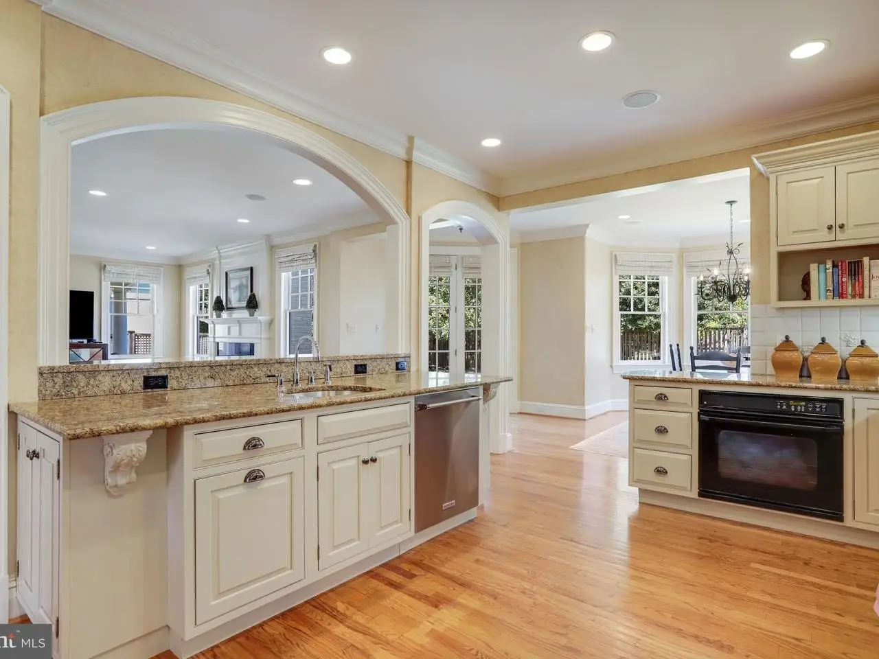 Stunning Colonial on a quiet and peaceful tree lined street in the heart of the Springfield subdivision. Springfield is a friendly neighborhood with well manicured lawns and a strong sense of community.  It sits in the sweet spot of commutes to downtown Washington DC and work points in Virginia and Maryland off nearby 495 and 270. The Ride on Bus and Metro bus are a short walk away and the metro is about 2 miles. This beautiful home was built by Meade Bell and reimagined and expanded by his son, the renowned Frank Bell. With it's classically executed exterior and charm infused interior, it offers nearly 6000 square feet of space. Upon entering the large foyer, you will notice beautiful millwork throughout. The main level features a sprawling open kitchen/family room/breakfast room with nine foot ceilings and a fireplace. French doors take you from this space to a large flat fully fenced grassy yard with flagstone patio and a covered eating portico. Also on this level is a grand entertaining sized dining room and an elegant living room with fireplace. On the upper level, there are 5 bedrooms, 3 full baths and a laundry room, accessed by wide and gracious halls. In the Primary bedroom there is a third fireplace and a spa like bath with a soaking tub, separate shower and double vanity. The lower level has three very large rooms - a home office, a game room and a recreation or media room, as well as ample storage in a separate storage room and utility room. Other amenities include a garage, a new roof, a multi zoned HVAC, and built-in speakers in the ceilings of the kitchen/family room, dining room, and primary bedroom. This property is served by the highly rated school district of Woodacres/Pyle/Whitman. Both the Woodacres Elementary school and playground, and the Little Flower School are a very short walk away. You can also walk to Whole Foods, Kenwood CC and the new Westbard square with its restaurants and shops. This is a rare find in an amazing location!