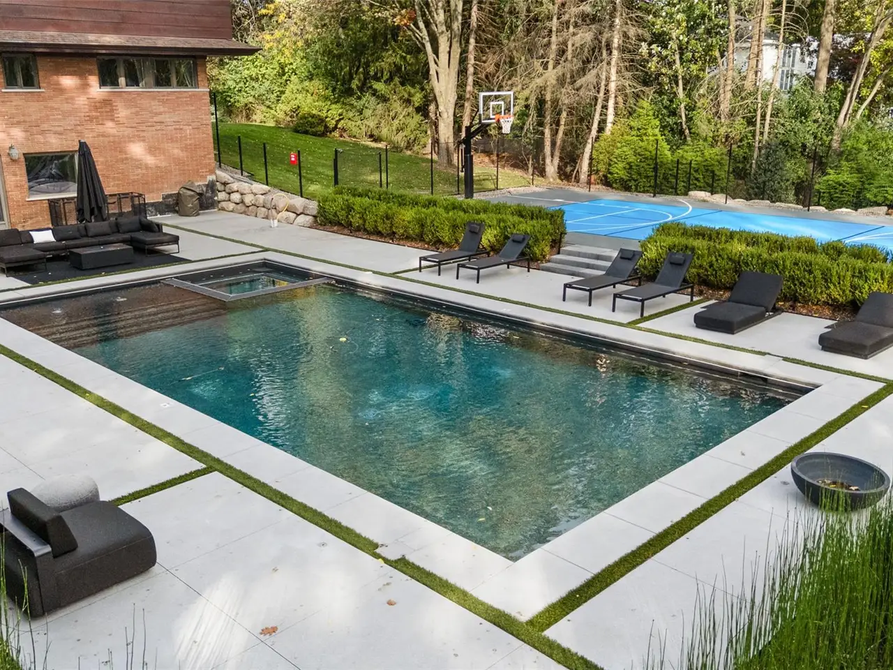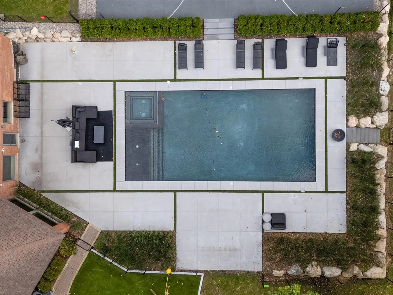 **Highest and Best Due Monday 10/20/25 @10:00PM** Redesigned in 2013 by architect Lou DesRosiers, this Bloomfield Hills residence sits on a premium 1.5-acre lot with an incredible new pool and full sports court, creating a true secluded retreat in the Birmingham school district. Located at the end of a quiet cul-de-sac, the home blends architectural distinction with modern livability across over 7,400 square feet of finished space. Inside, 5 bedrooms and 5.1 baths include a primary suite with dual bathrooms, a massive walk-in closet with a center island, and peaceful views of the wooded grounds. Expansive main living areas are framed by walls of glass, offering a seamless connection between interior and exterior spaces. The walkout lower level adds versatility with generously sized entertaining, living, and fitness areas, all opening directly to the resort-style backyard. Set among mature trees and manicured landscaping, the property also includes lake privileges on Walnut Lake, providing access to one of Oakland County’s premier all-sports lakes. Thoughtfully reimagined by Lou DesRosiers with enduring architectural integrity, this residence now awaits the next owner’s finishing touches, a rare opportunity to personalize a statement home in one of Bloomfield’s most desirable settings.