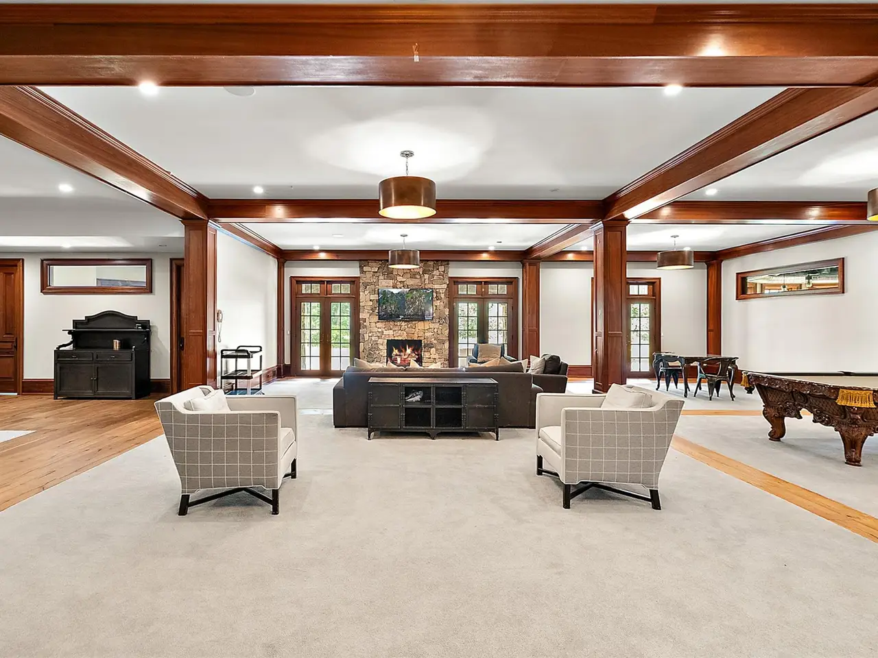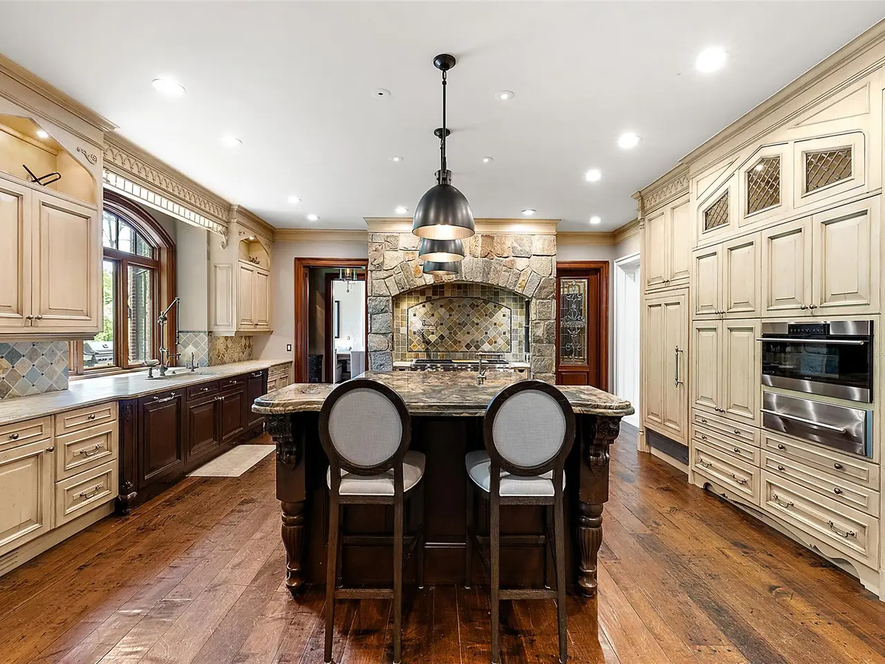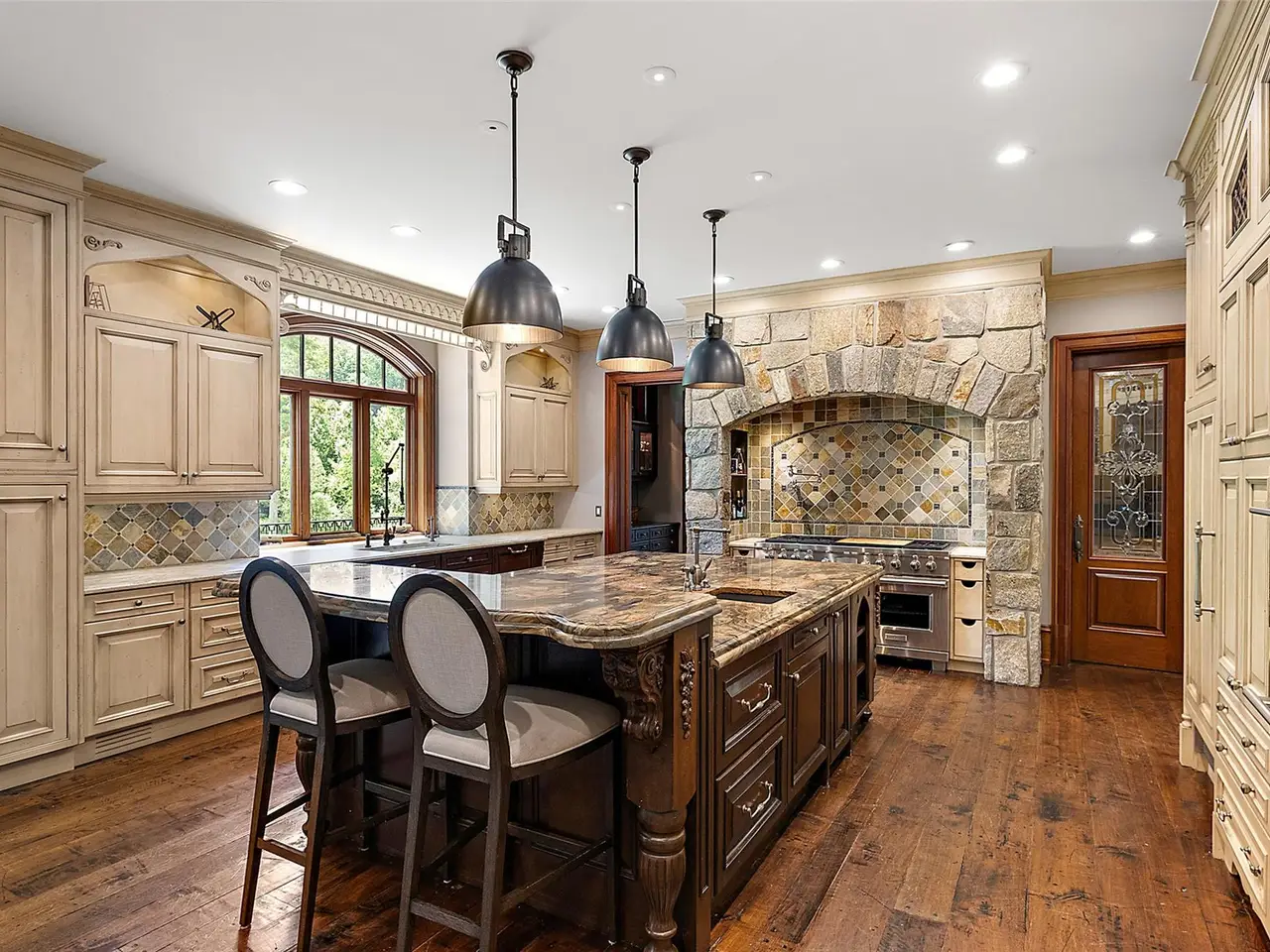 Experience luxury living at this private estate nestled along the Franklin Branch of the Rouge River. Offering over 16,000 square feet of beautifully crafted living space. Nestled on more than 10 serene acres, this property is defined by its tranquil natural surroundings, with the river gracefully winding throughout the grounds. Designed with comfort and grand entertaining in mind, the home features many amenities, including a state-of-the-art theater room and a two-story library, complete with a spiral staircase and exceptional millwork. Intricate moldings and custom woodwork are showcased throughout, reflecting superior craftsmanship at every turn. The inviting three-season room provides a peaceful spot to take in the beauty of the property, while the expansive rear patio spans the length of the home, offering panoramic views of the natural landscape. The expansive lower level is an entertainer’s paradise, boasting a huge great room, a fully equipped second kitchen, a custom bar, a stylish powder room, a game room, and a dedicated craft room. An elevator conveniently services all levels of the home. This one-of-a-kind estate offers a rare combination of privacy, elegance, and resort-style amenities in a truly picturesque setting. Recently renovated with fresh paint, new carpeting, and updated decorative features. The space has undergone a transformation.