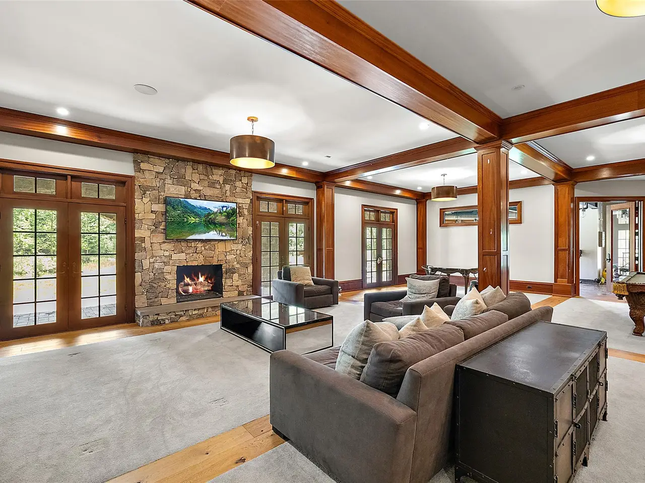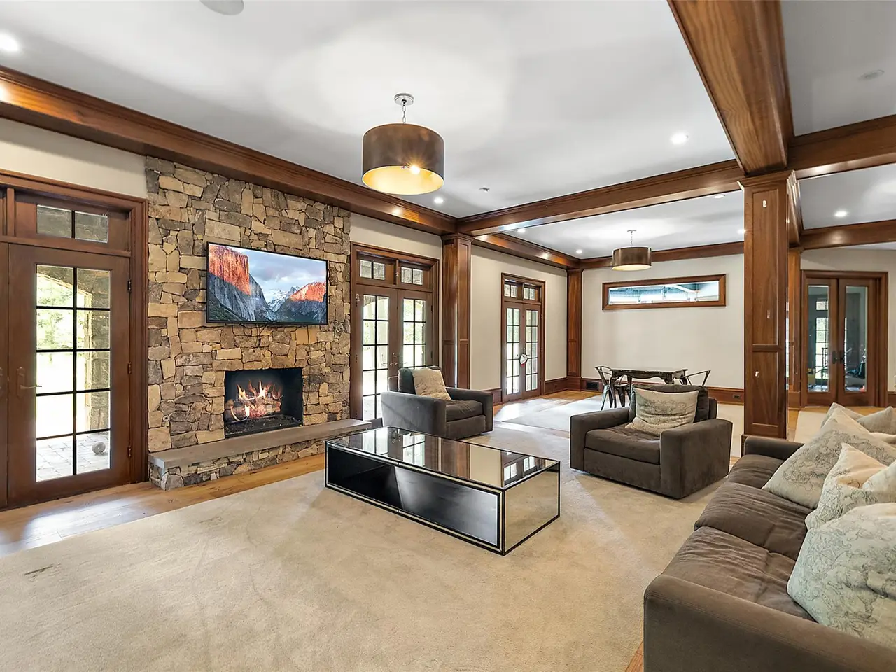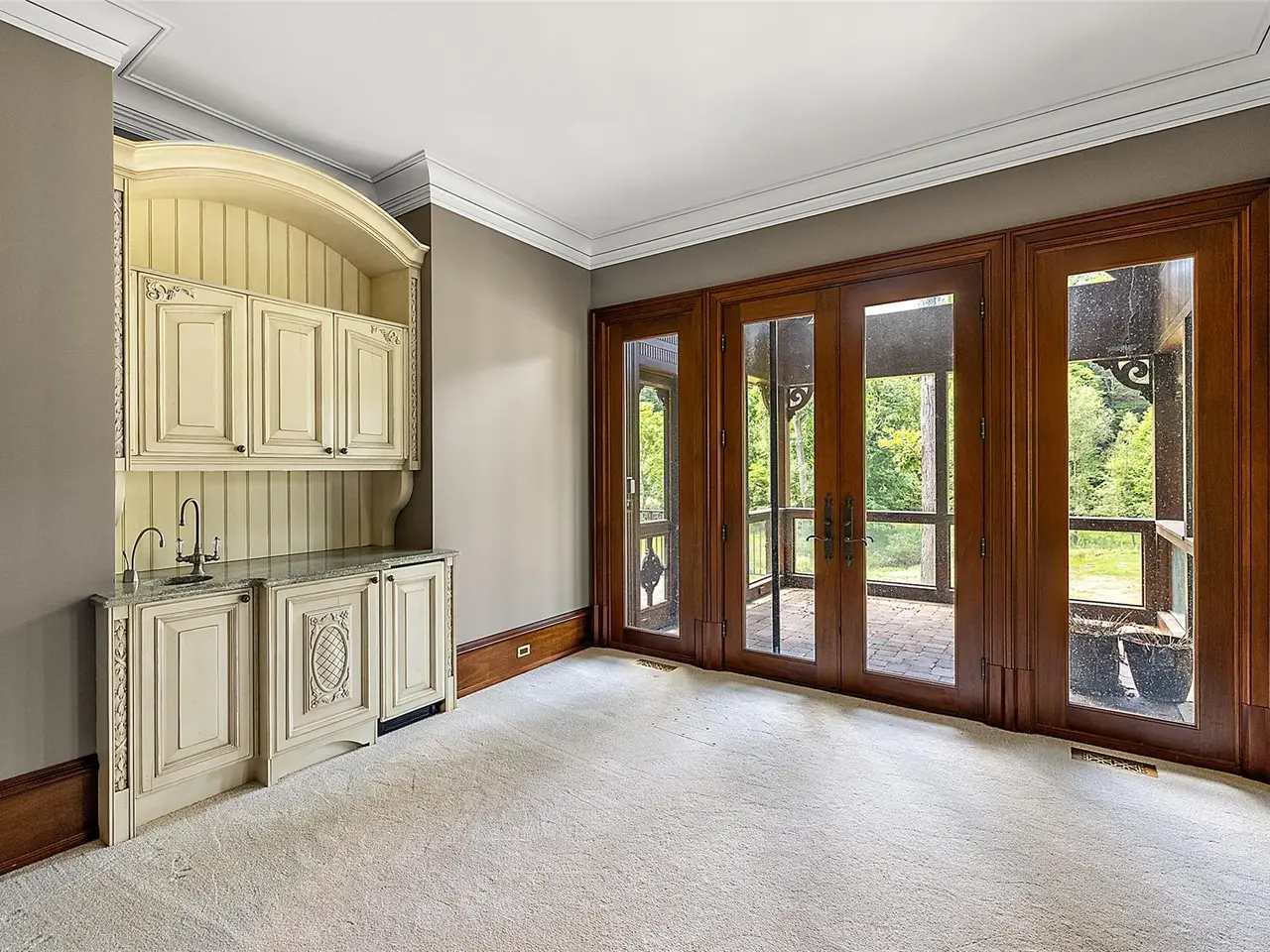 Experience luxury living at this private estate nestled along the Franklin Branch of the Rouge River. Offering over 16,000 square feet of beautifully crafted living space. Nestled on more than 10 serene acres, this property is defined by its tranquil natural surroundings, with the river gracefully winding throughout the grounds. Designed with comfort and grand entertaining in mind, the home features many amenities, including a state-of-the-art theater room and a two-story library, complete with a spiral staircase and exceptional millwork. Intricate moldings and custom woodwork are showcased throughout, reflecting superior craftsmanship at every turn. The inviting three-season room provides a peaceful spot to take in the beauty of the property, while the expansive rear patio spans the length of the home, offering panoramic views of the natural landscape. The expansive lower level is an entertainer’s paradise, boasting a huge great room, a fully equipped second kitchen, a custom bar, a stylish powder room, a game room, and a dedicated craft room. An elevator conveniently services all levels of the home. This one-of-a-kind estate offers a rare combination of privacy, elegance, and resort-style amenities in a truly picturesque setting. Recently renovated with fresh paint, new carpeting, and updated decorative features. The space has undergone a transformation.