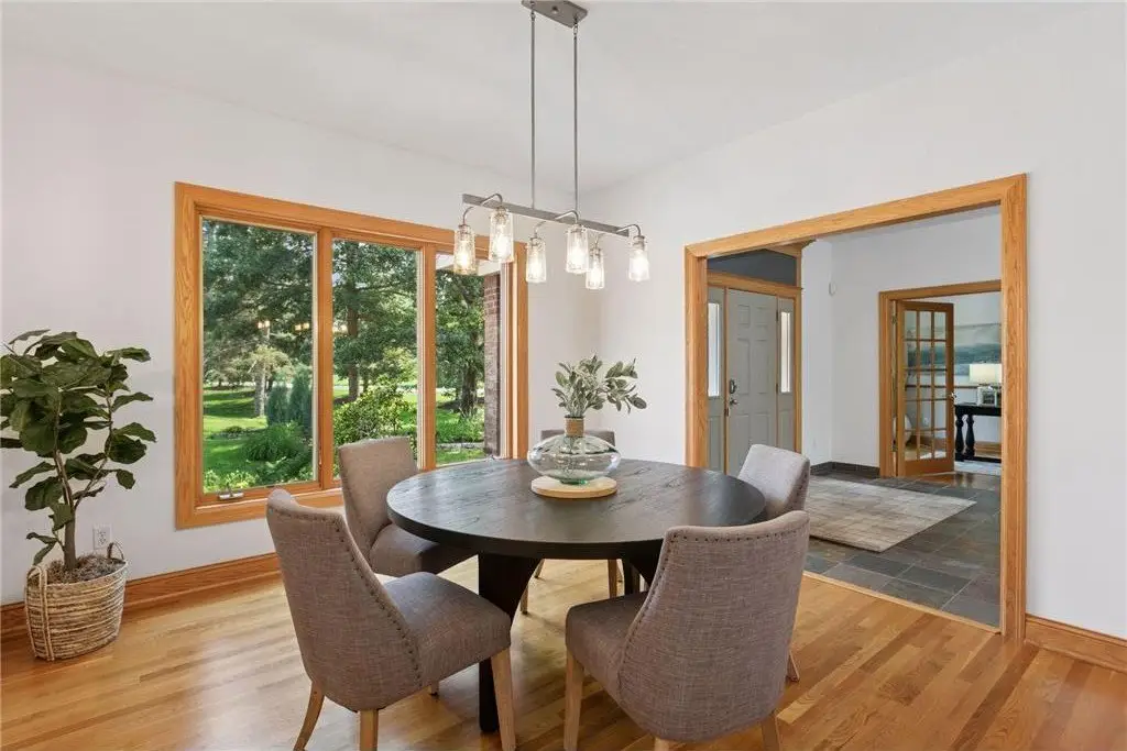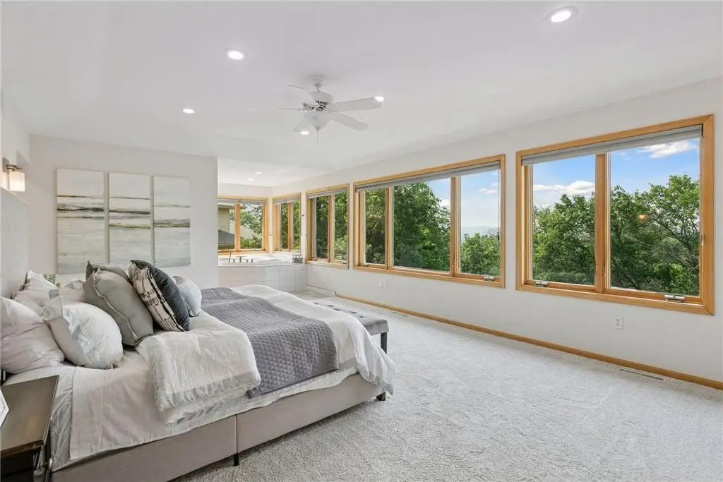 Space, privacy, and natural beauty—without leaving the city behind. This stately one-of-a-kind, custom-built home sits on 3.5 lush, wooded acres perched above the majestic Minnesota River Valley, offering stunning views, sunsets, and total serenity just 20 minutes from downtown Minneapolis. Built in 2001 and recently updated with many new improvements, the home offers an estate-like feel with understated elegance and timeless charm. It features large rooms, high ceilings, and an abundance of natural light and views through walls of oversized, south-facing windows. Inside, watch the oasis of wildlife as the birds fly high and mature trees of the sanctuary blow against the sky. The floorplan is great—efficient, yet flowing, spacious and flexible. The light and bright kitchen is recently updated with gorgeous quartz countertops, a modern backsplash, and new appliances to compliment the Wolf cooktop. The large primary ensuite is fully remodeled with a spa-like Jacuzzi tub, spacious waterfall shower, dual vanity and enormous walk-in closet. The size of the suite and treetop, atmospheric views in the summer and expansive river valley views in the winter make it uniquely special. Cozy up to the dual-sided gas fireplace—there is one on each floor. All bedrooms and laundry are conveniently located on one level. Enjoy peaceful mornings on the sunny deck, unwind in the elevated 3-season porch, or wander the Zen gardens and acreage that is your secluded retreat—or canvas. It’s a huge lot that gives you options—to expand, split, or simply enjoy the abundance of natural space. The backyard is newly fenced, landscaped, and has a freshly poured concrete patio to enjoy the sunshine and beauty with friends and family. This property is truly a private retreat and one of its kind.
