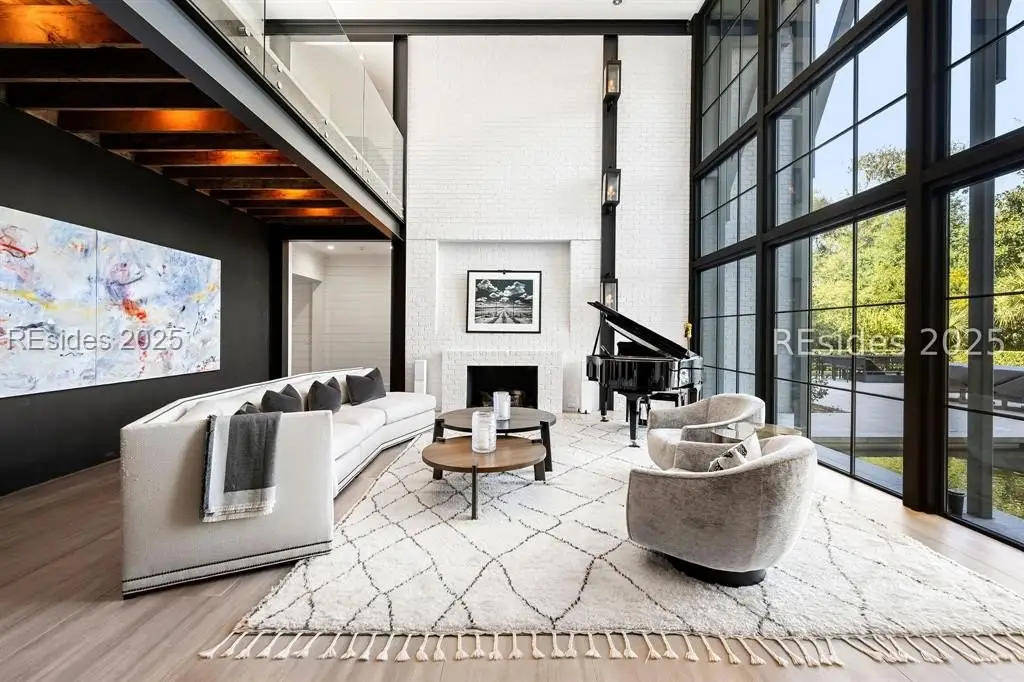 Welcome to 115 Mount Pelia--an award-winning, private oasis tucked on the banks of the May River. With its winding drive and inviting courtyard entrance, including a koi pond, this home welcomes you in with stunning architecture and floor to ceiling windows showcasing the sweeping waterfront views. The main floor features the ultimate chef's kitchen with a large island, work sink and entertaining sink, warming drawers, oversized Wolf range and built-in SubZero refrigerator and freezer. The scullery provides additional work space, sink and refrigerator, while the full back kitchen is stocked with pizza oven, grill, sink, refrigeration and more. Just off the kitchen is a large dining space with fireplace and living space with views of the water. The main floor screened-in porch offers 180 degree views of the May River while featuring additional living and dining space and a fireplace. Also on the main floor, you will find a sprawling primary wing with a large bedroom and spa-like bathroom, both with breathtaking river views, plus a private office. Downstairs provides additional living space with gorgeous views of the water, a game room, a media room, a wine cellar, a large exercise room plus sauna, additional laundry and two guest suites. The screened-in porch that opens to the pool provides even more entertaining space with a dining area, sitting area and fireplace. The large pool is perfect for lounging or laps and the outdoor shower that connects to the indoor half bath provides guests the perfect spot to shower off after a day in the sun.With an additional guest suite over the garage that includes a large sitting area and kitchenette plus a separate guest cottage with an additional bedroom, bathroom and kitchenette, there is plenty of room for family and friends to have space and privacy while they share in the beauty of this property. Don't miss the ultimate Palmetto Bluff retreat in the highly sought-after May River Forest neighborhood!