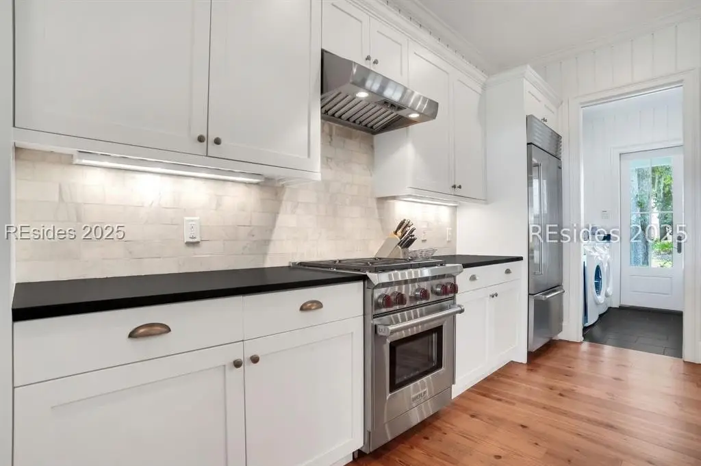 Situated within the heart of Wilson Lawn & Racquet, 5 Rumford Ln presents a Lowcountry-inspired short-term rental cottage comprising four bedrooms, a bonus room, and four bathrooms. The primary living areas exude a cottage-like ambiance, featuring a formal dining area, a brick hearth, and an open kitchen flanked by dual sliding doors. Rich accents of shiplap, Savannah brick, and knotty pine impart a sophisticated visual appeal to these main spaces. The primary suite boasts ample walk-in closets, a private bathroom equipped with a soaking tub and walk-in shower, and a spacious living area. Two full suites are situated on the second floor, along with a third guest or bonus room, and a screened patio provides year-round enjoyment.