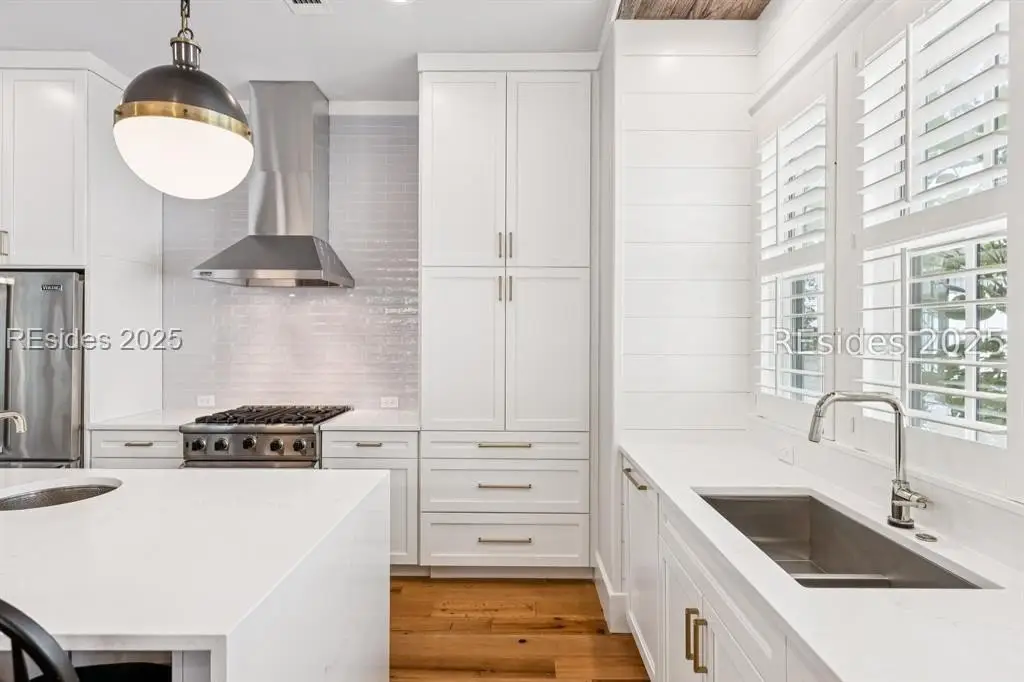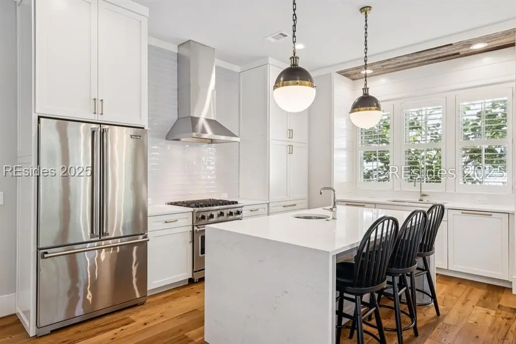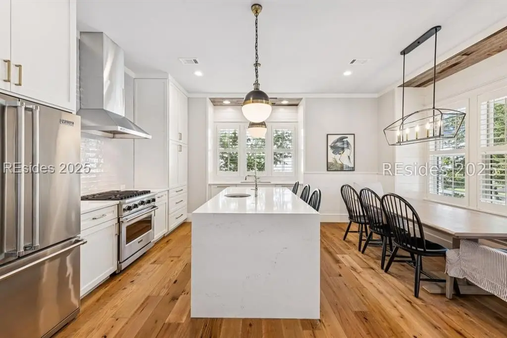 424 Corley Street is a short-term rental eligible, turnkey home in Moreland Village, just one block from the river. With 3 bedrooms, plus a bunkroom, and 3.5 baths in the main house and an additional large guest suite with kitchenette over the garage, there is ample space for friends, family and guests. The large chef's kitchen, sprawling living space, open front porch and screened back porch provide spaces for everyone to relax after enjoying the many activities in Palmetto Bluff. Don't miss this move-in-ready vacation home and income-generating property!