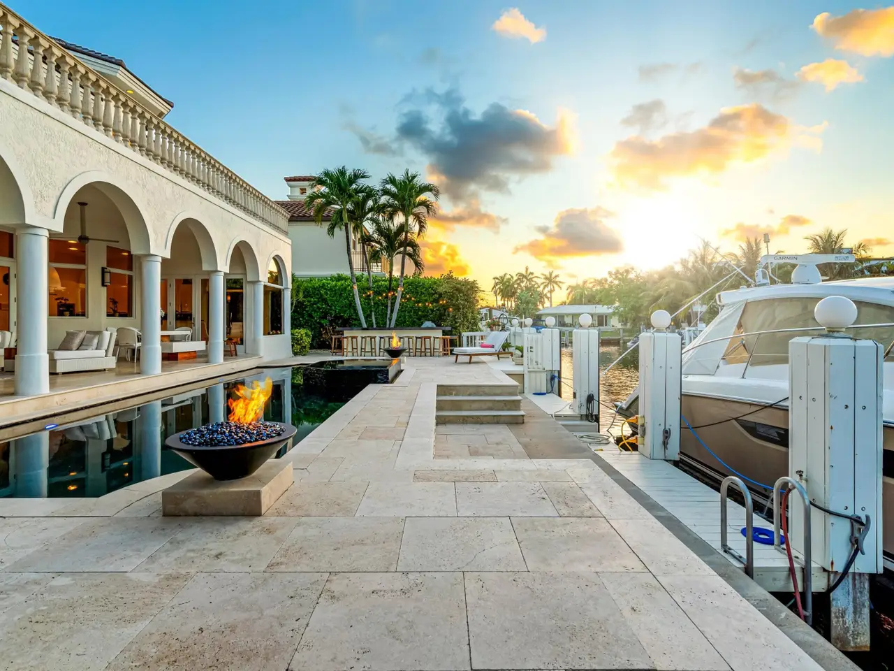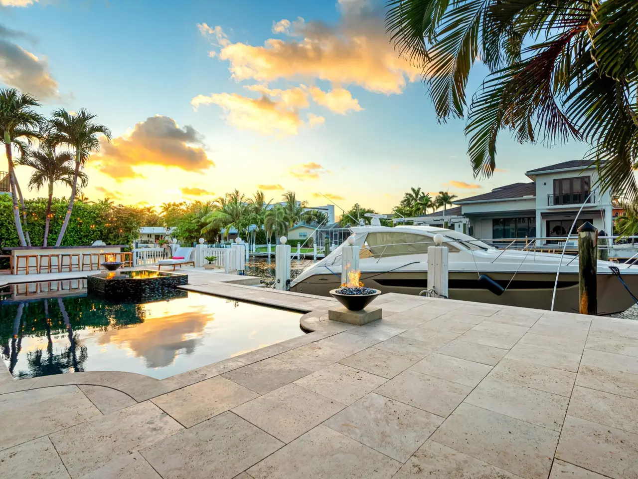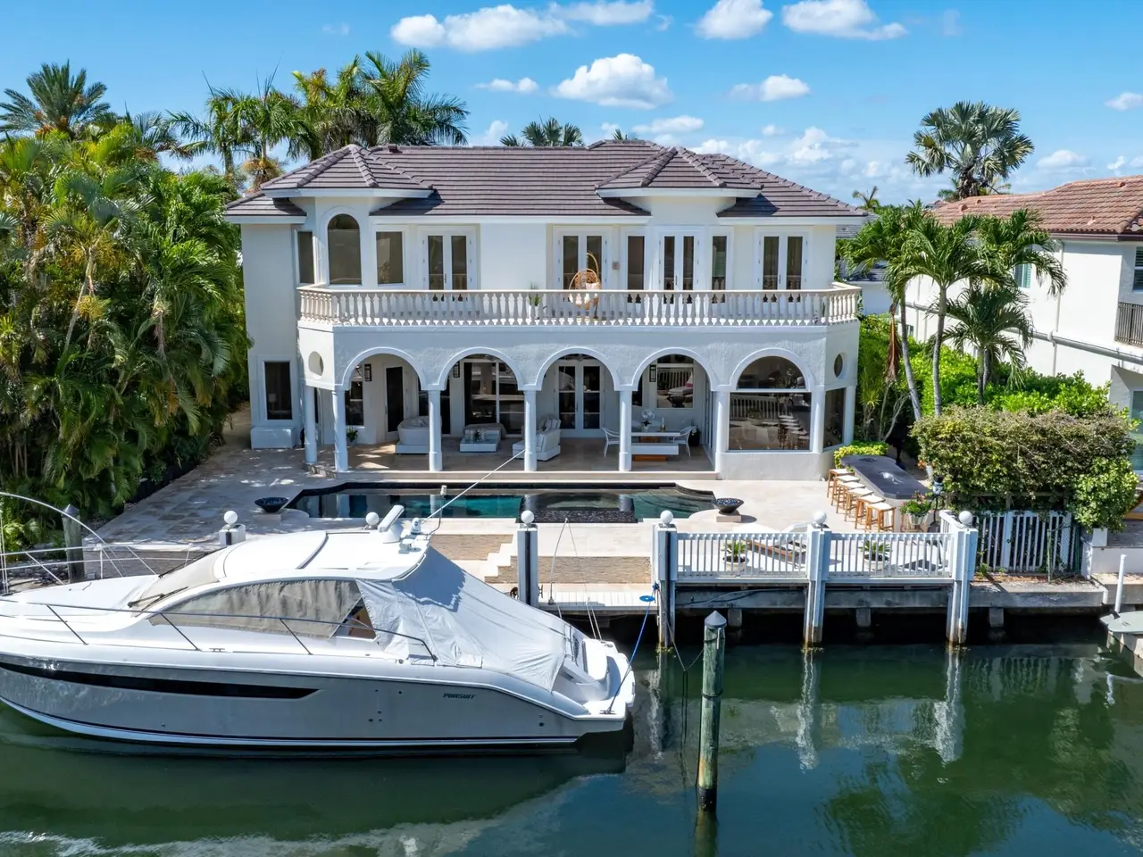Luxe Boca Raton deepwater estate in the desirable Lake Rogers community fronts 80 feet on a deep-water canal with a dock offering easy ocean access, desirable for boaters. Interiors are peerlessly defined by grand architectural adornments, and the magnificent outdoor entertaining area centers on a sun-splashed pool with a spill-over spa bounded by an expansive patio with a wet bar and barbeque area.