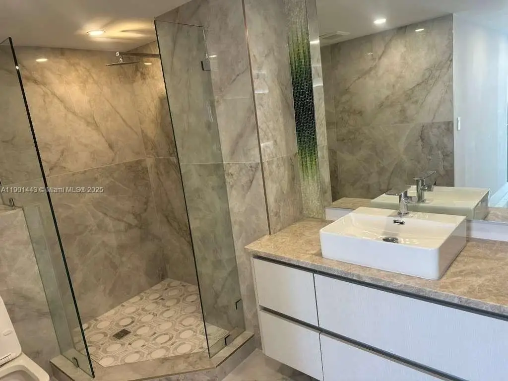 Exquisite oceanfront residence with 2 bedrooms and 2.5 baths, fully renovated and uniquely designed with impeccable detail. Spanning 1,900 sq. ft., this luxurious home is located in Sabal Point, a boutique building of only 70 units featuring a saltwater pool and private beach access. The custom kitchen showcases Thermador appliances, quartzite lit up counter tops , wine cooler, and artistic glass accents. The living and dining areas boast elegant ceiling LED lighting, designer finishes, and a stunning Custom Glass fireplace wall. Both bedrooms feature custom closets, glass doors, and spa-inspired baths with European fixtures. Recent building upgrades include concrete restoration, new roof, glass railings, impact windows, and a chic modern lobby.