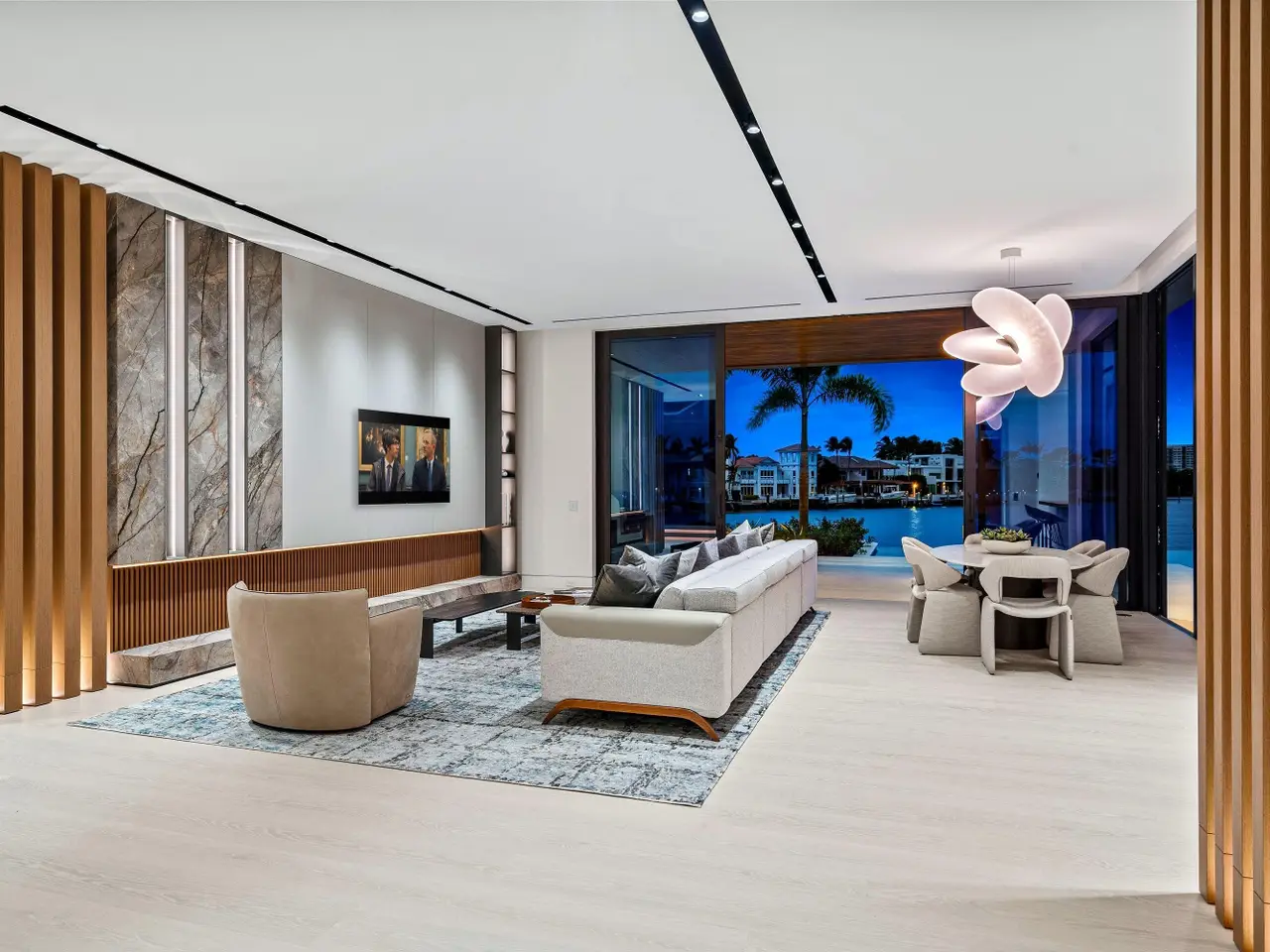 New Orchid Point Intracoastal estate sited on 230 +/- feet of waterfrontage with side protected yacht dockage in a ''no wake zone'' capturing stunning panoramic views by Jag Development, In-Site Design Group & interiors by Farache Bromberg Design Studio. Front Row views blend with modern architecture from all major rooms include floor/ceiling window walls, bleached oak flooring and organic wood detailing. Primary suite boasts a sitting room, Spa-like bath, dual boutique closest and waterfront covered balcony. Resort-like entertainment patio with infinity-edge pool/spa, sun shelf and lanai with summer kitchen. Other amenities include a new home built above required FEMA elevation. 230'+/- of newly constructed seawall & cap with new 80'+/- concrete dock. an expansive auto plaza and three-bay garage.