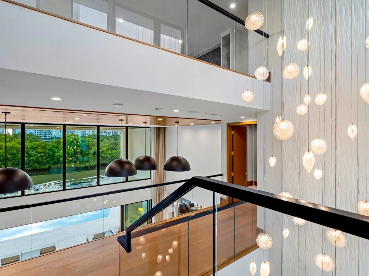 ''New'' Modern Malibu-inspired Sanctuary Point Estate sets the stage for this Sanctuary point estate with approximately 170 feet of wraparound protected waterfrontage by award-winning team of Stephen Albanese Builders, Quinn Miklos Architects and Marc-Michaels Interior Design. Epic foyer entrance with architectural staircase ascending up three levels opens to this glass encased estate with all major rooms facing either the waterway, tranquil bird preserve and Intracoastal waterway. South wing Primary suite includes dual baths and wardrobes, lounge, separate exercise room and waterfront balcony. Resort-like pool/spa and patio with expansion entertainment lanai with summer kitchen and cabana. Other amenities include a club room with separate office, 3rd level game room, wine room, elevator and 3.5-bay garage.