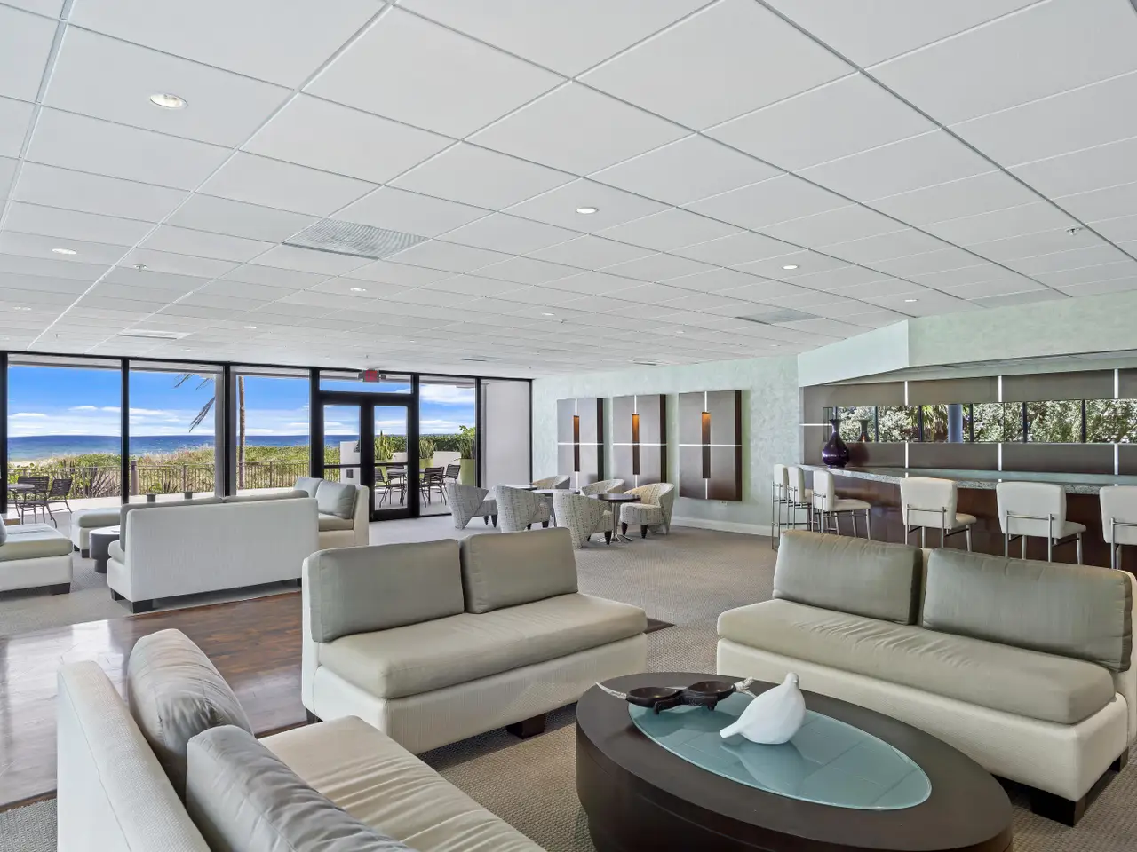 Newly remodeled oceanfront gem! Semi-private elevator foyer opens into spectacular ocean views. Spacious gourmet kitchen overlooks the sand with custom cabinetry, quartz countertops, stainless appliances including wine refrigeration and ample storage. Eat-in breakfast nook. Large great room with impact-rated glass windows and doors that open to a large oceanfront balcony. The primary suite overlooks city views with a newly designed luxe primary bath and custom-fitted closet. The second sunset view bedroom also features a custom closet. Placide is a newly updated boutique oceanfront building with an ocean view pool and direct access to miles of wide sandy beaches. Beautiful club room, fitness center and crisp contemporary lobby with doorman.