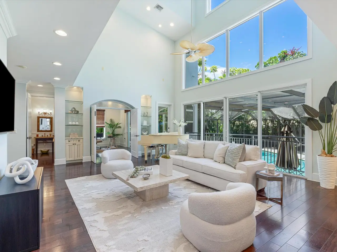 Swimmer's Dream Meets Artist's Retreat - Rare Custom Home in East Boca Raton. This beautiful two-story home inspires creativity, celebrates Florida living, and offers unique features in a one-of-a-kind Key West-style custom home. Located on a peaceful waterfront lot in East Boca Raton, this elegant two-story residence is designed for both function and flair, with thoughtful spaces and architectural details throughout. The home was crafted to be open, inviting, and joyful. At the center of it all is a fully screened, lap pool with a rare 9-foot deep end, a true swimmer's paradise. Whether you love to dive, swim laps, or host unforgettable pool parties, this pool is a feature you simply can't recreate today.