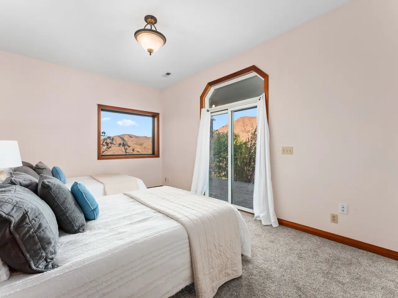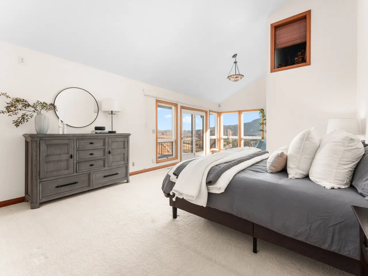 Main-level master suite with balcony