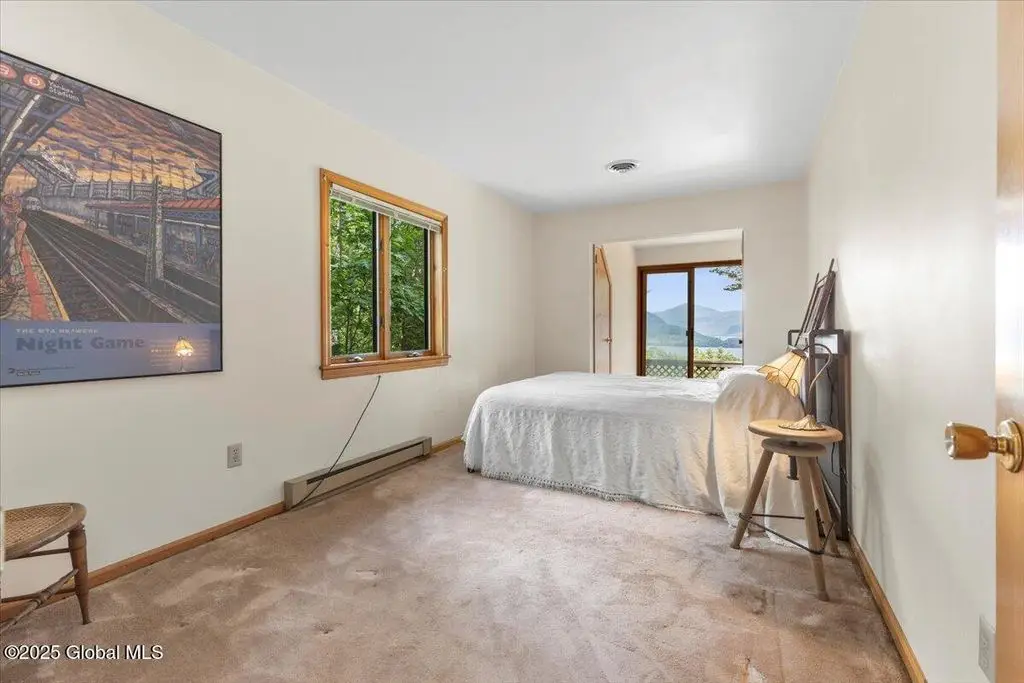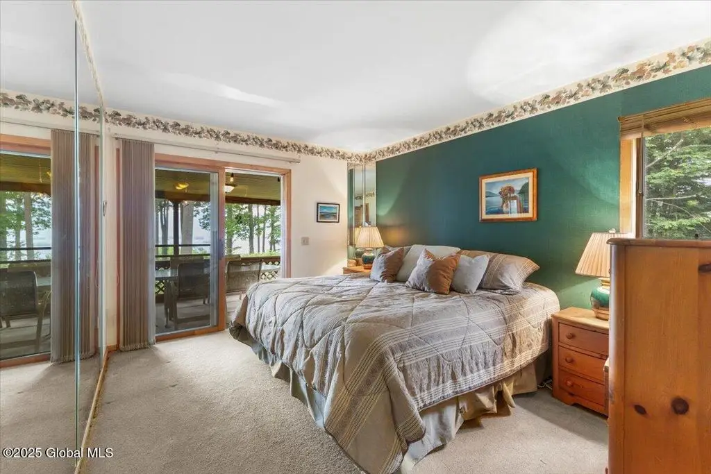 Enjoy sweeping views of Lake George, Tongue Mountain, and The Narrows from this beautiful home in the private Woodland Ridge community, where no short-term rentals are allowed and peace of mind comes standard. Located under a mile from beautiful Bolton Landing's shops, restaurants, and beaches, this home blends convenience with quiet, year-round living. The main floor features a lakeview primary suite, Vermont Castings gas fireplace, and a screened porch perfect for morning coffee or evening unwinding. Upstairs, two additional bedrooms open to a spacious second-floor deck with even more lake views. Geothermal heating ensures efficiency and comfort, while high-speed internet allows you to work from home without sacrificing the view. Whole home generator & low taxes. This is a must see!!