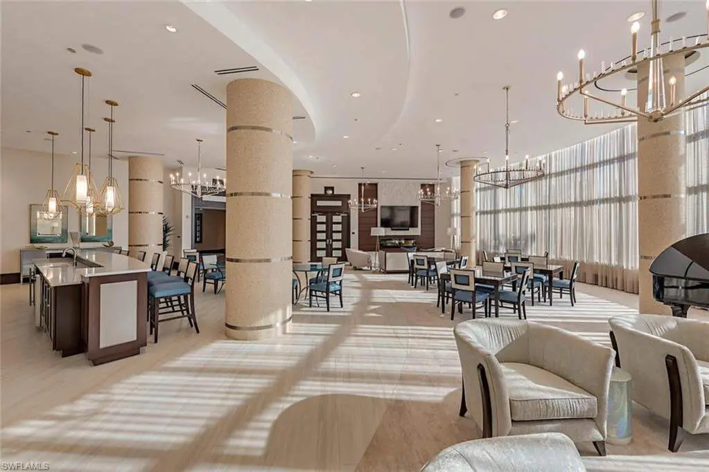 Azure is one of Bonita Bay's finest luxury high-rises situated on a premier site next to Estero Bay Park. This corner residence with 3 ensuite bathrooms, with 2 built-out walk in closets, plus den and has a beautifully appointed private elevator entry foyer. 270-degree floor to ceiling windows provide views of sunrise and sunsets over the gulf, bay, lake, and golf courses. This spacious floor plan with 10' ceilings and chef's kitchen with gas stove top, makes entertaining friends and family a pleasure. Superb finishes typical of this price range were selected and coordinated by the owner. PRIVATE ENCLOSED TWO CAR GARAGE. Azure offers updated communal areas, live-in manager, 2 guest suites, fitness & massage room, club & card room. saltwater pool, spa, two fire pits, covered screened social area with outside grilling. Bonita Bay has 5 golf courses, 18 court tennis, 18,000 sf. fitness, 8,000 sf. Lifestyle spa & salon, full-service marina, Gulf front beach park, 5 restaurants, 10 pickle ball courts, crochet, bocce ball, canoeing, Life Enrichment Center & 3 parks.