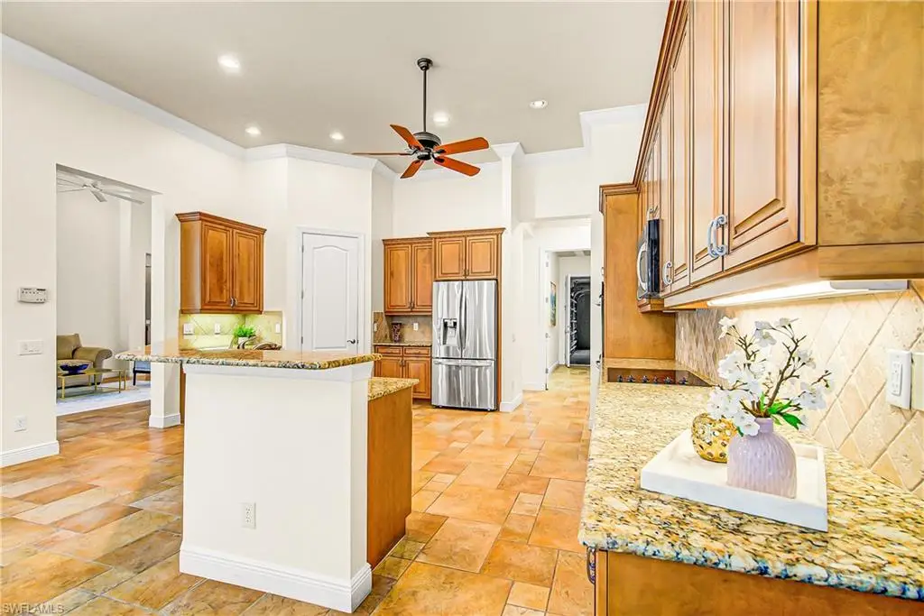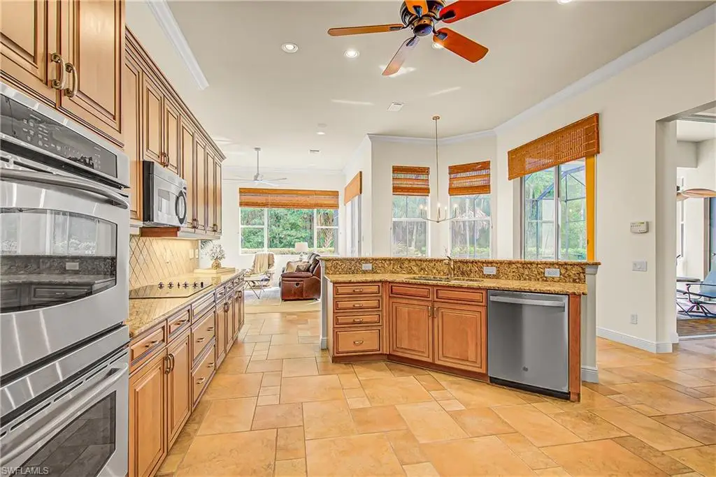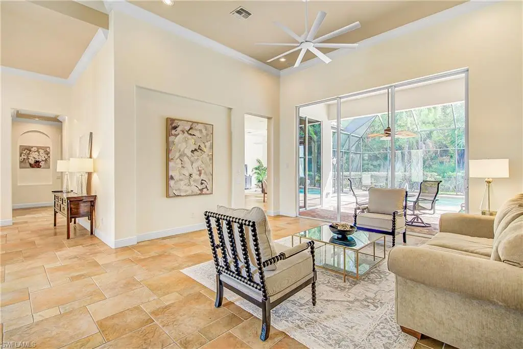 Live the Florida dream in amenity-rich Vasari Country Club! Renowned for its lush landscaping and welcoming neighbors, Vasari offers immediate membership to championship golf, active tennis, a lively bocce league, bustling card rooms, dining options, and pickleball coming soon. The community is known for its vibrant social scene and resort-style lifestyle. At the end of prestigious Arezzo's cul-de-sac, discover this 3,000 sq. ft. estate home featuring 3 bedrooms + 3 baths, den/office, 3-car garage, formal dining, living room, and family room, a layout ideal for entertaining. The light-filled design showcases soaring ceilings, new lighting, and an open kitchen with pantry. The split-bedroom plan ensures privacy, with the primary suite on one side and two guest rooms with their own baths on the other. The primary suite is a true retreat with two large custom walk-in closets, dual vanities, soaking tub, and private access to the pool. Step outside to your private oasis with pool, spa, and a serene natural backdrop. Additional highlights include a new roof and end-of-street privacy. This home combines elegance and functionality with room to make it your ownùall within one of Southwest FloridaÆs premier bundled golf communities. Perfectly positioned near white-sand Gulf beaches, vibrant downtown Naples, RSW airport, and I-75, it delivers an exceptional lifestyle in an unbeatable location.