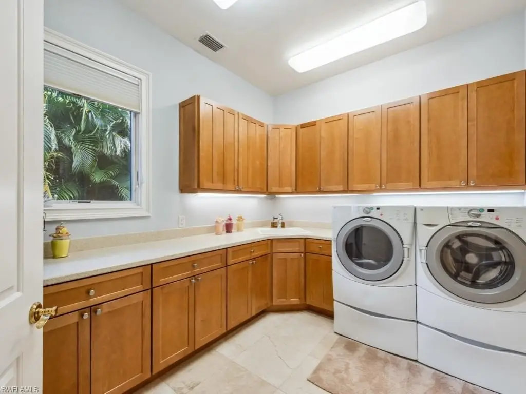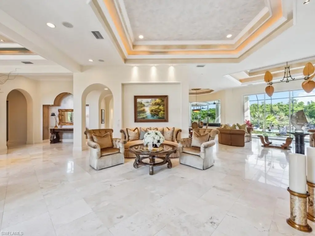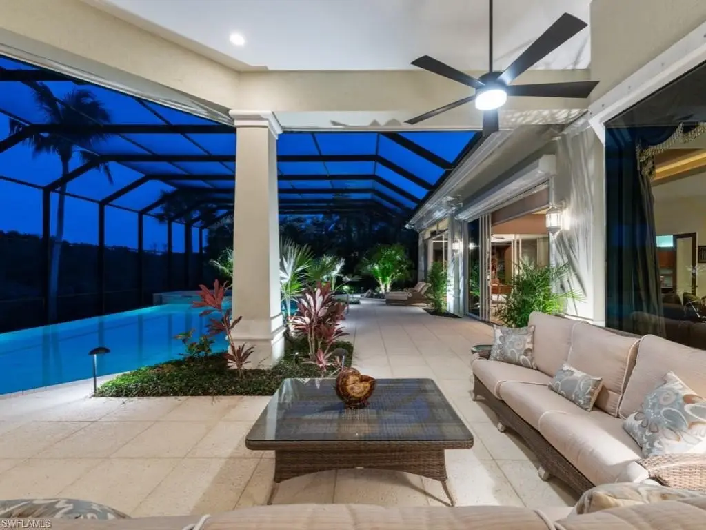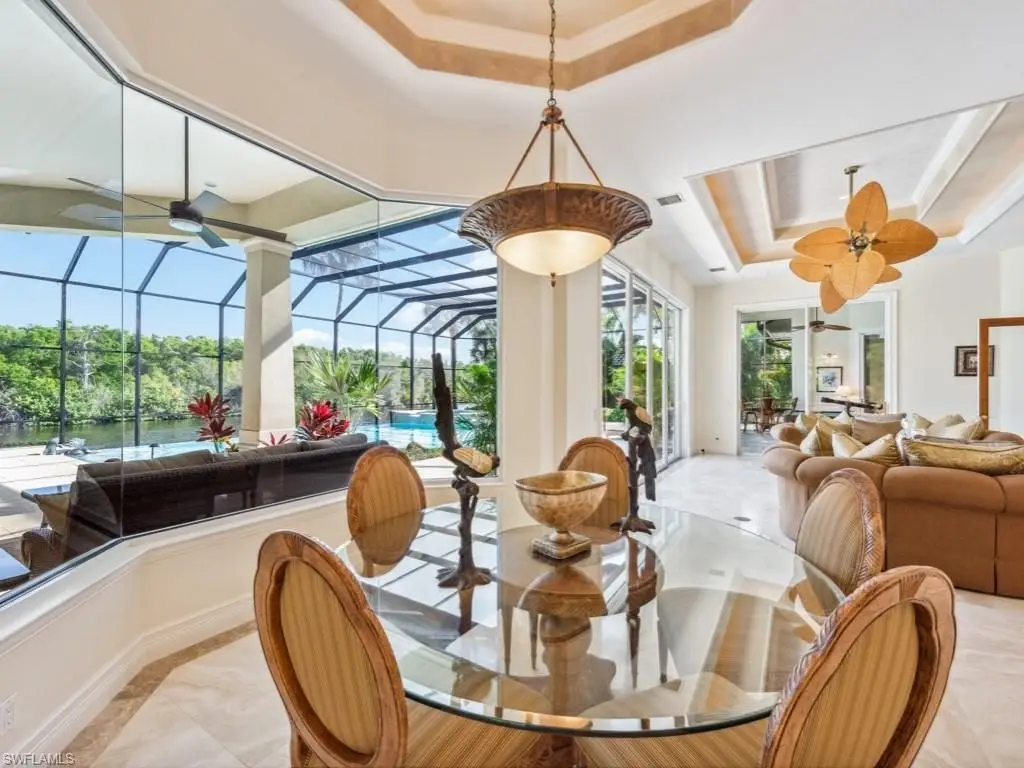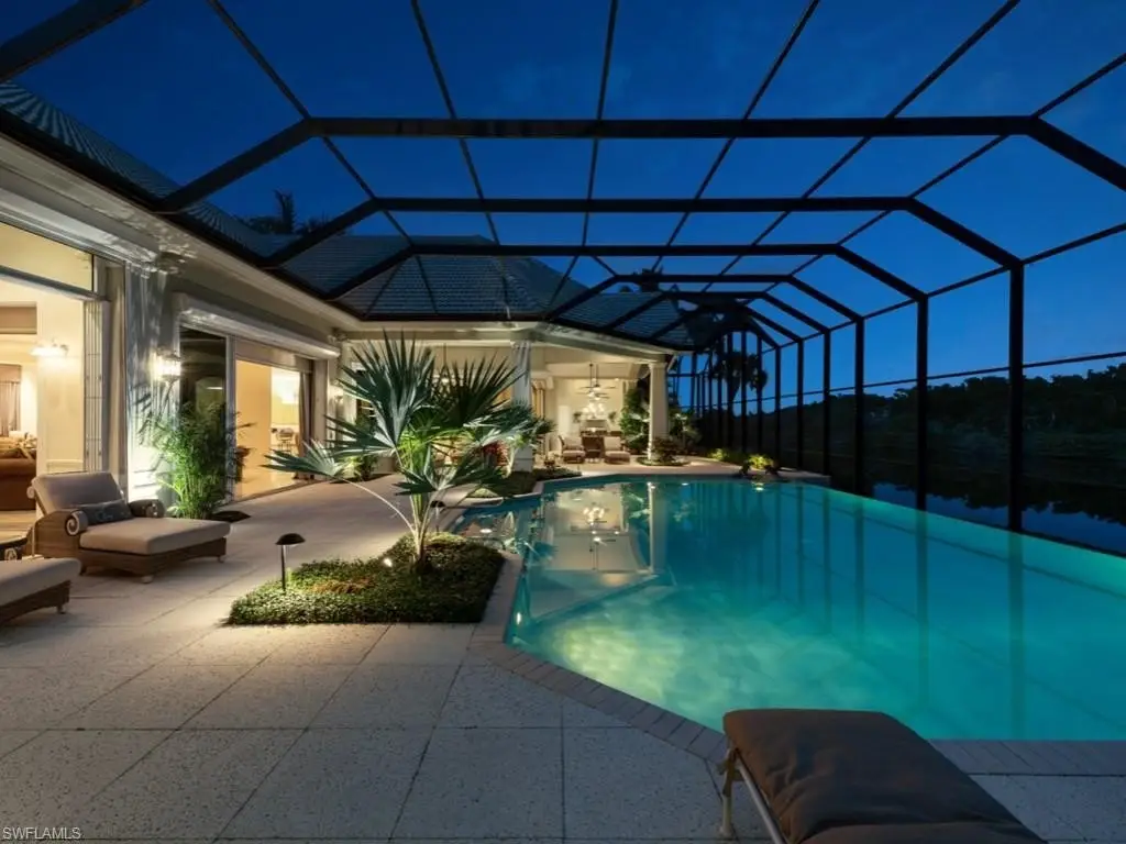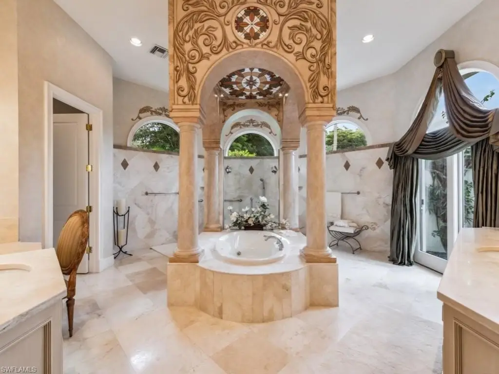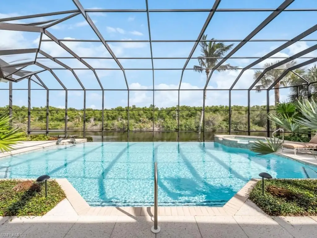 Welcome to this magnificent estate home in the highly desirable Baywoods neighborhood of Bonita Bay, where stunning water views surround you. The expansive infinity pool seamlessly disappears into the serene lake and nature preserve at the rear of the property. This exceptional home boasts 6,700 sq. ft. of air-conditioned living space, featuring an oversized circular driveway and a spacious three-car garage. Inside, you’ll find four generous bedrooms, four full bathrooms, and one half bath. The formal office offers panoramic views, complemented by a second, smaller office in the primary suite. Enjoy entertaining in the billiard/Florida room with a large wet bar also overlooking the pool and lake beyond. The first-floor primary suite is a true retreat, complete with a cozy sitting area and breathtaking lake views. The primary bath features a luxurious soaking tub, his and her vanities, and ample closet space. The fourth bedroom/loft area is ideal for guests complete with a sitting area, kitchenette and private en-suite bath. Step outside to discover expansive outdoor living areas, perfect for dining and lounging, including an outdoor kitchen and bar area, all under a spacious screened lanai. Safety is paramount with full hurricane protection for all windows and doors. NEW ROOF in June 2024. Newly painted interior and exterior, plus a brand-new 2025 primary water heater, provide turn-key peace of mind. As a resident of Bonita Bay, you'll enjoy exclusive access to a wealth of amenities including a private beach park, the popular Backwater Jack's Restaurant, and several community parks. Riverwalk Park offers a kayak, canoe, and boat launch, along with pickleball and tennis courts for active living. For golf enthusiasts, there’s an opportunity to join the Country Club, which boasts five championship golf courses, a sports/racquet center with a resort-style pool, and a state-of-the-art fitness facility, along with a luxury spa and salon. Don't miss your chance to own this exceptional property in one of Bonita Bay's most sought-after neighborhoods, where luxury living meets nature’s beauty. Schedule your private tour today!