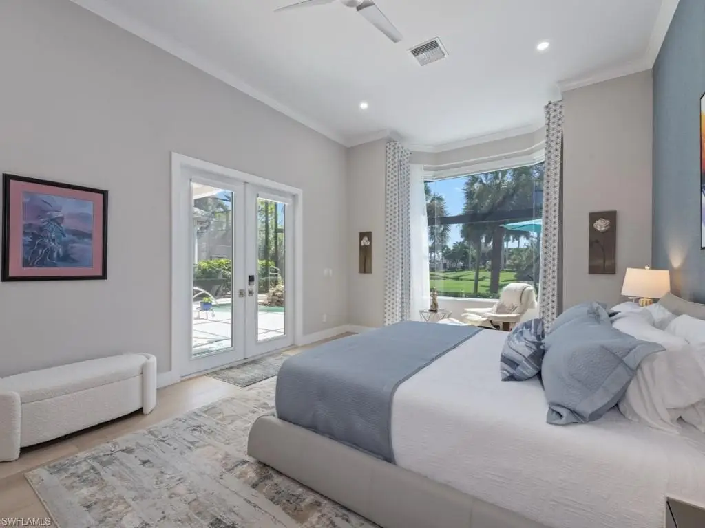 Framed by sweeping fairways and calming waters, this Coconut Isle residence pairs timeless design with today’s most sought-after luxuries. The chef-inspired kitchen is the heart of the home, crafted for both culinary creativity and stylish entertaining. Outfitted with custom Florida Design Cabinetry, quartz and quartzite surfaces, hidden outlets, soft-close cabinetry with slide-outs, and a full suite of premium appliances, it balances elegance with practicality. A dedicated wine cooler and motion-lit pantry elevate the experience even further. The primary living and dining space seamlessly extend outdoors through new impact glass sliders with a discreet motorized no-see-em screen, connecting to a lanai that showcases the true spirit of Southwest Florida living. With its picture window cage, saltwater pool and spa, and iAquaLink smart controls, this outdoor sanctuary is designed for both peaceful mornings and lively gatherings. The primary suite is a private retreat of thoughtful luxury. From motorized blackout shades and a custom closet with built-ins and a safe, to the spa-like bathroom featuring an expansive walk-through shower, floating cabinetry with soft lighting, heated towel rack, and built-in medicine cabinets with charging ports, every detail has been carefully curated for comfort and convenience. Two additional guest suites each offer beautifully renovated baths with lighted mirrors, tiled showers, and modern barn doors, ensuring visitors enjoy the same refined lifestyle. The versatile bonus den/office, complete with access to a full bathroom, provides the flexibility to function as a home office, creative retreat, or even a spacious spare bedroom when needed. A redesigned laundry room and climate-controlled garage—complete with EV charger, battery backup power supply, epoxy flooring, and Mitsubishi mini split—bring unmatched practicality to everyday living. Beyond the walls, peace of mind comes from extensive updates: a newer roof (2019), dual new AC units (2023) with air purification, hurricane-impact doors, Wi-Fi locks, surge protection, and full smart-home integration. As a resident of Bonita Bay, you'll enjoy exclusive access to a wealth of amenities including a private beach park, the popular Backwater Jack's Restaurant, and several community parks. Riverwalk Park offers a kayak, canoe, and boat launch, along with pickleball and tennis courts for active living. For golf enthusiasts, there’s an opportunity to join the Country Club, which boasts five championship golf courses, a sports/racquet center with a resort-style pool, and a state-of-the-art fitness facility, along with a luxury spa and salon. Don't miss your chance to own this exceptional property in one of Bonita Bay's most sought-after neighborhoods, where luxury living meets nature’s beauty. Schedule your private tour today!