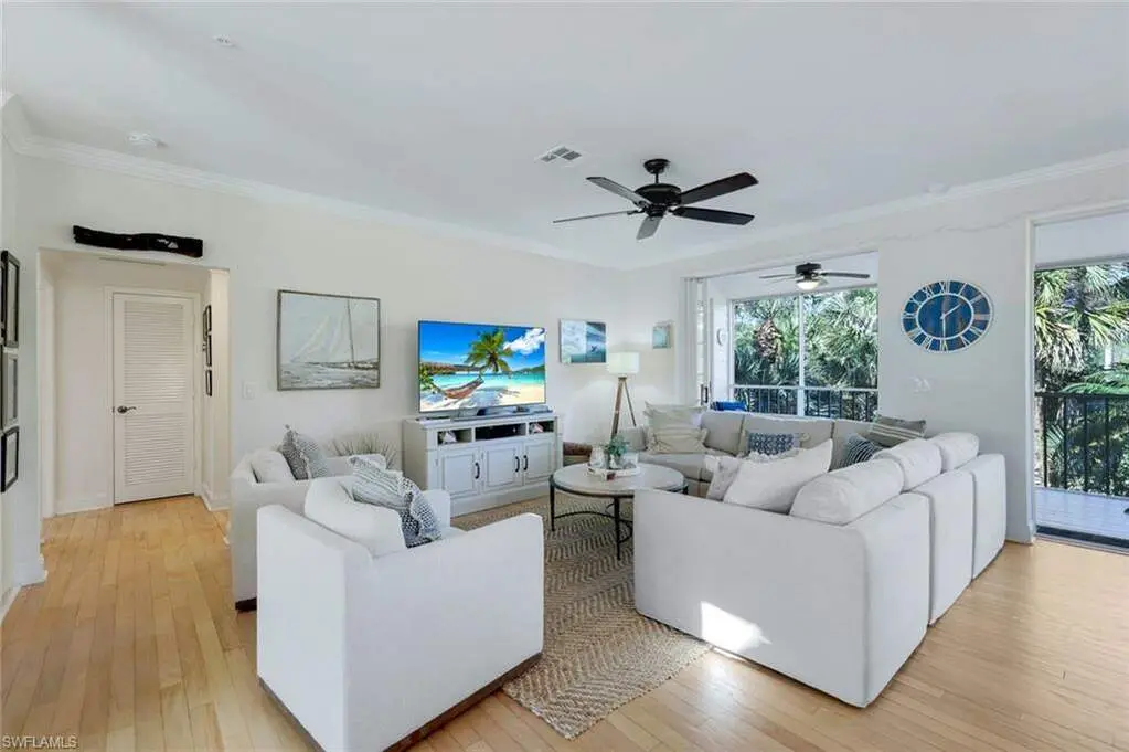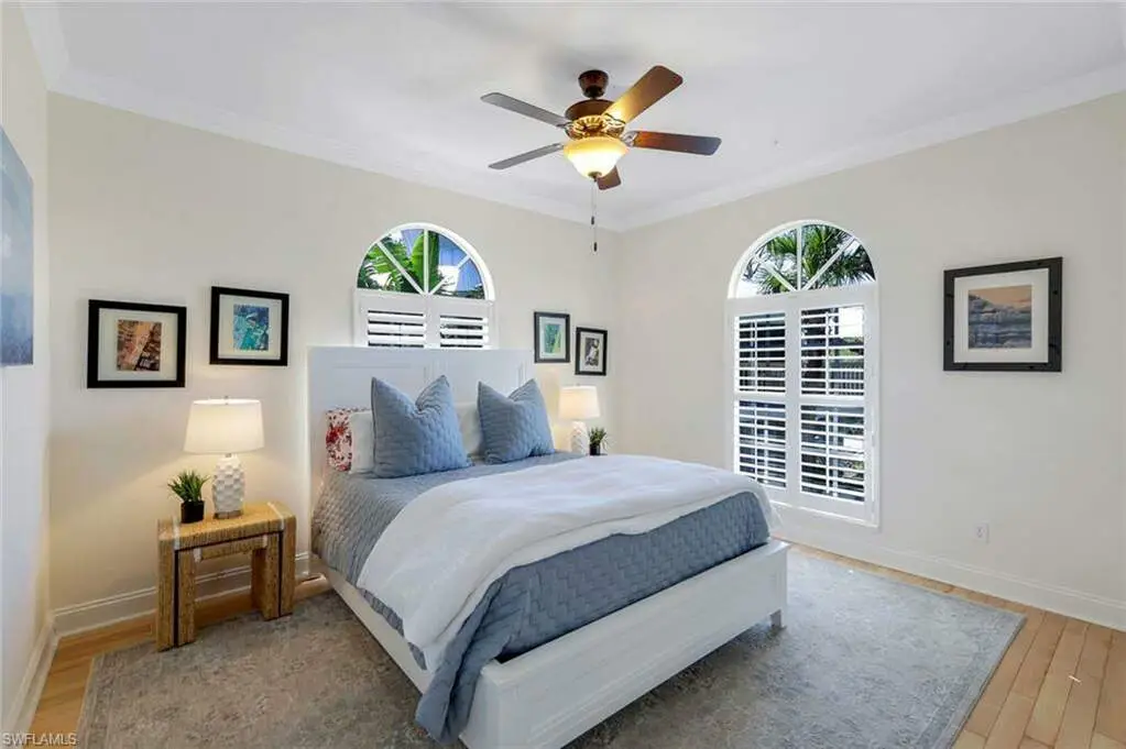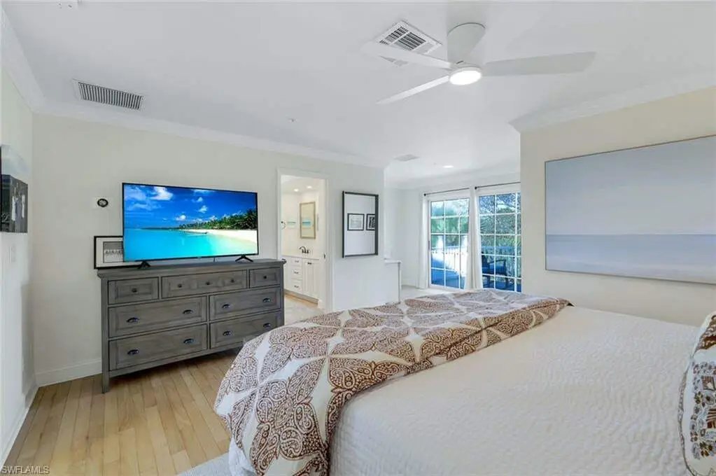 Nestled in the serene and tropical setting of Bonita Bay's Cracker Cove, this charming two-story home exudes tranquility and relaxation. Designed for comfortable living and entertaining, the property boasts a large L-shaped open deck, metal roof, 2 car garages, paved driveway, electric hurricane shutters and is situated on a quiet cul-de-sac. The open floor plan features wood flooring throughout, plantation shutters, screened-in lanai offers double sliding doors to welcome the outdoors inside filling the home with abundant natural light. The kitchen features SS appliances, breakfast bar, quartz countertops, pantry, with additional walk-in storage room, and is open to the dining and living areas. The inviting primary suite offers an elegant bath, a sitting area with extra room for a desk, a bonus storage closet and an outdoor sun deck to bask in the warm sunshine. The split floor plan offers total privacy for guests. Access to the close by community pool and spa further enhances the relaxed lifestyle this home offers. There is so much to enjoy at Bonita Bay including a private beach club, beach shuttle, walking/jogging trails, dog park, marina, waterfront restaurant, tennis, and golf with separate membership purchase and so much more creating a seamless blend of luxury and leisure. Come and enjoy life at Cracker Cove!