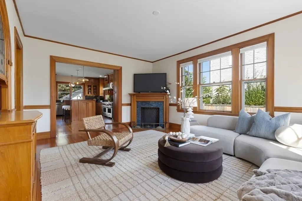 Fall in love with this elegant 11-room Victorian in one of BostonÆs most sought-after neighborhoods! Blending timeless charm with modern updates. This home features soaring ceilings, natural woodwork, leaded glass with front and morning staircases. Open layout includes a large chefÆs kitchen that flows into the living room with fireplace/ built-ins and open dining room w/built inùperfect for entertaining. Sun-filled sitting room with fireplace, family room with access to screened porch, and half bath complete the first floor. Upstairs offers 5 spacious bedrooms, 1.5 baths, home office, and ample storage. Professional luxury/landscaping design, premium sized lot, 2-car garage, deck, bluestone patio and an of abundant natural light throughout this special property.