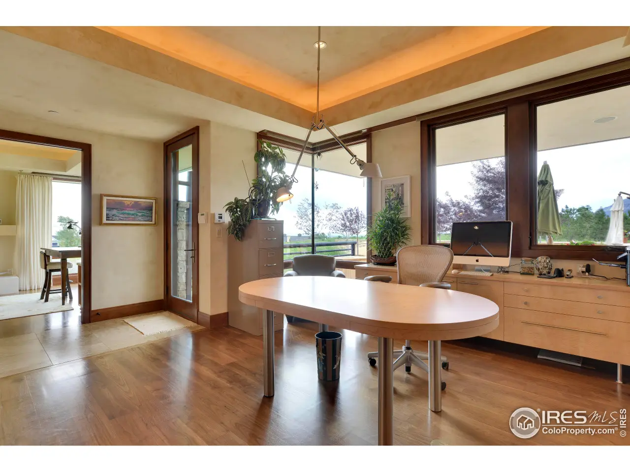 One of the premier residences on Colorado's Front Range. Inspired five-acre setting nestled against the foothills yet just blocks from restaurants, bakery, coffee shops. Sweeping views throughout this dramatic 8,700 square foot home. No expense spared - built by Tim Harrington, arguably the preeminent builder of Boulder's finest homes. Four limestone fireplaces, custom millwork, venetian plaster walls, travertine and walnut floors, and state-of-the-art systems throughout. Chef's kitchen with double islands, walk-in and butler pantries, Wolf and Sub-Zero appliances, Miele coffee. Exquisite primary retreat with postcard views, striking fireplace, onyx and marble bath. Resort-like amenities redefine outdoor luxury - 90-foot lap pool and hot tub surrounded by 100-foot-long stone deck, al fresco Viking kitchen, water features, terraced lawns, fire pit. Three-car garage plus six-car show garage. Blending naturally with the adjacent foothills - gated and private for tranquil seclusion.