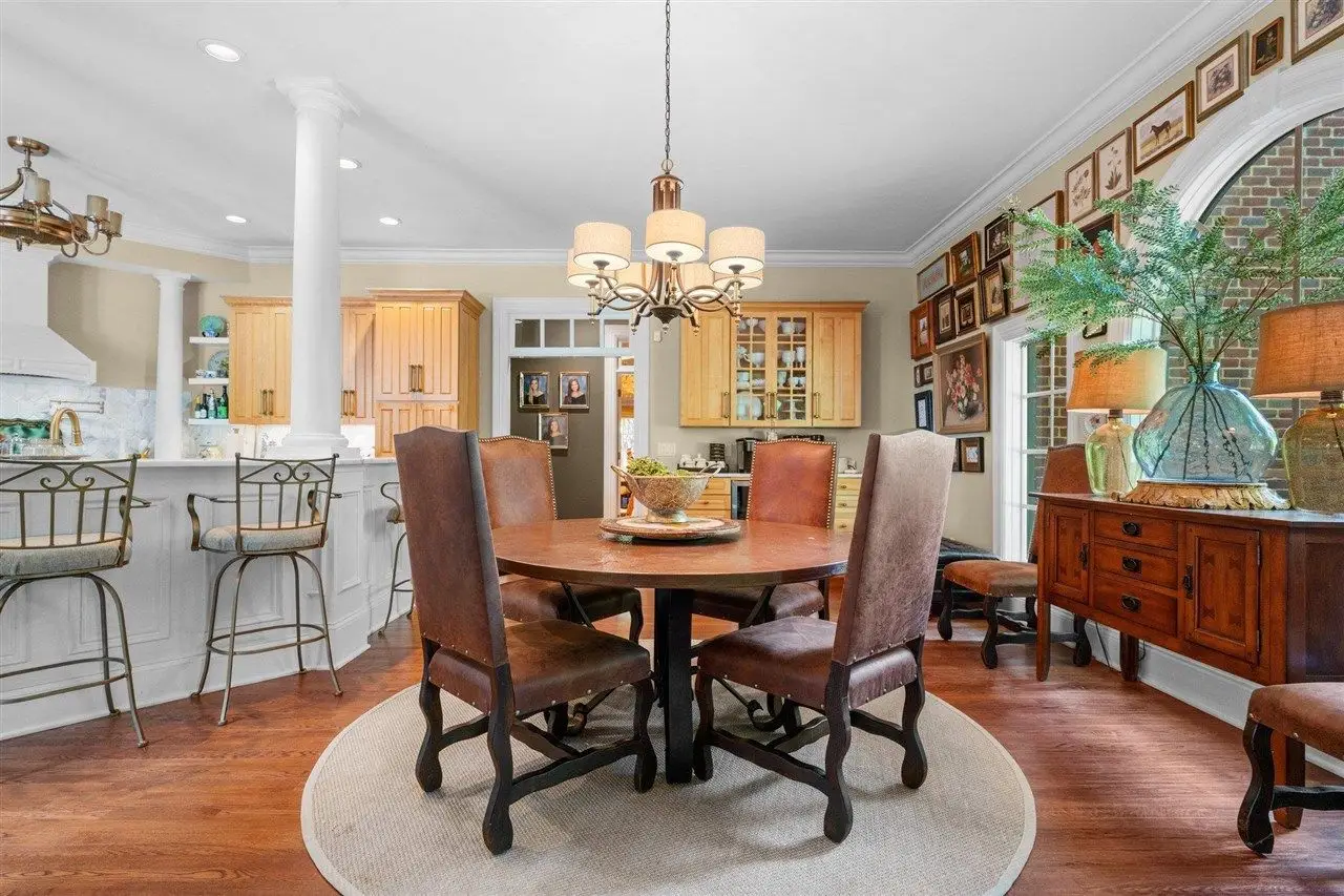 Step into luxury with this stunning executive home, nestled in a prestigious gated community. Boasting over 5000 sq ft of refined living space, this brick masterpiece offers 2 living areas and 4 spacious bedrooms, each with their own private bath. The expansive primary suite features a spa-like bathroom and 2 generous walk-in closets. At the heart of the home is a chef's dream of a kitchen, equipped with high-end appliances, and plenty of space for culinary creativity. Enjoy movie nights in the dedicated media/bonus room, or relax outside in the backyard oasis, complete with a heated saltwater pool and beautifully designed patio. A workshop off of the 3 car garage provides the perfect space for hobbies or extra storage, while a storm shelter offers added peace of mind. With numerous recent updates throughout, this exceptional property combines elegance, function, and security, making it a rare find in today's market.