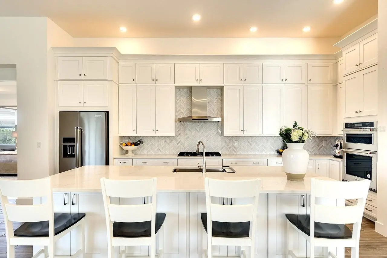 You'll be Wowed from the moment you walk in! This 3-bedroom, 3-bathroom home spans 3,022 square feet and is located on an oversized lot with picturesque views of a serene preserve, offering privacy and a stunning natural backdrop. Ceramic tile floors run throughout the home, creating a cohesive and low-maintenance living space. The expanded great room and dining room features beautiful, coffered ceilings with shiplap and beams, adding a touch of architectural elegance, while designer chandeliers enhance the sophistication of both the great room and dining area. The alternate kitchen layout is a chef's dream, featuring sleek quartz countertops and marble backsplash, 5 burner gas stove, walk-in pantry and a spacious design perfect for entertaining. A tankless water heater and hurricane impact windows and doors provide modern efficiency and peace of mind. A central vacuum system is built in which is designed to make household chores easier. The primary suite is a luxurious retreat with a large walk-in closet and a spa-like bathroom, featuring recessed shower niche, rain shower head, as well as standard shower fixture and dual sinks. The second bedroom offers an en-suite bathroom, ideal for guests or family members seeking comfort and privacy. A home office with a view of the preserve provides a tranquil space for work or relaxation. Outdoor living is exceptional with a welcoming front porch, a screened-in back porch for year-round enjoyment, and a fully equipped outdoor kitchen perfect for entertaining featuring a grill, refrigerator, sink and a tranquil view of the pond and preserve. Located in an amenity -rich community, residents of The Isles at Lakewood Ranch enjoy access to a resort-style pool, along with lap lanes, clubhouse, fitness center, tennis and pickleball courts, and scenic walking and biking trails. This exceptional residence seamlessly blends luxury, functionality and natural beauty, offering an unparalleled lifestyle in a truly breathtaking setting.