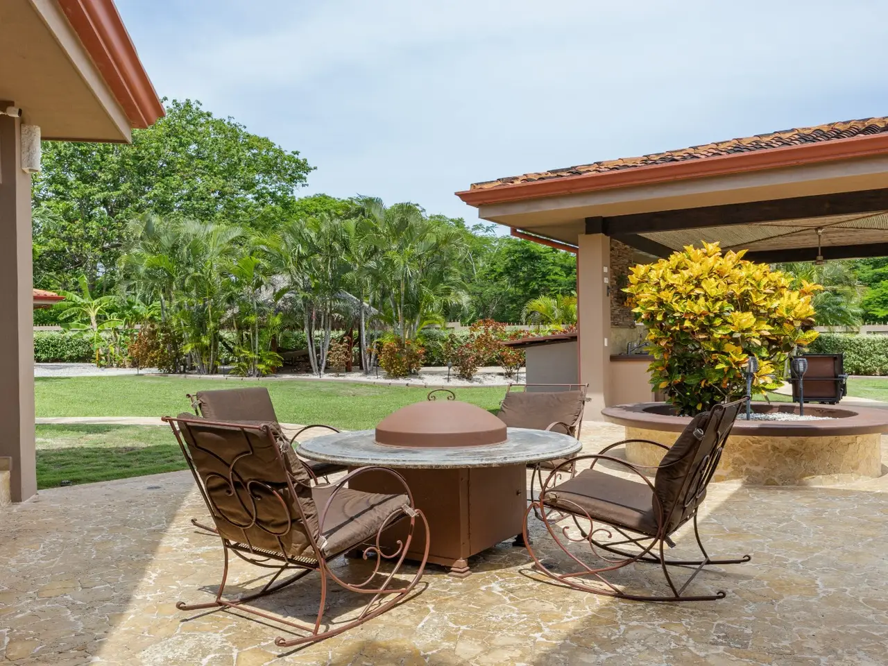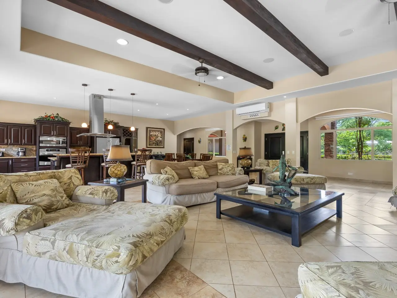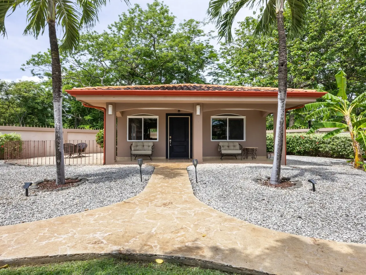 Exquisite Estate in Catalina Cove – Walk to the Beach, Live the Dream Welcome to Casa La Salle, a breathtaking private estate located in the gated community of Catalina Cove, just a short walk to the golden sands of Brasilito Beach and minutes from Playa Conchal. Spanning over 7,000 sq ft in the main residence and complemented by a 600 sq ft guest house, this 5-bedroom, 5.5-bathroom tropical retreat is set on a lush 5,451 m² (1.35-acre) fully fenced lot with impeccable landscaping, privacy, and space to entertain on a grand scale. From the moment you enter the estate through the long palm-lined driveway, you're greeted by elegant Mediterranean-inspired architecture, a resort-style pool with a cascading stone waterfall, a large jacuzzi, sun deck, outdoor kitchen, and tranquil fountain courtyard—all surrounded by mature palms and tropical gardens. Designed for relaxed luxury and effortless entertaining, the main living area features soaring vaulted ceilings, ample seating for large groups, and a seamless indoor-outdoor flow. The expansive chef’s kitchen is the heart of the home, complete with granite countertops, stainless steel appliances, custom hardwood cabinetry and a large center island perfect for gathering. Adjacent to the kitchen, a dedicated bar and lounge area opens to an oversized covered terrace and resort-style BBQ rancho—ideal for outdoor dining, poolside cocktails, or hosting family and friends in style. The main residence includes four spacious bedrooms, each with large windows and generous built-in closets. Two luxurious primary suites open directly onto the pool terrace and offer private covered sitting areas, spa-inspired bathrooms, and serene office nooks—providing the ultimate sanctuary for rest, productivity, and retreat. The 2 guest bedrooms offer king beds with en suite bathrooms. The independent guest house offers a full bedroom, bath, kitchen, and living space—ideal for visitors, caretakers, or rental income potential. Property Highlights: • 4 king beds & 1 bed | 5.5 baths across two homes with spacious social areas • Resort-style pool + jacuzzi with waterfall feature • Outdoor kitchen and BBQ area ideal for entertaining or hosting events • Multiple covered outdoor terraces for lounging, dining, and entertaining • Manicured landscaping, tropical palms, and decorative fountains • Secure, walled property with automatic gate and ample parking • Walk to the beach, shops, and restaurants • Located minutes from Playa Brasilito, Playa Conchal, Playa Flamingo, Tamarindo, Playa Grande, and the new Marina Flamingo • Close to top-rated international schools (La Paz and CRIA), shopping, and surf beaches • High-speed fiber optic internet • 2 car garage, and 2 storage rooms • Fully furnished and turnkey ready Whether you're looking for a luxurious full-time residence, a multi-generational family retreat, or an income-generating property in a prime beachside location, this Catalina Cove estate offers it all. Schedule your private showing today and experience the best of coastal luxury living in Guanacaste, Costa Rica.