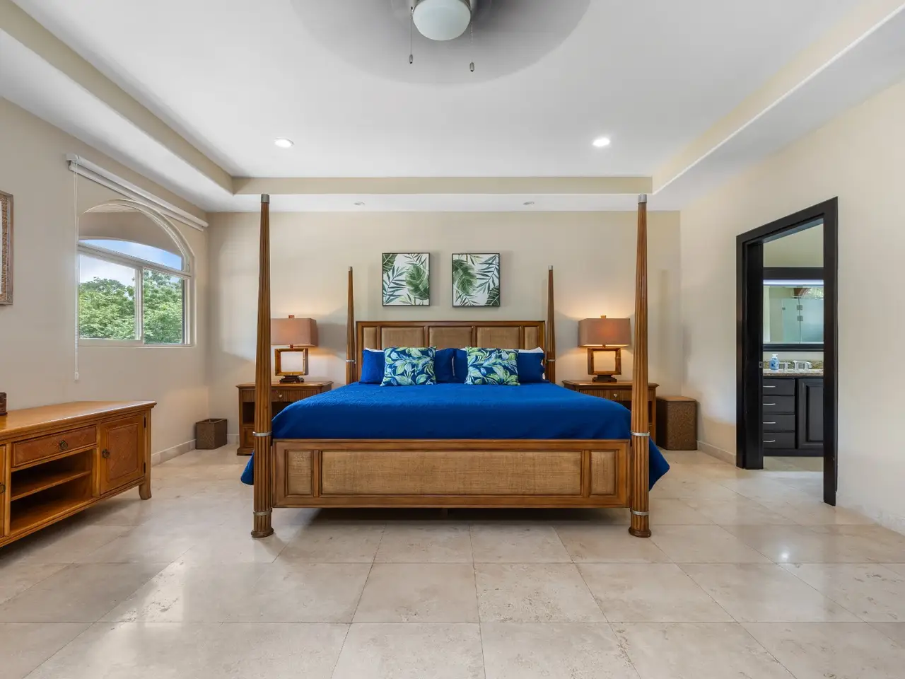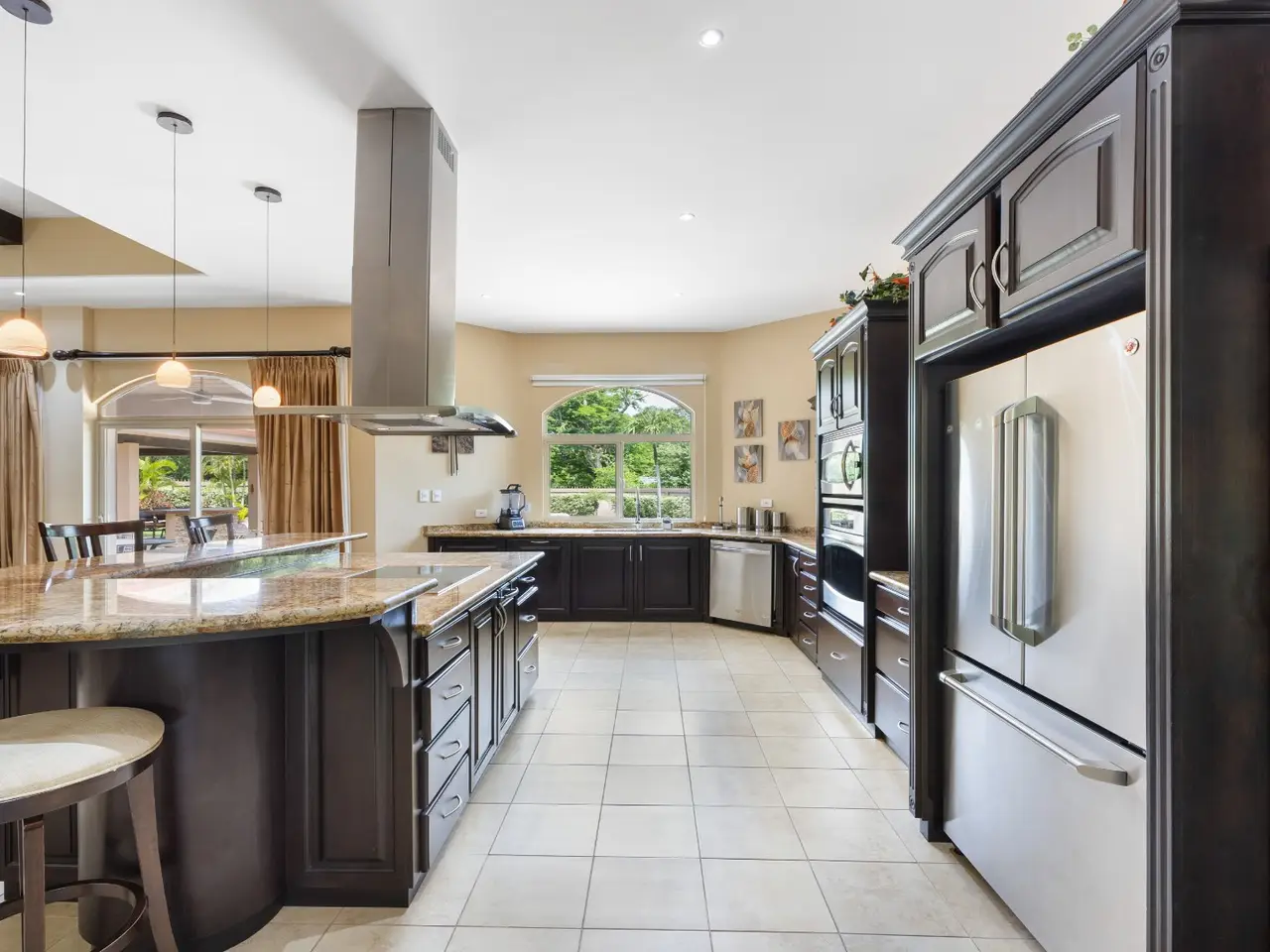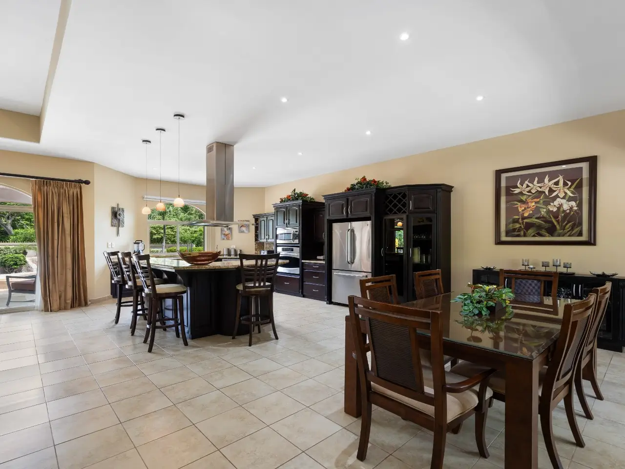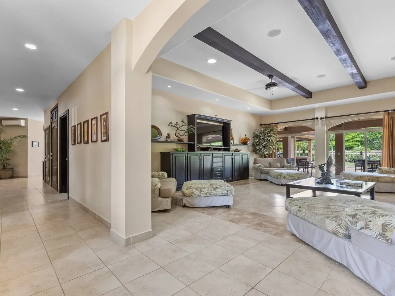 Exquisite Estate in Catalina Cove – Walk to the Beach, Live the Dream Welcome to Casa La Salle, a breathtaking private estate located in the gated community of Catalina Cove, just a short walk to the golden sands of Brasilito Beach and minutes from Playa Conchal. Spanning over 7,000 sq ft in the main residence and complemented by a 600 sq ft guest house, this 5-bedroom, 5.5-bathroom tropical retreat is set on a lush 5,451 m² (1.35-acre) fully fenced lot with impeccable landscaping, privacy, and space to entertain on a grand scale. From the moment you enter the estate through the long palm-lined driveway, you're greeted by elegant Mediterranean-inspired architecture, a resort-style pool with a cascading stone waterfall, a large jacuzzi, sun deck, outdoor kitchen, and tranquil fountain courtyard—all surrounded by mature palms and tropical gardens. Designed for relaxed luxury and effortless entertaining, the main living area features soaring vaulted ceilings, ample seating for large groups, and a seamless indoor-outdoor flow. The expansive chef’s kitchen is the heart of the home, complete with granite countertops, stainless steel appliances, custom hardwood cabinetry and a large center island perfect for gathering. Adjacent to the kitchen, a dedicated bar and lounge area opens to an oversized covered terrace and resort-style BBQ rancho—ideal for outdoor dining, poolside cocktails, or hosting family and friends in style. The main residence includes four spacious bedrooms, each with large windows and generous built-in closets. Two luxurious primary suites open directly onto the pool terrace and offer private covered sitting areas, spa-inspired bathrooms, and serene office nooks—providing the ultimate sanctuary for rest, productivity, and retreat. The 2 guest bedrooms offer king beds with en suite bathrooms. The independent guest house offers a full bedroom, bath, kitchen, and living space—ideal for visitors, caretakers, or rental income potential. Property Highlights: • 4 king beds & 1 bed | 5.5 baths across two homes with spacious social areas • Resort-style pool + jacuzzi with waterfall feature • Outdoor kitchen and BBQ area ideal for entertaining or hosting events • Multiple covered outdoor terraces for lounging, dining, and entertaining • Manicured landscaping, tropical palms, and decorative fountains • Secure, walled property with automatic gate and ample parking • Walk to the beach, shops, and restaurants • Located minutes from Playa Brasilito, Playa Conchal, Playa Flamingo, Tamarindo, Playa Grande, and the new Marina Flamingo • Close to top-rated international schools (La Paz and CRIA), shopping, and surf beaches • High-speed fiber optic internet • 2 car garage, and 2 storage rooms • Fully furnished and turnkey ready Whether you're looking for a luxurious full-time residence, a multi-generational family retreat, or an income-generating property in a prime beachside location, this Catalina Cove estate offers it all. Schedule your private showing today and experience the best of coastal luxury living in Guanacaste, Costa Rica.
